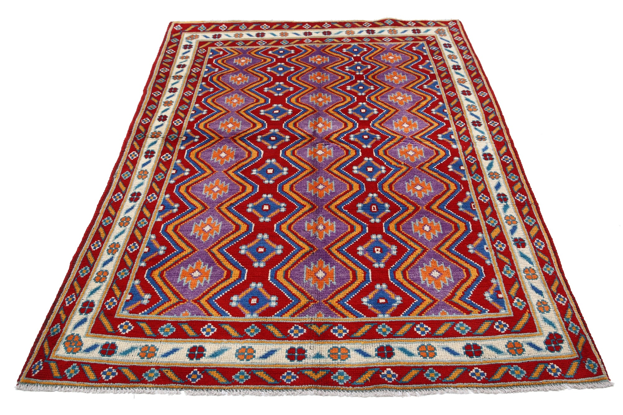 The hand-knotted Afghan wool rug features an intricate tribal geometric design, celebrated for its cultural heritage and timeless elegance. Woven by skilled artisans, it offers exceptional durability, making it ideal for high-traffic areas. Its unique patterns and premium wool blend tradition with modern sophistication, adding warmth and character to any interior.