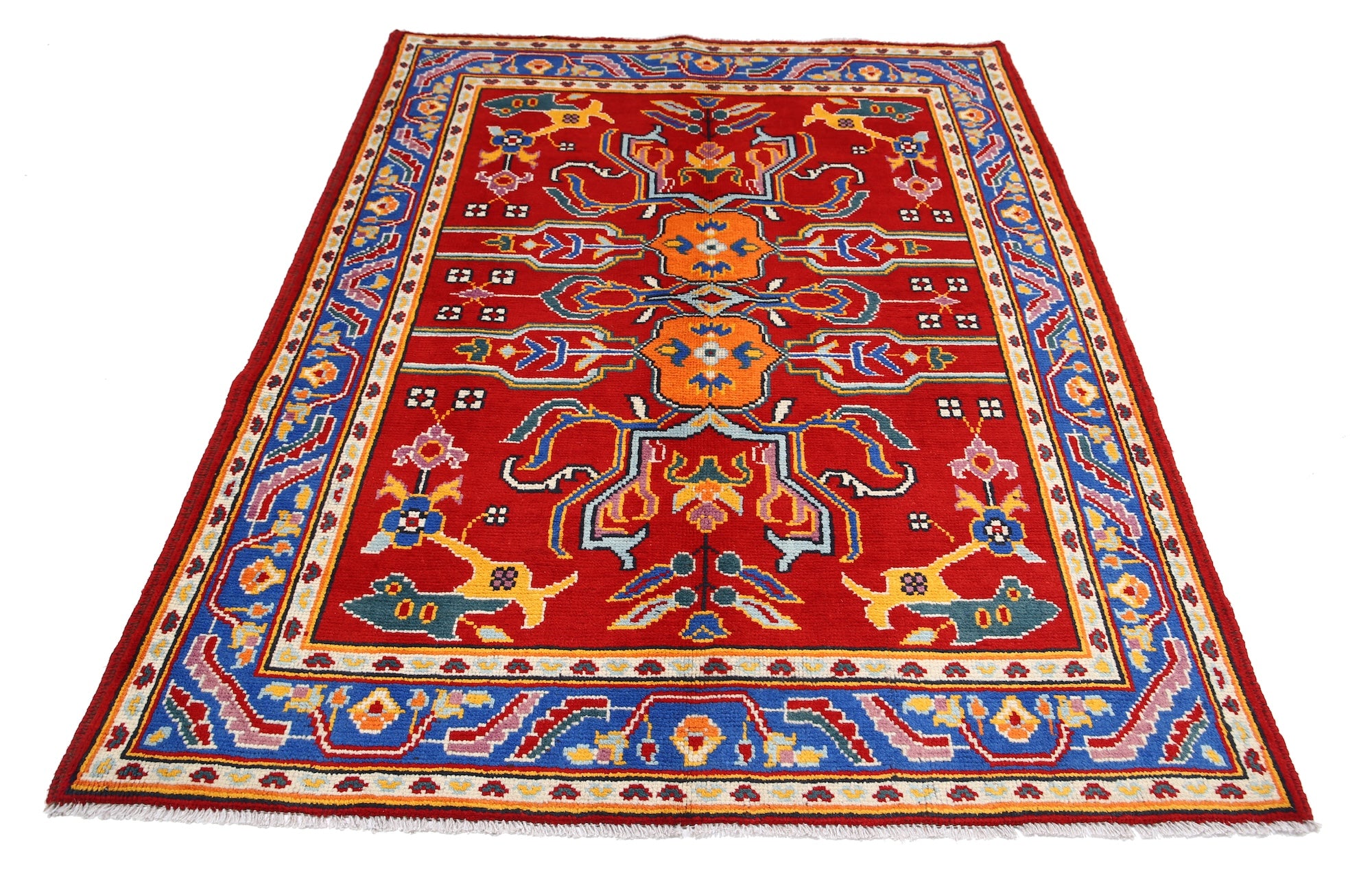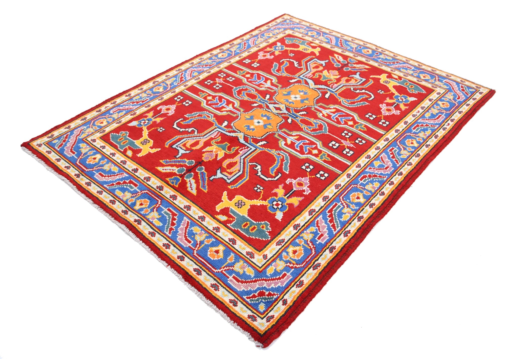 Hand-Knotted Tribal Geometric Wool Rug - 4'11" x 6'8"