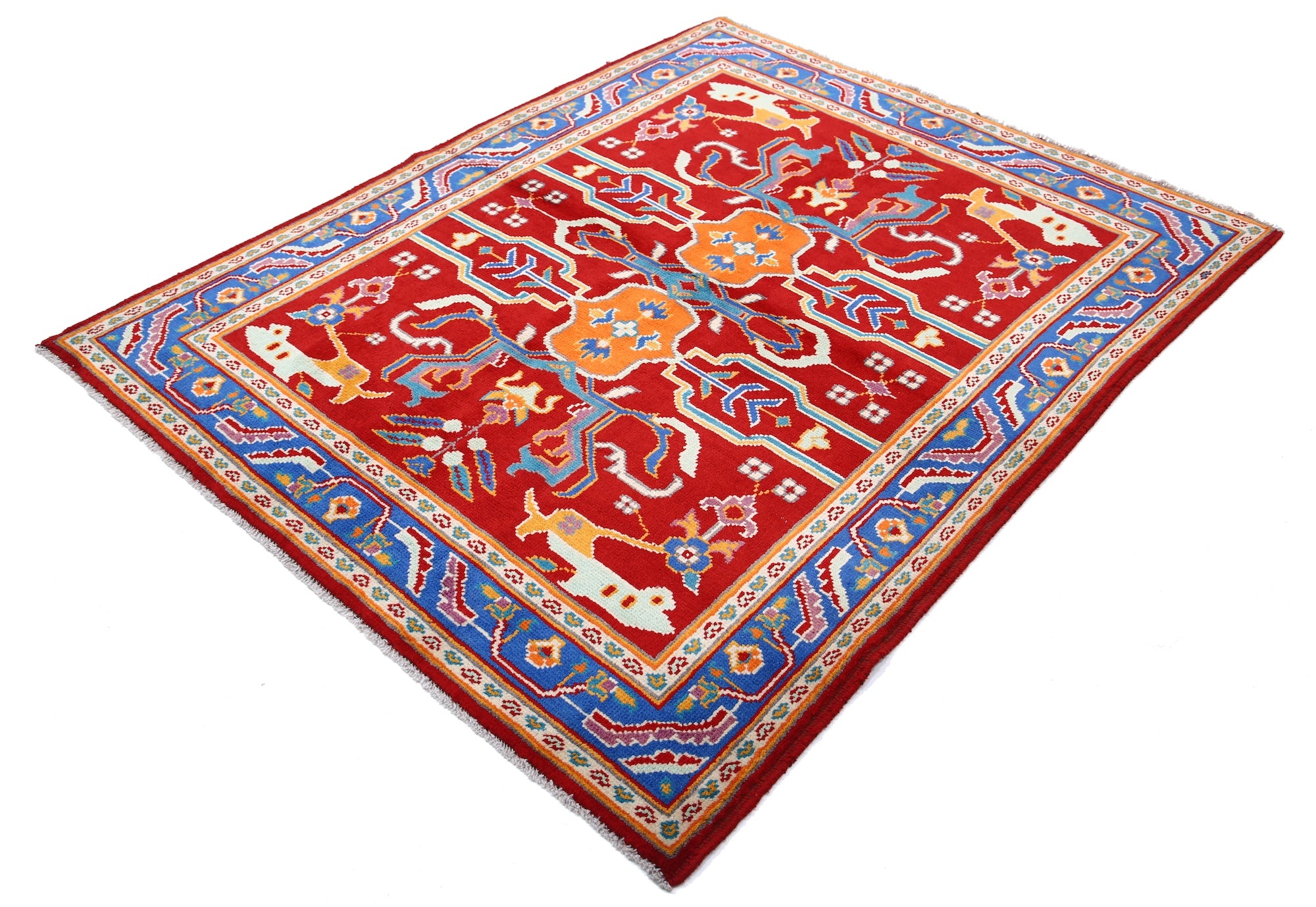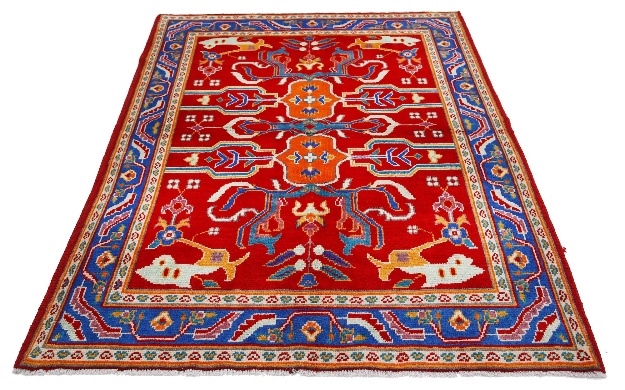 Hand-Knotted Tribal Geometric Wool Rug - 5'1" x 6'5"