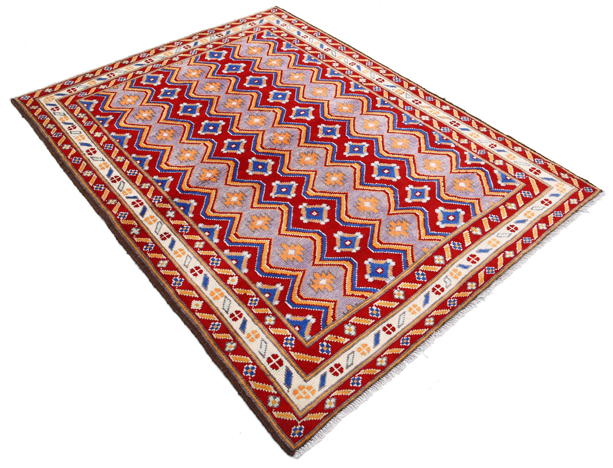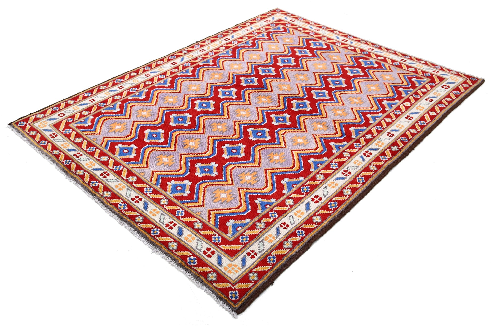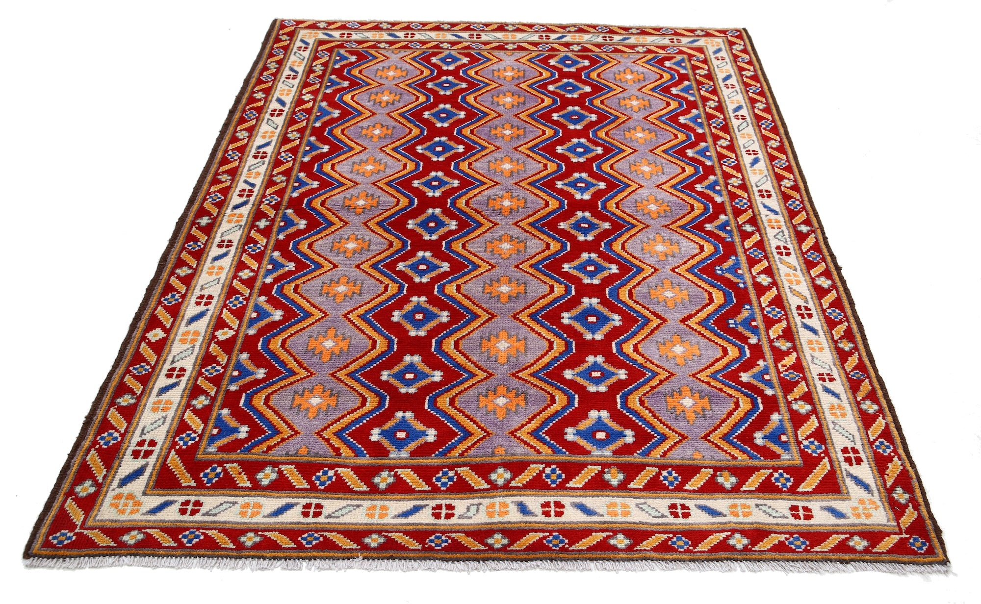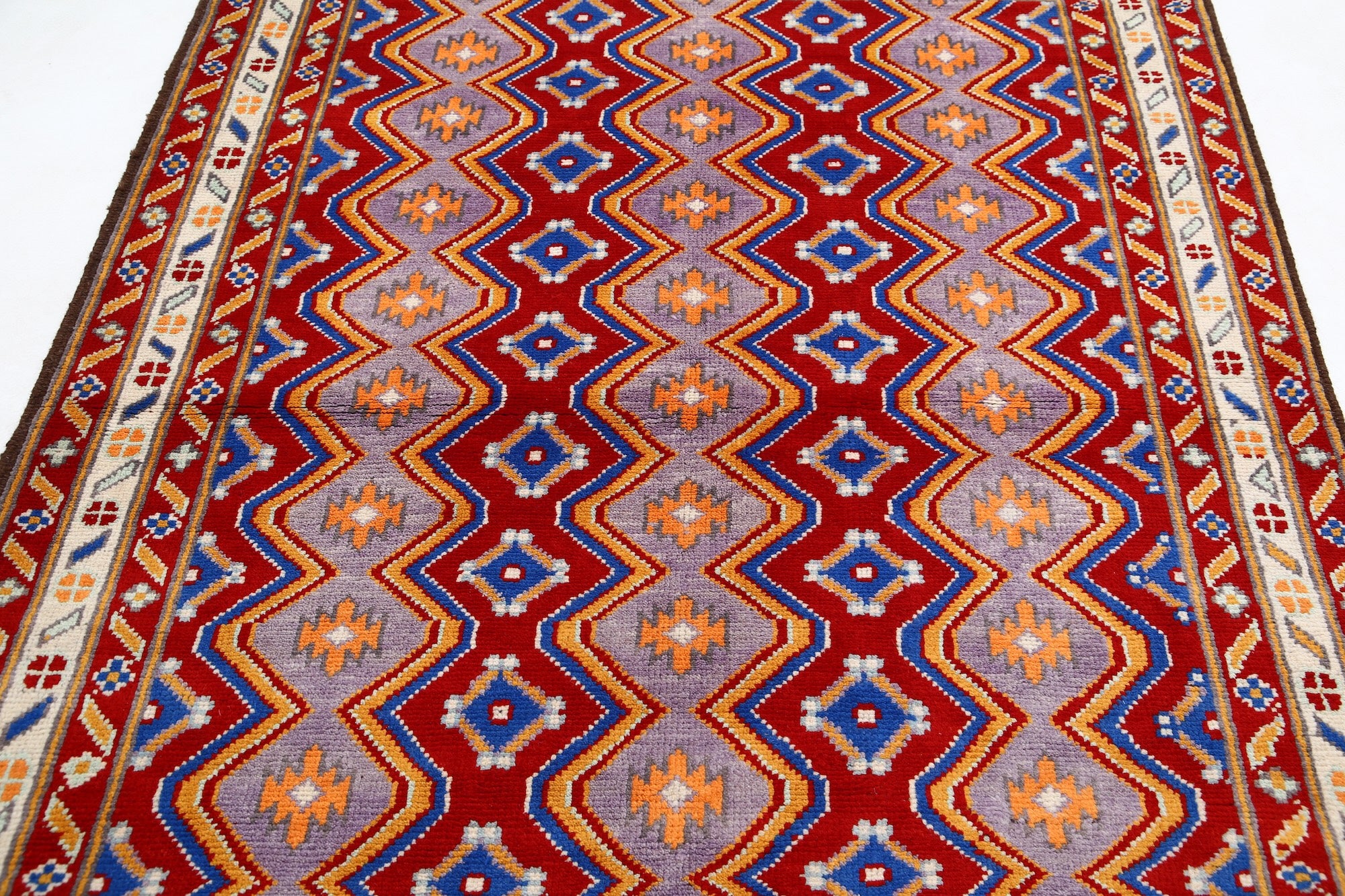 Hand-Knotted Tribal Geometric Wool Rug - 5'1" x 6'8"