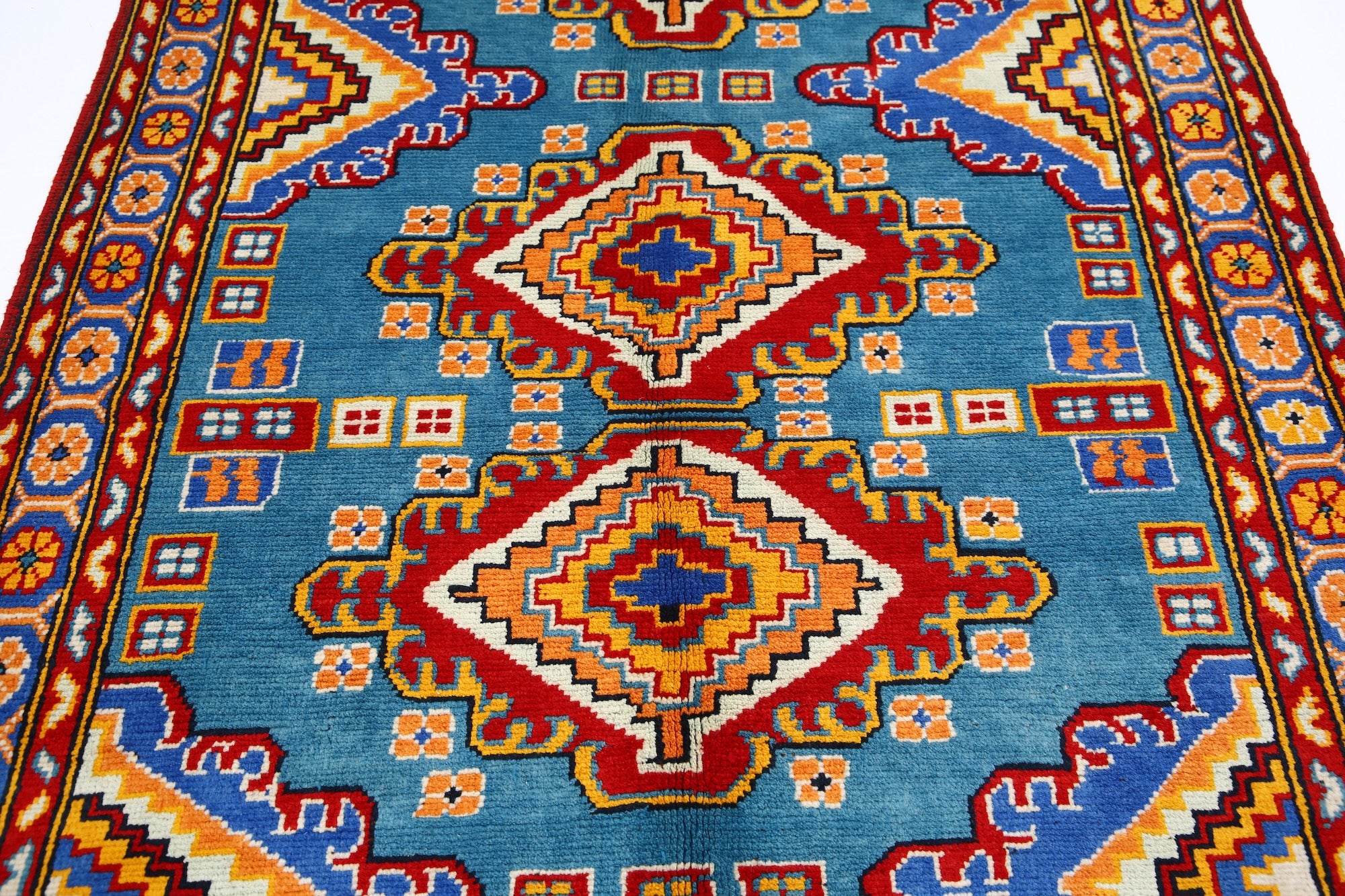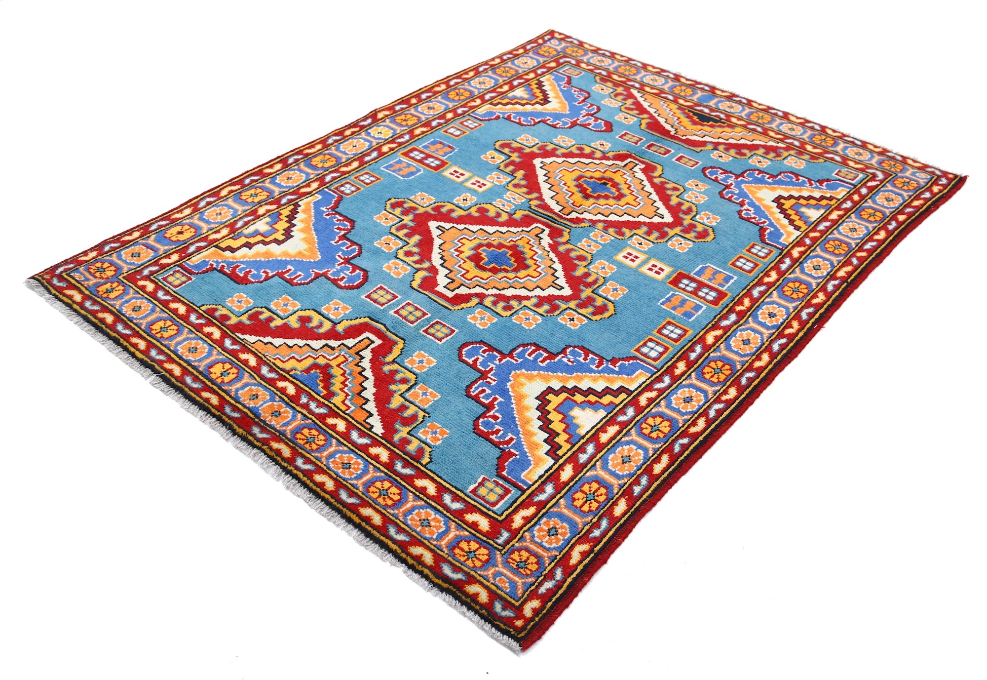 Hand-Knotted Tribal Geometric Wool Rug - 4'10" x 6'7"