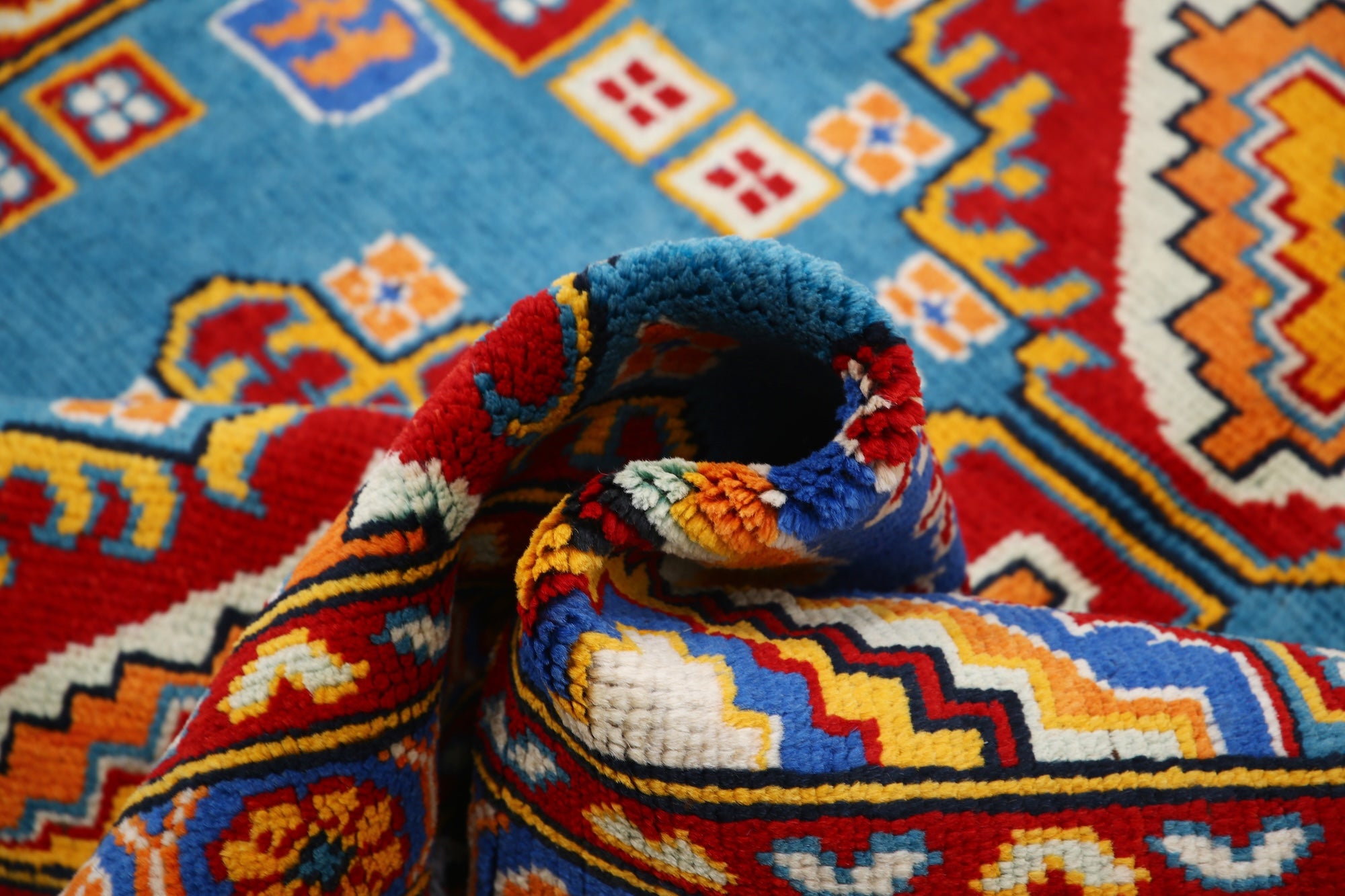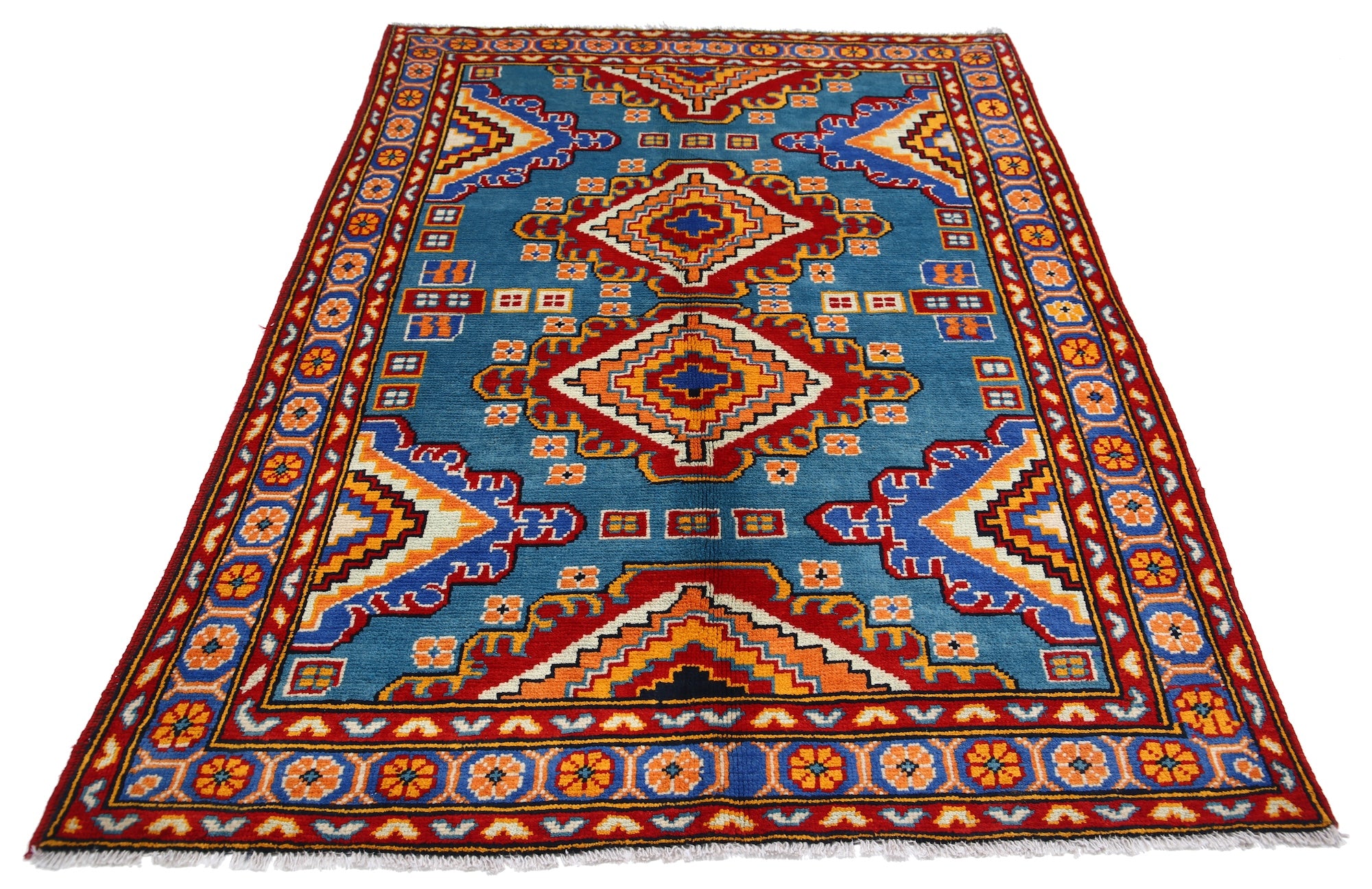The hand-knotted Afghan wool rug features an intricate tribal geometric design, celebrated for its cultural heritage and timeless elegance. Woven by skilled artisans, it offers exceptional durability, making it ideal for high-traffic areas. Its unique patterns and premium wool blend tradition with modern sophistication, adding warmth and character to any interior.