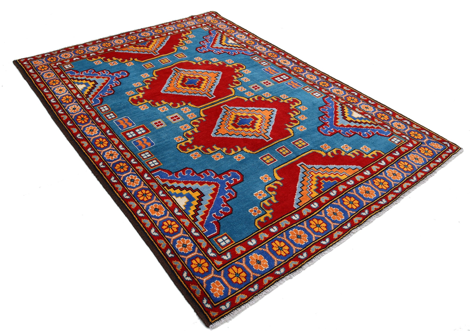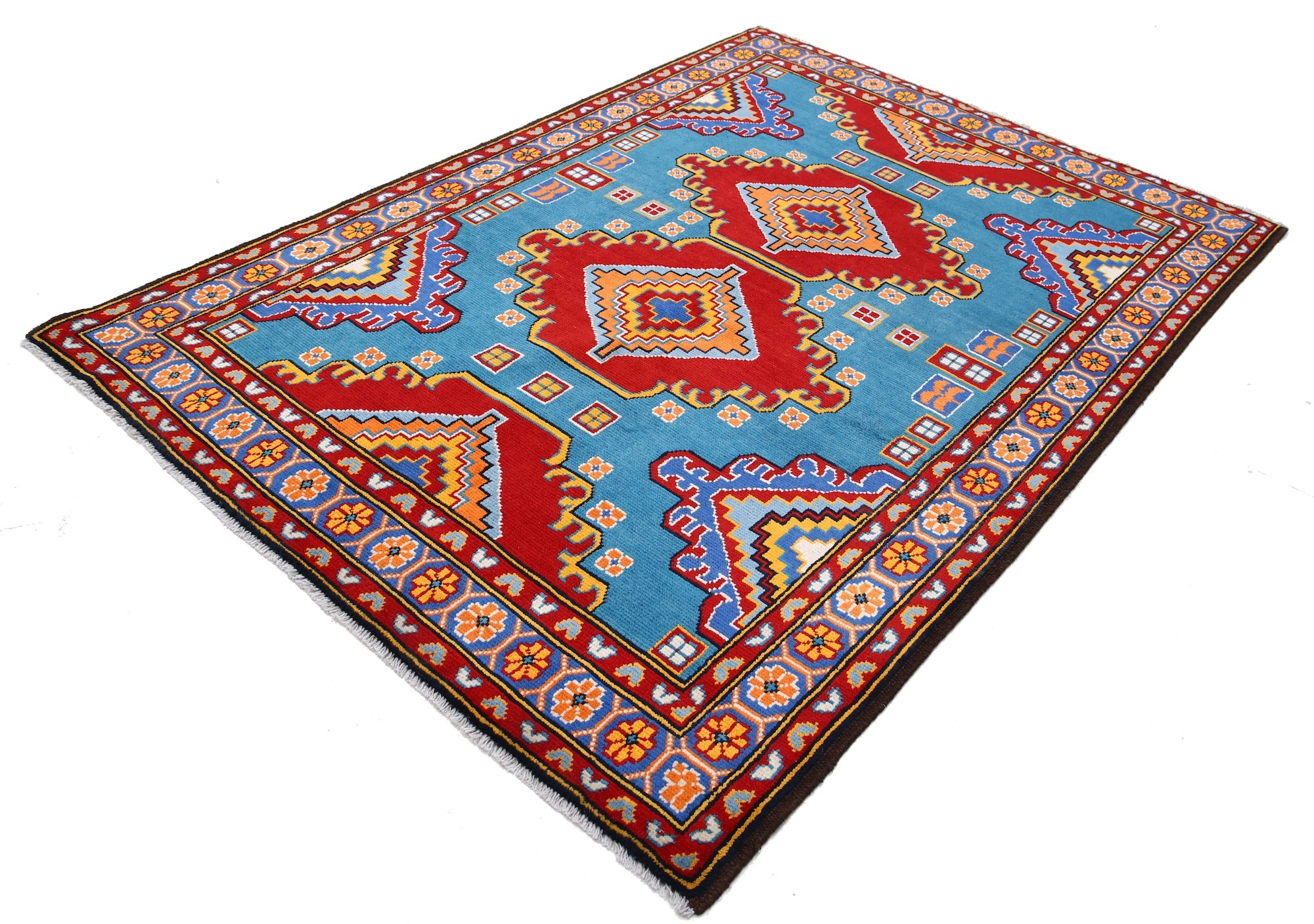 Hand-Knotted Tribal Geometric Wool Rug - 5'8" x 8'0"