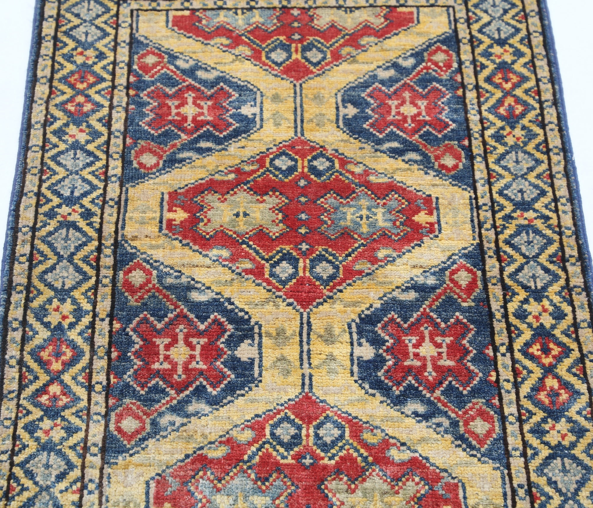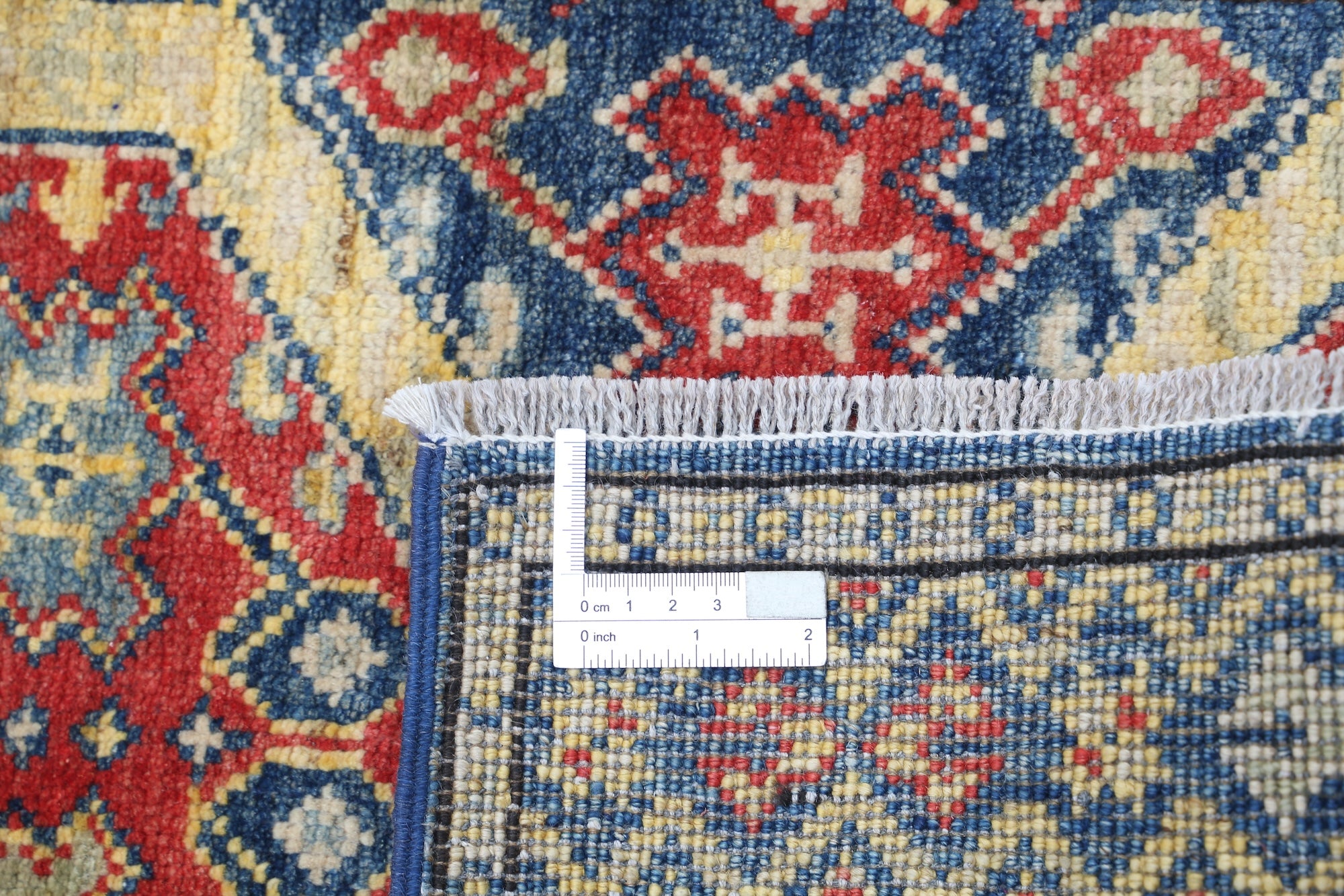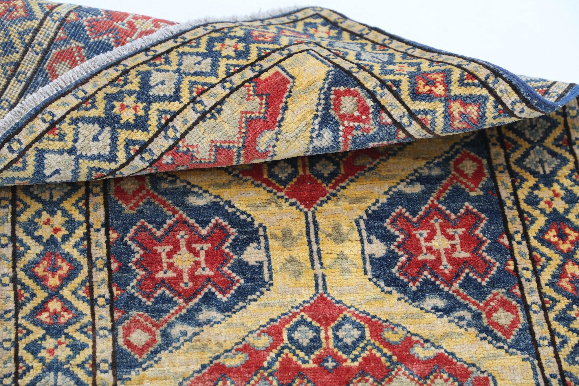 This artisan-crafted Afghan wool rug features a striking geometric tribal pattern, renowned for its cultural heritage and timeless appeal. Expertly hand-knotted by skilled weavers, it offers superior durability, making it perfect for high-traffic areas. Its intricate design and premium wool blend traditional craftsmanship with modern elegance, adding warmth and character to any space.