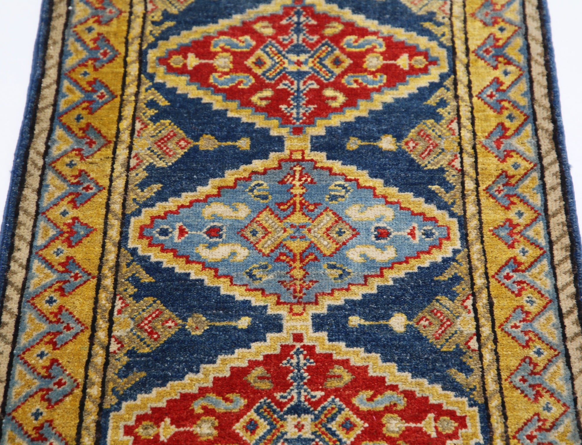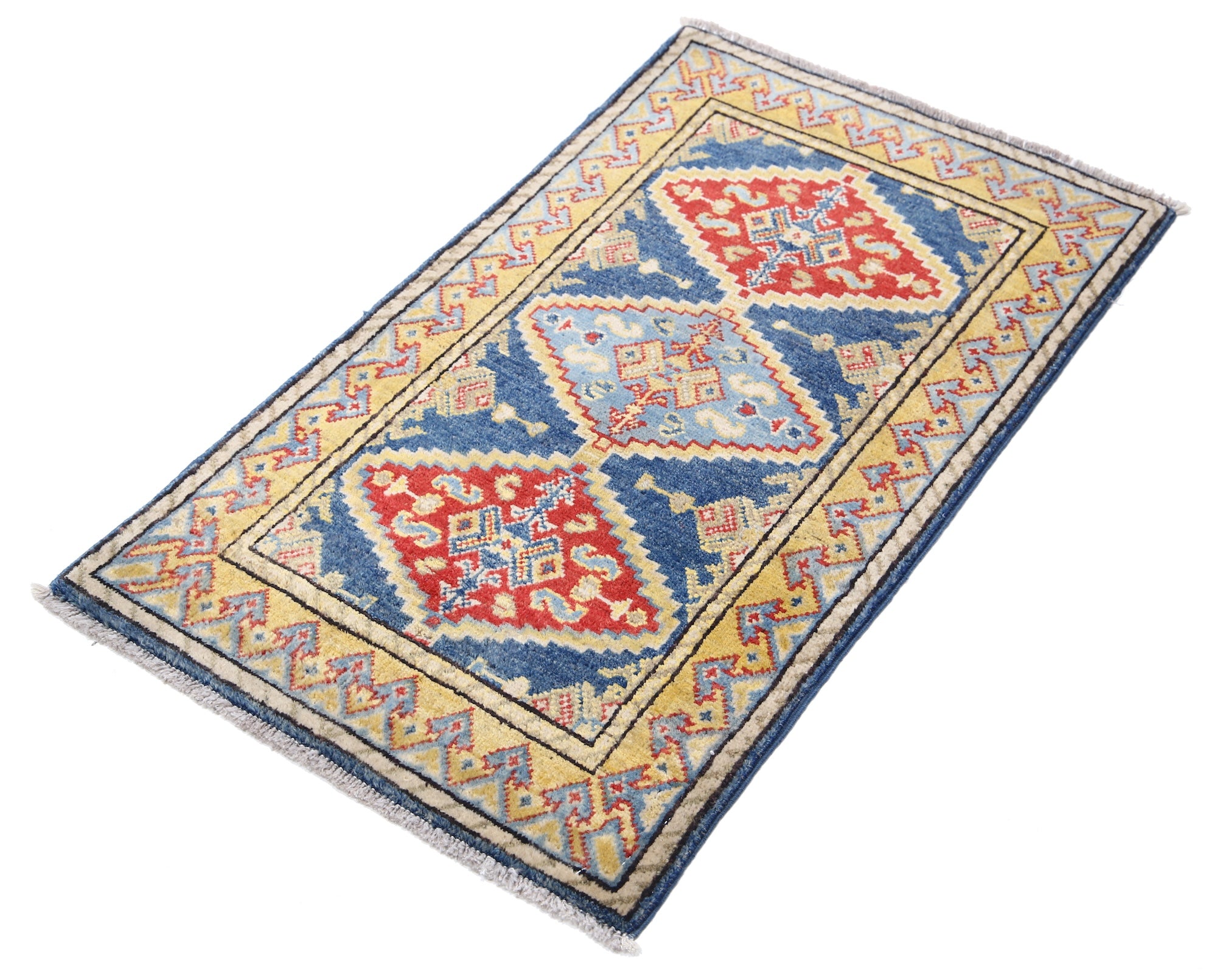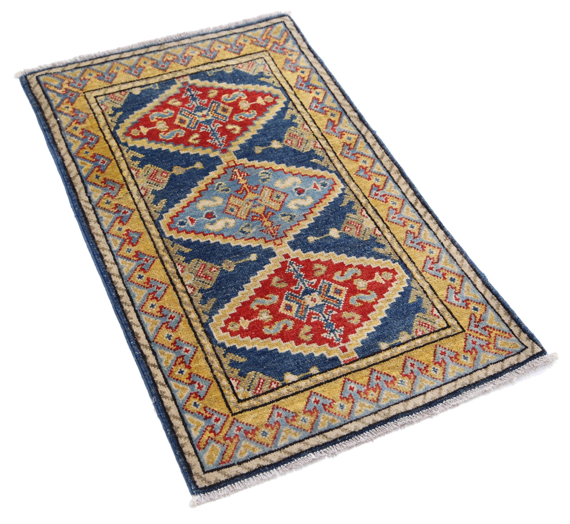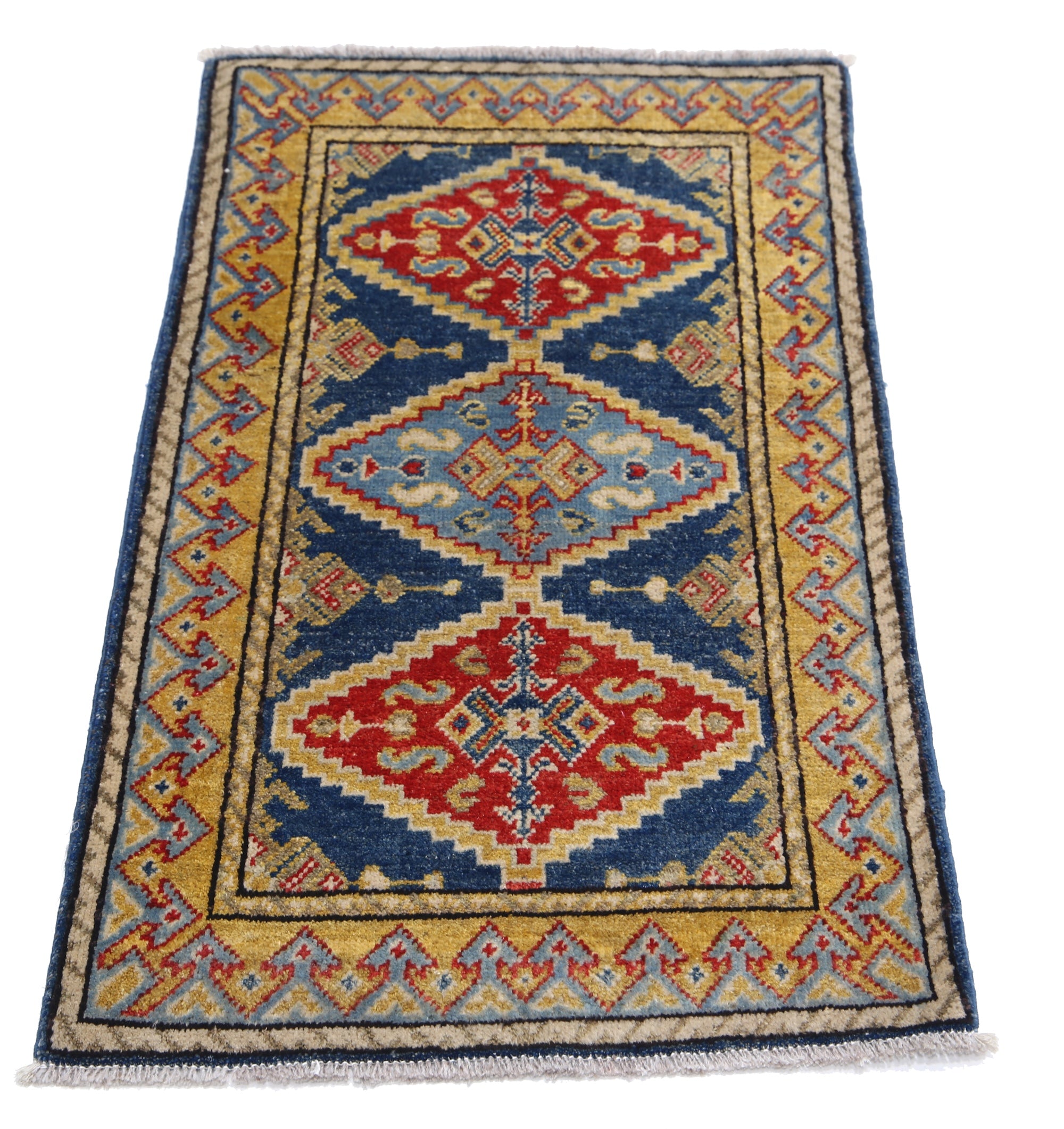 This artisan-crafted Afghan wool rug features a striking geometric tribal pattern, renowned for its cultural heritage and timeless appeal. Expertly hand-knotted by skilled weavers, it offers superior durability, making it perfect for high-traffic areas. Its intricate design and premium wool blend traditional craftsmanship with modern elegance, adding warmth and character to any space.