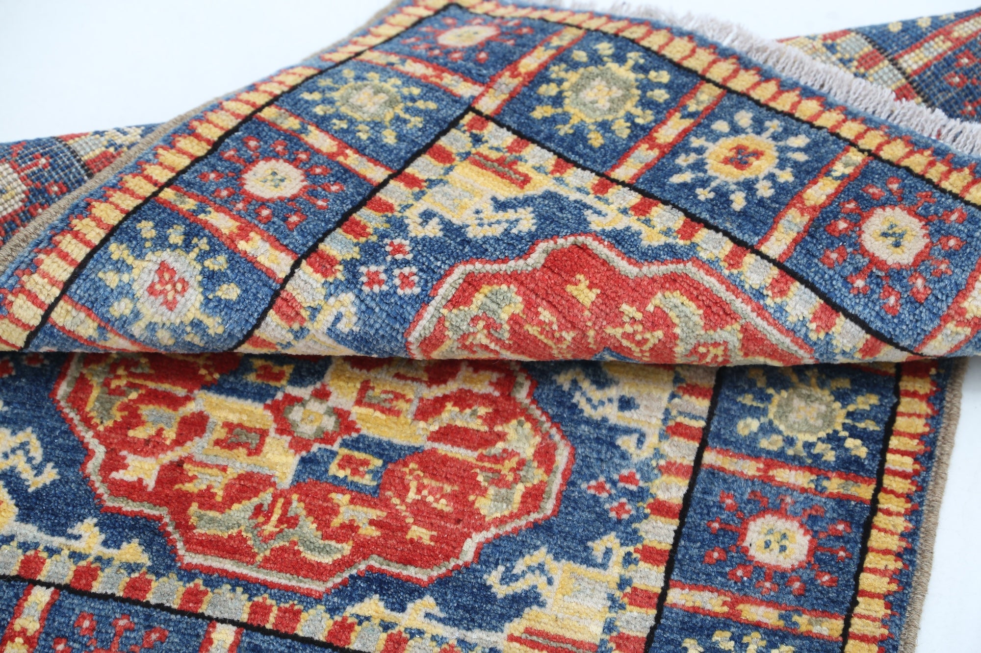 This artisan-crafted Afghan wool rug features a striking geometric tribal pattern, renowned for its cultural heritage and timeless appeal. Expertly hand-knotted by skilled weavers, it offers superior durability, making it perfect for high-traffic areas. Its intricate design and premium wool blend traditional craftsmanship with modern elegance, adding warmth and character to any space.