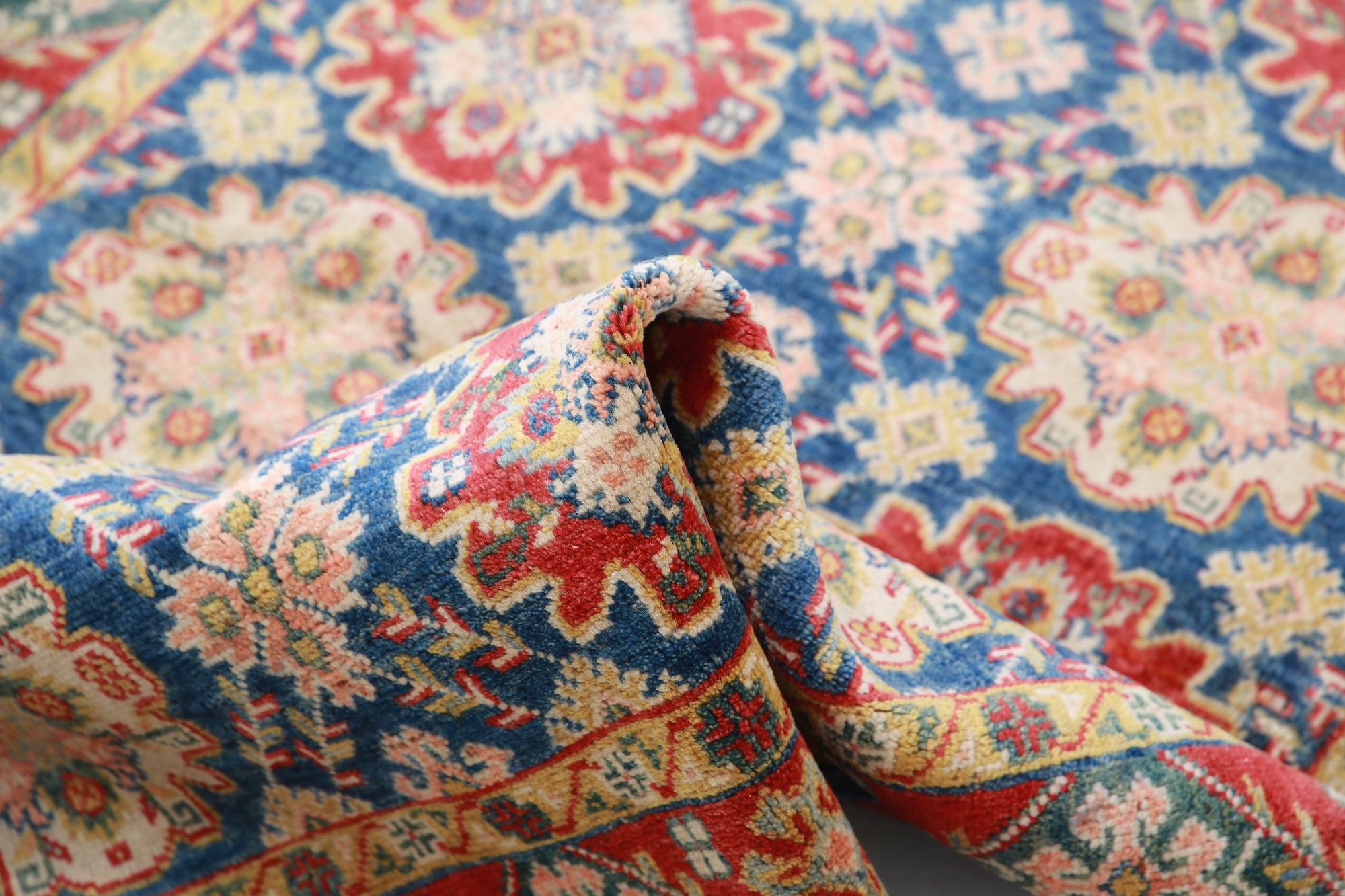 This artisan-crafted Afghan wool rug features a striking geometric tribal pattern, renowned for its cultural heritage and timeless appeal. Expertly hand-knotted by skilled weavers, it offers superior durability, making it perfect for high-traffic areas. Its intricate design and premium wool blend traditional craftsmanship with modern elegance, adding warmth and character to any space.