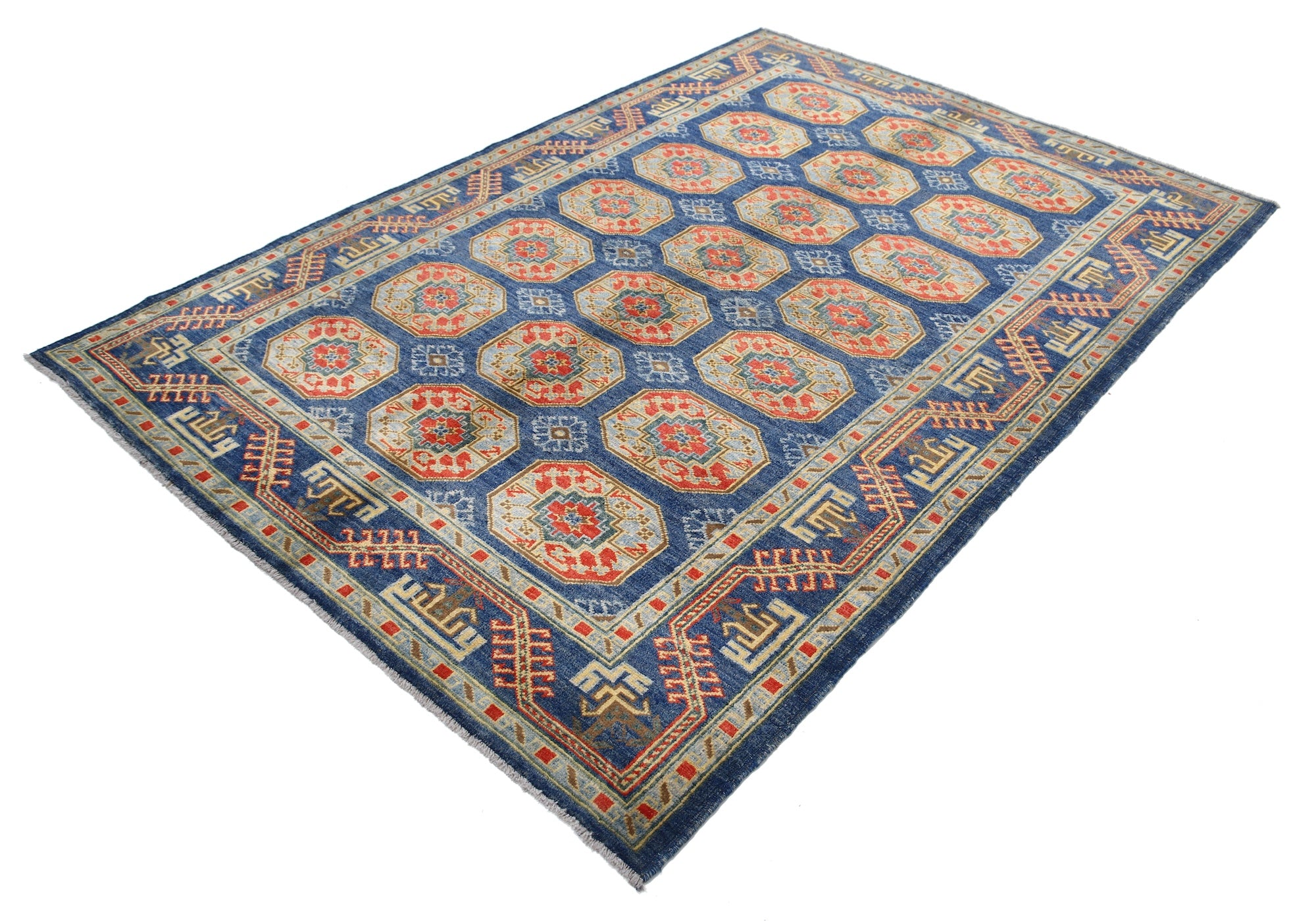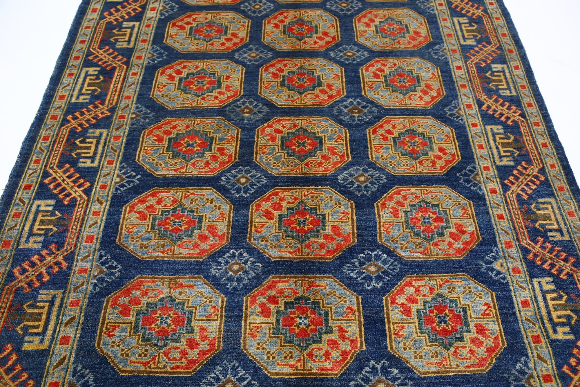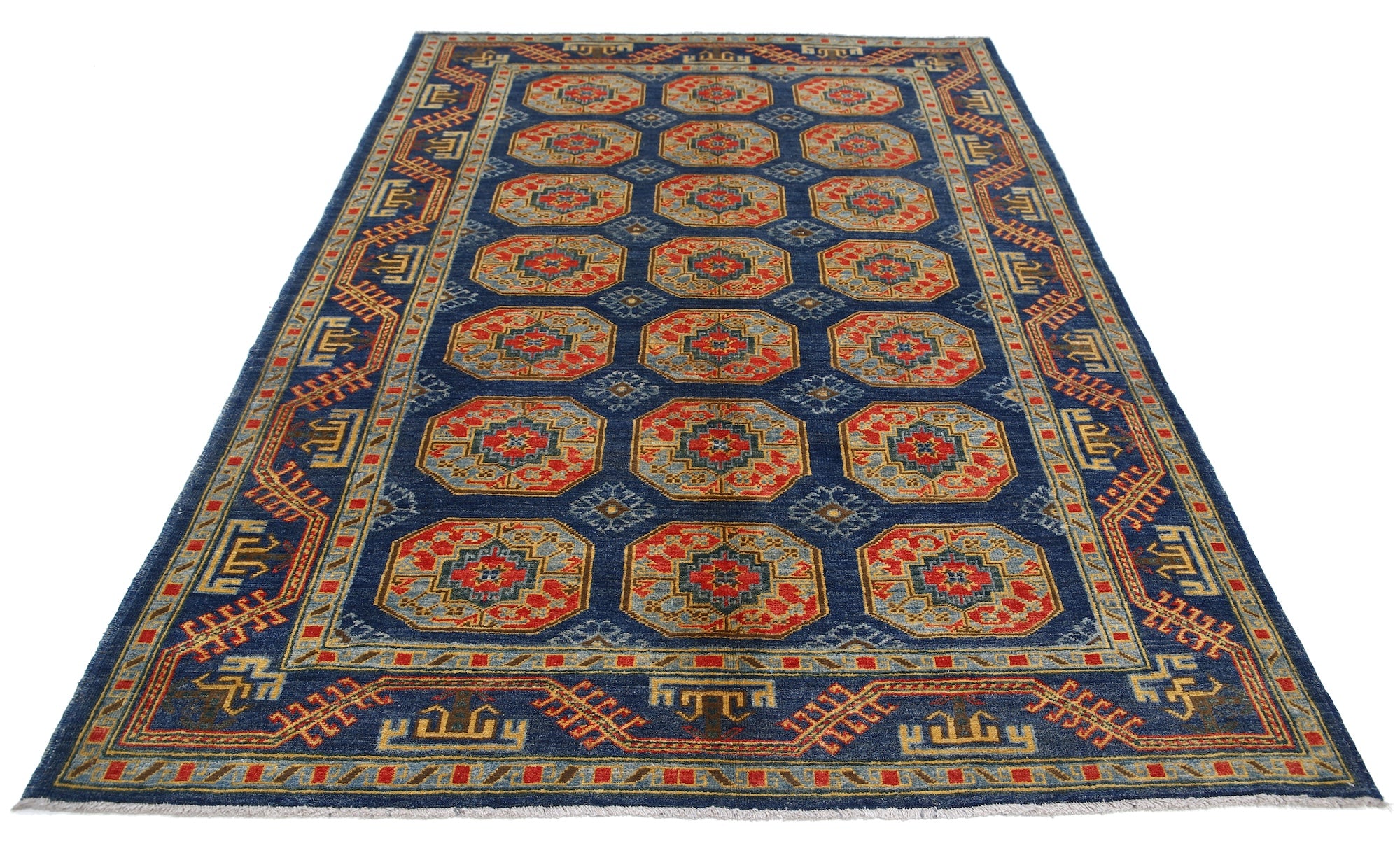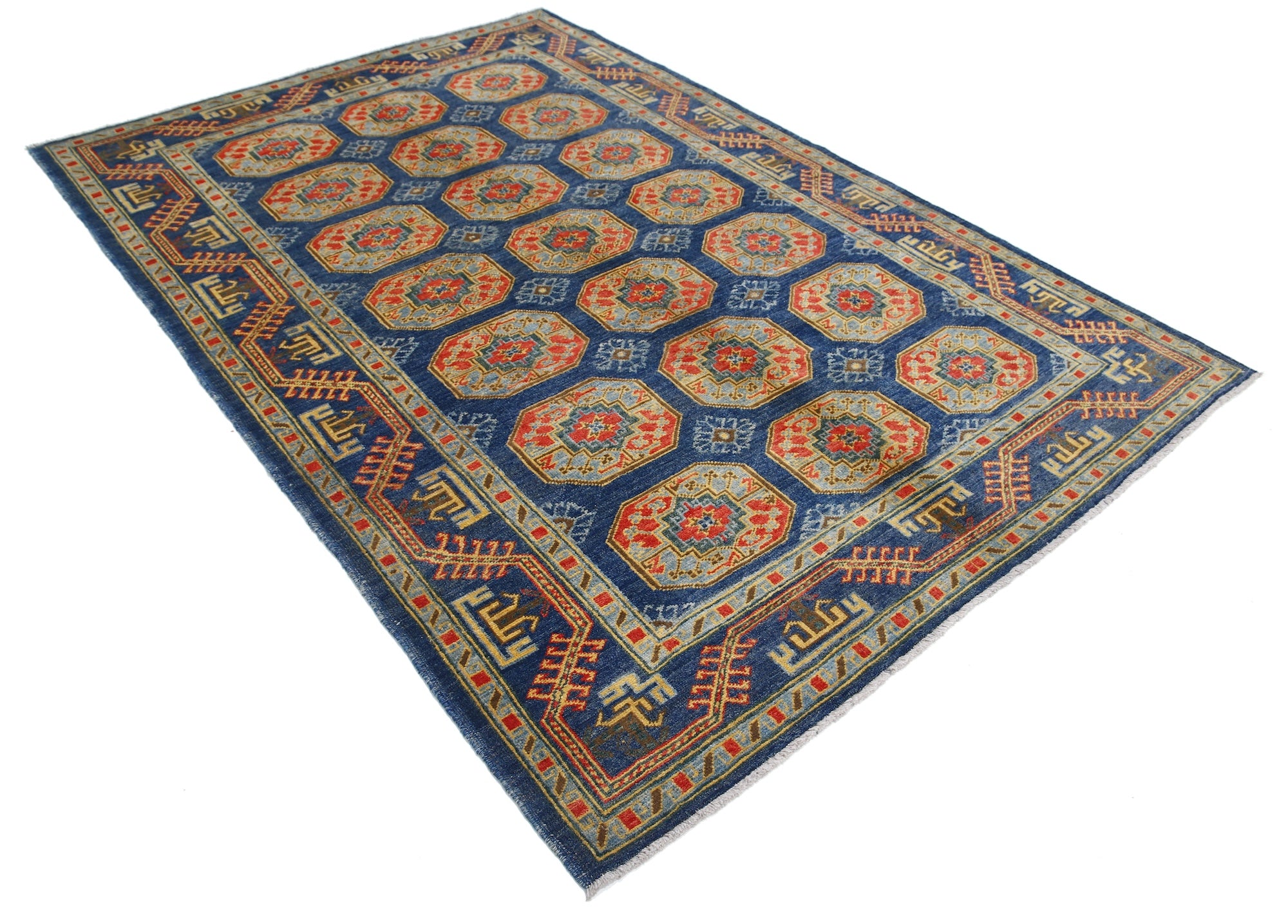 This artisan-crafted Afghan wool rug features a striking geometric tribal pattern, renowned for its cultural heritage and timeless appeal. Expertly hand-knotted by skilled weavers, it offers superior durability, making it perfect for high-traffic areas. Its intricate design and premium wool blend traditional craftsmanship with modern elegance, adding warmth and character to any space.