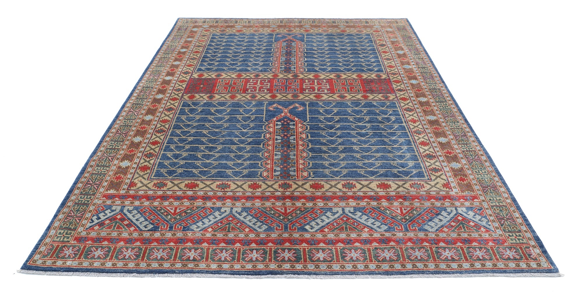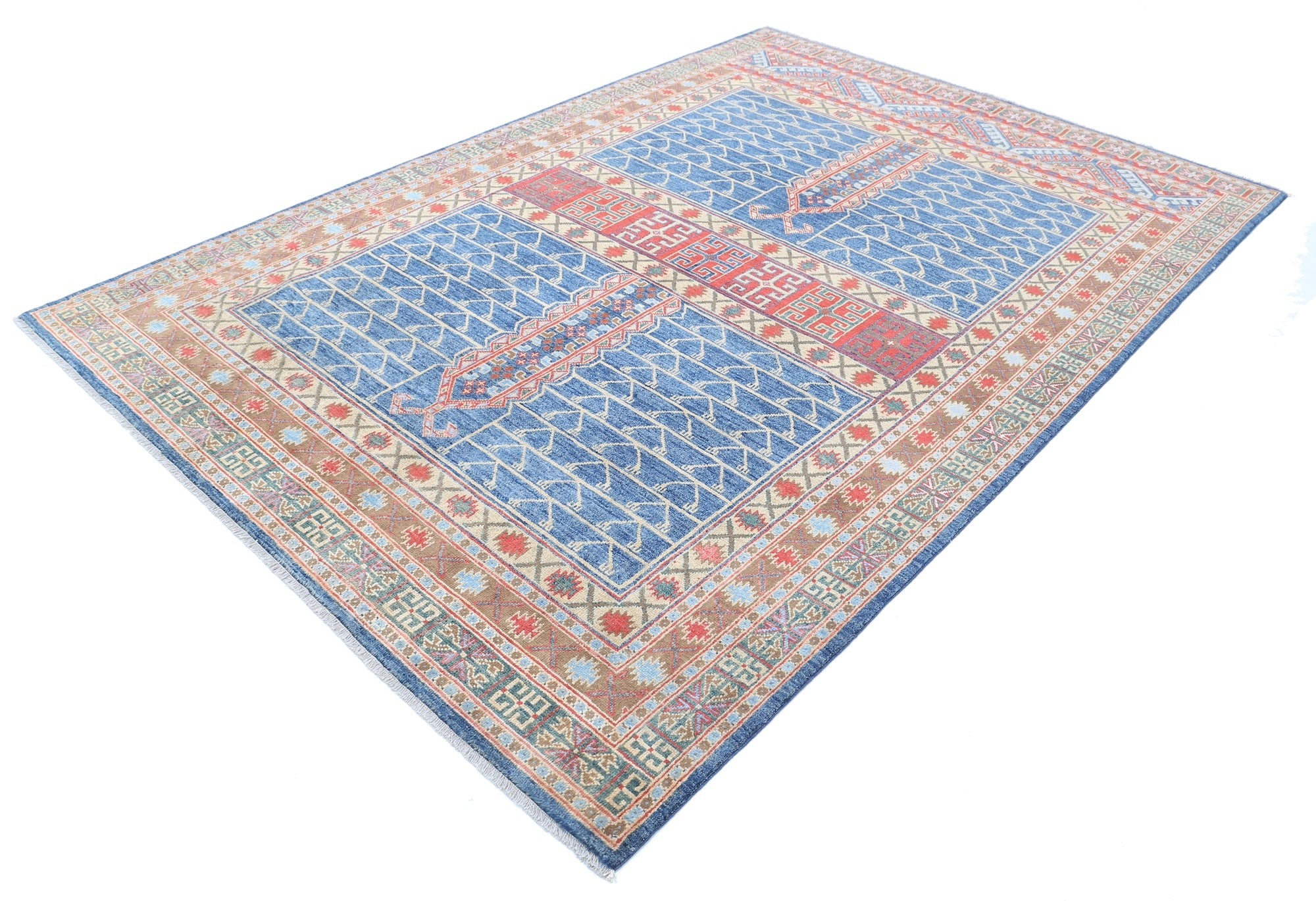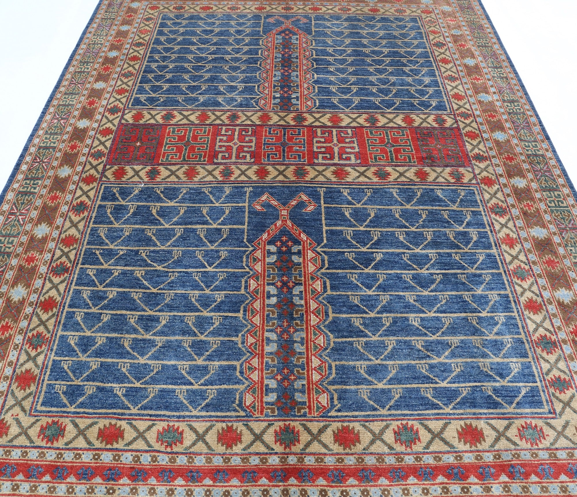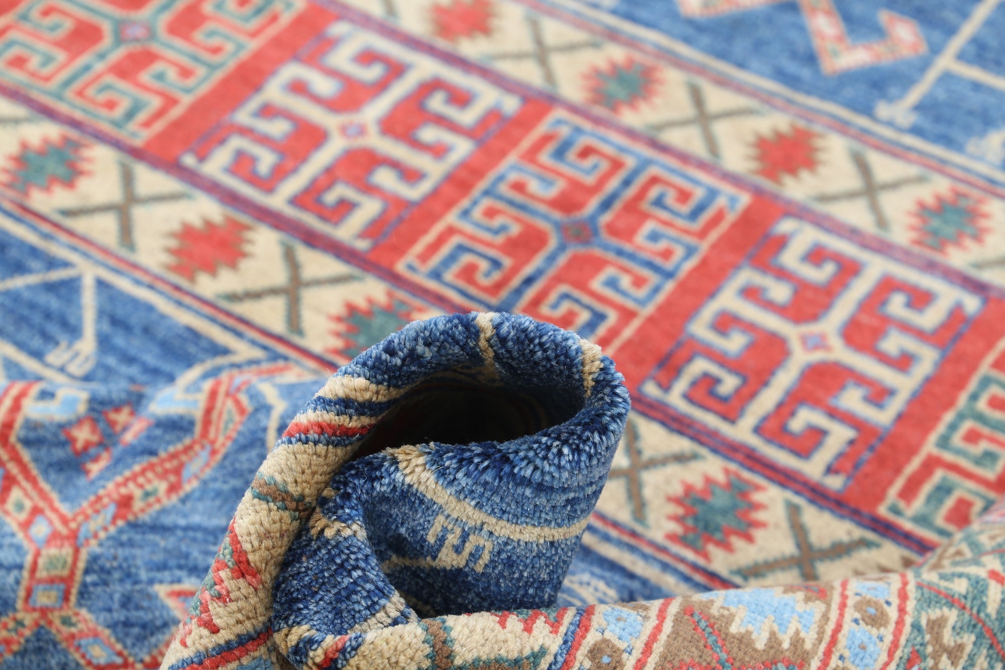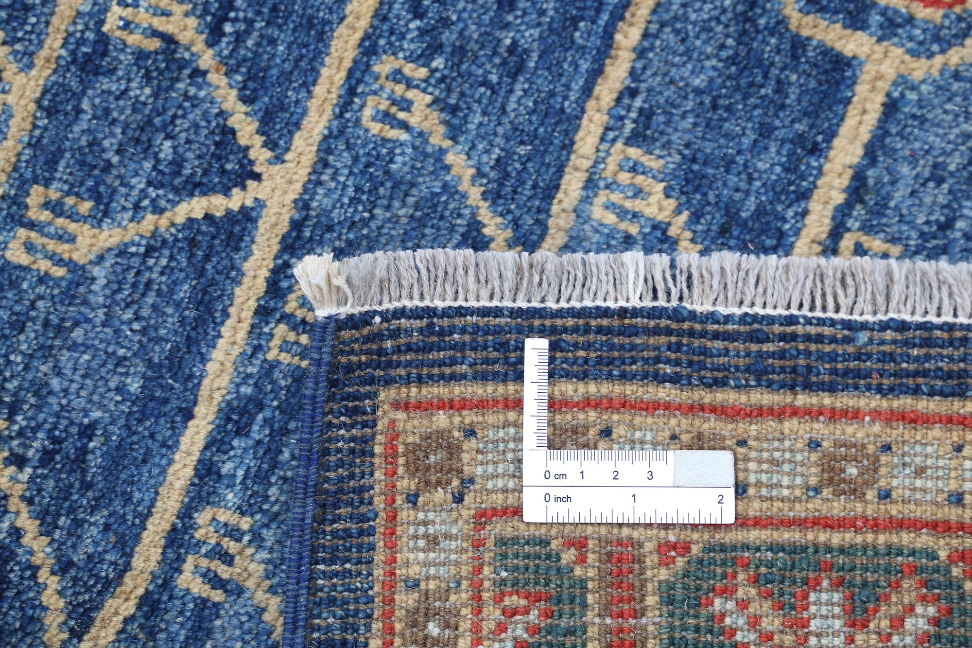 This artisan-crafted Afghan wool rug features a striking geometric tribal pattern, renowned for its cultural heritage and timeless appeal. Expertly hand-knotted by skilled weavers, it offers superior durability, making it perfect for high-traffic areas. Its intricate design and premium wool blend traditional craftsmanship with modern elegance, adding warmth and character to any space.