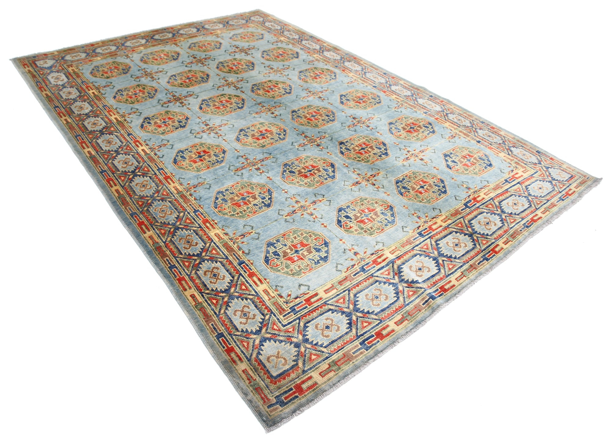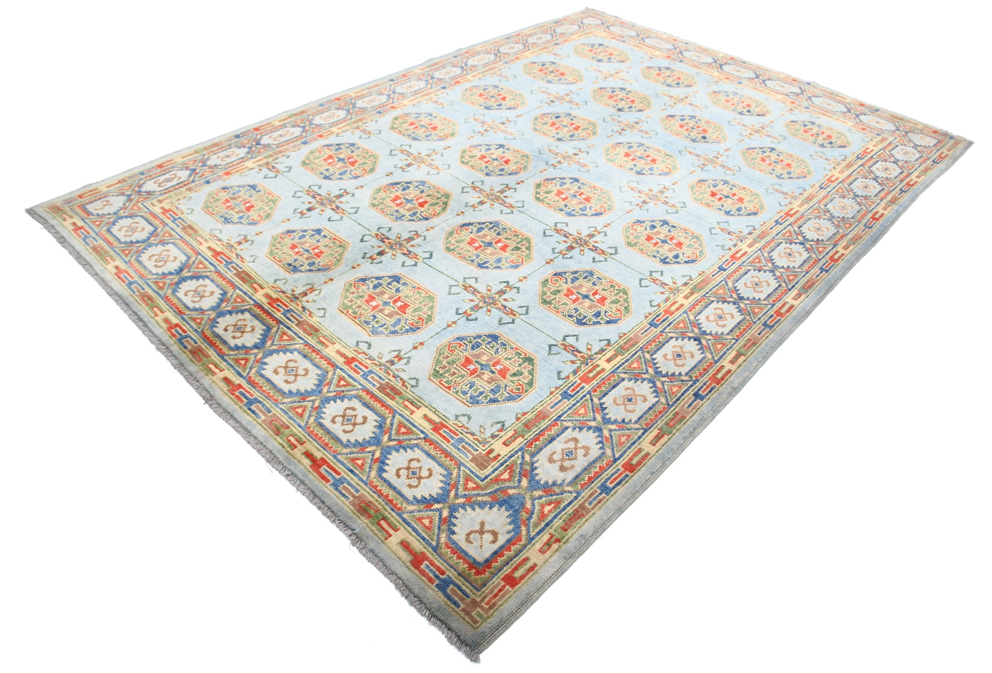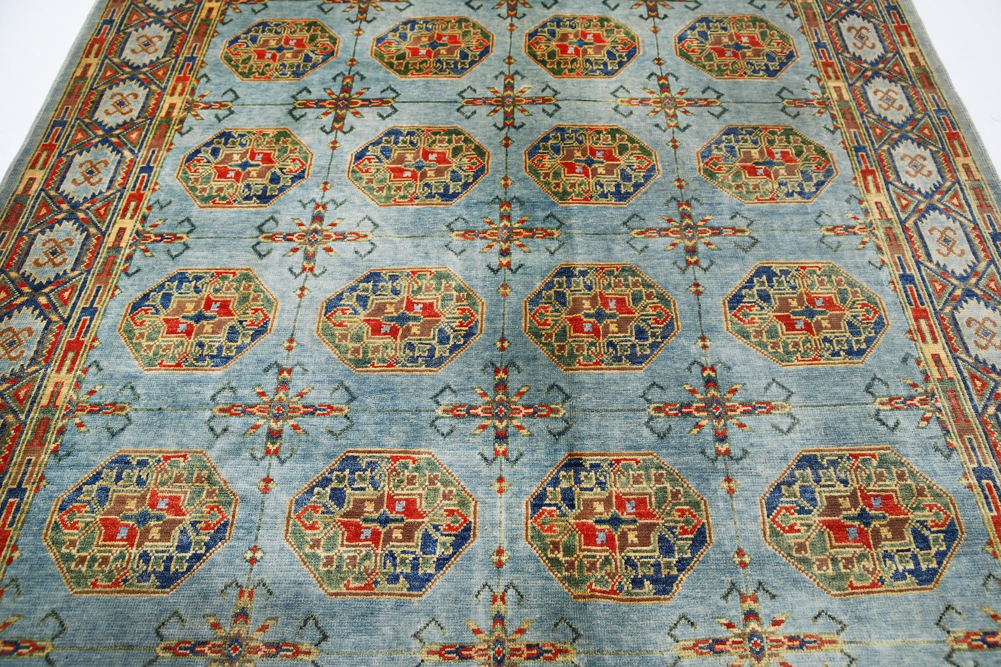 This artisan-crafted Afghan wool rug features a striking geometric tribal pattern, renowned for its cultural heritage and timeless appeal. Expertly hand-knotted by skilled weavers, it offers superior durability, making it perfect for high-traffic areas. Its intricate design and premium wool blend traditional craftsmanship with modern elegance, adding warmth and character to any space.
