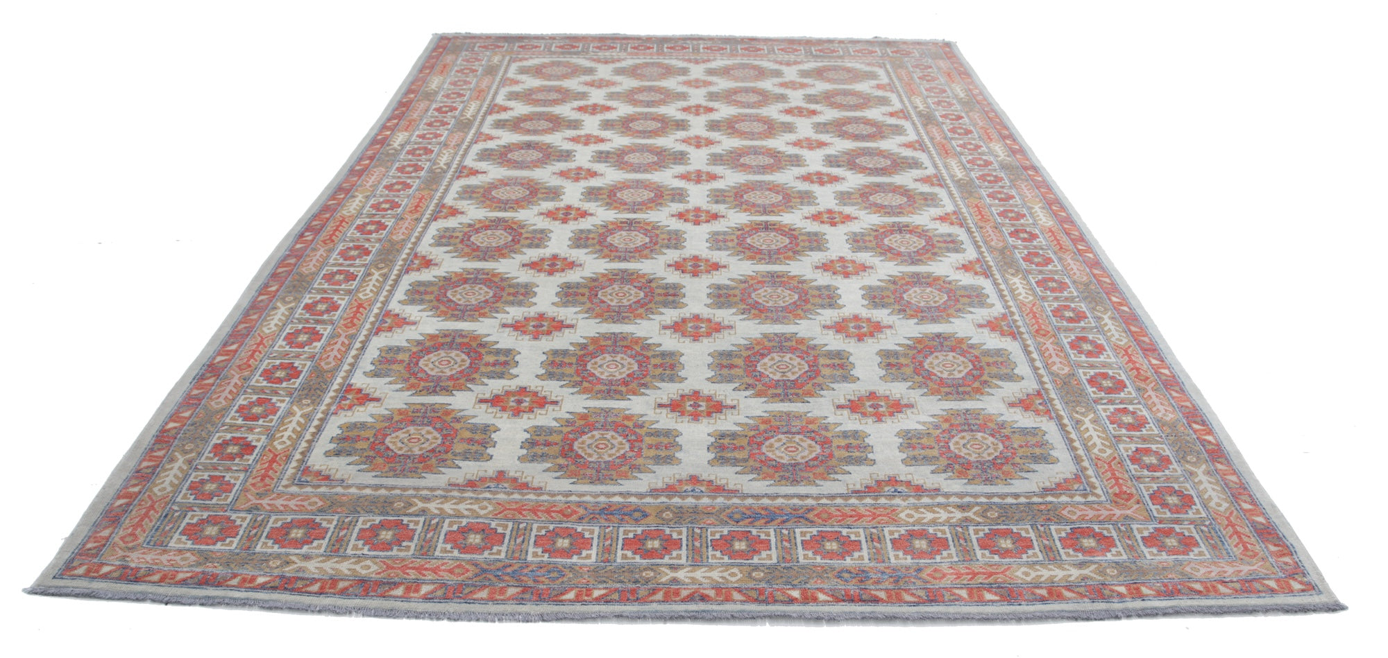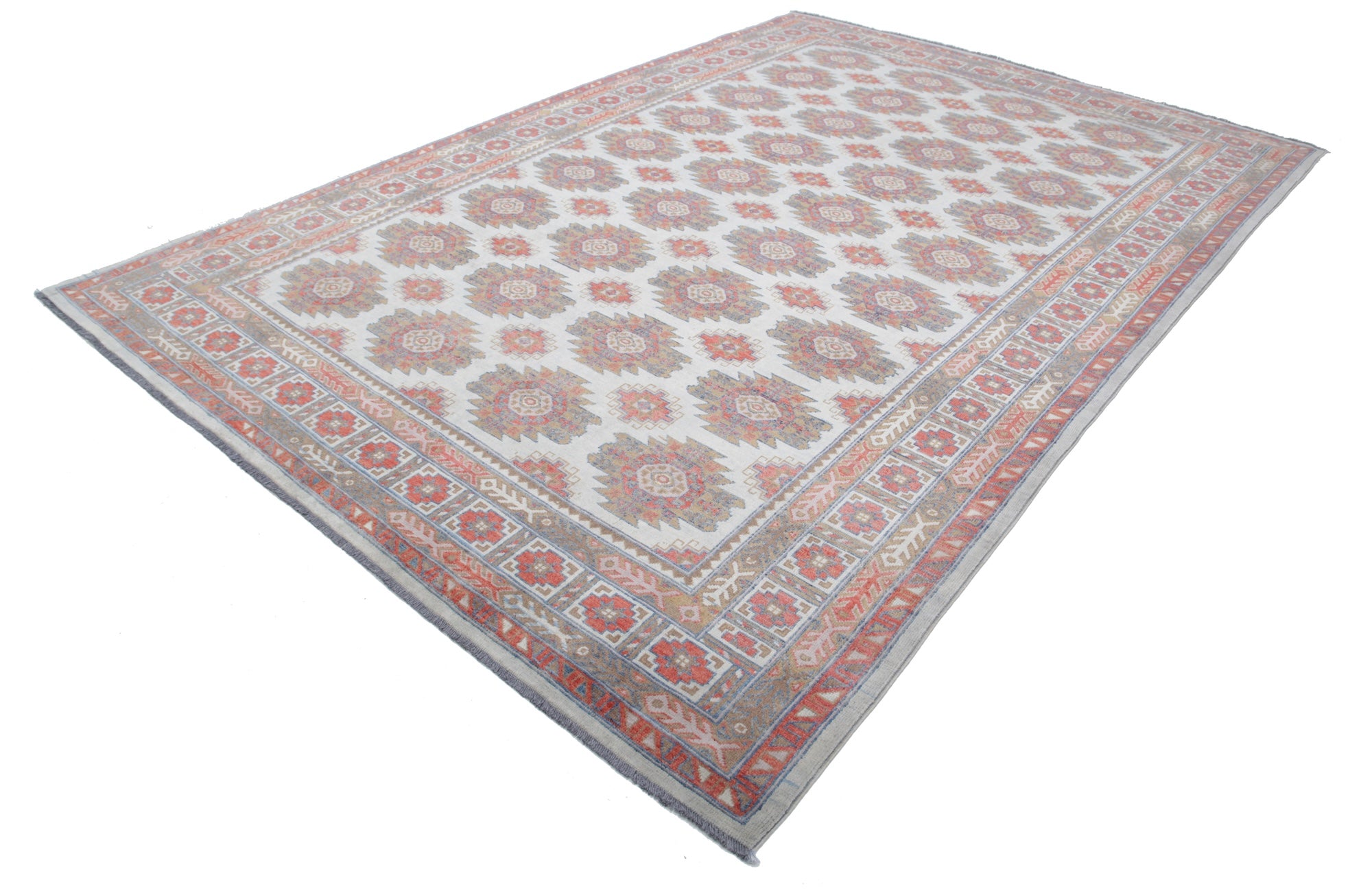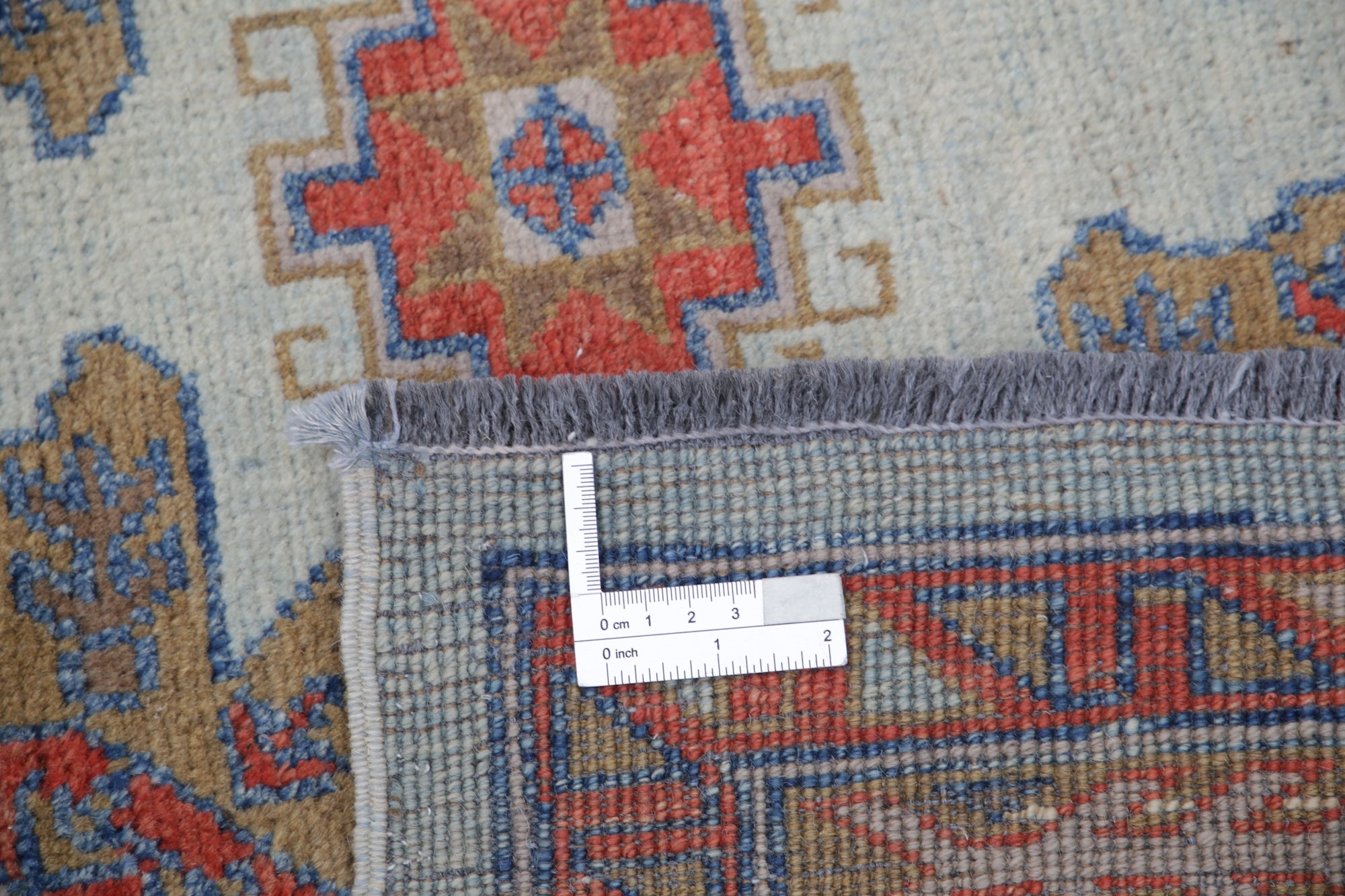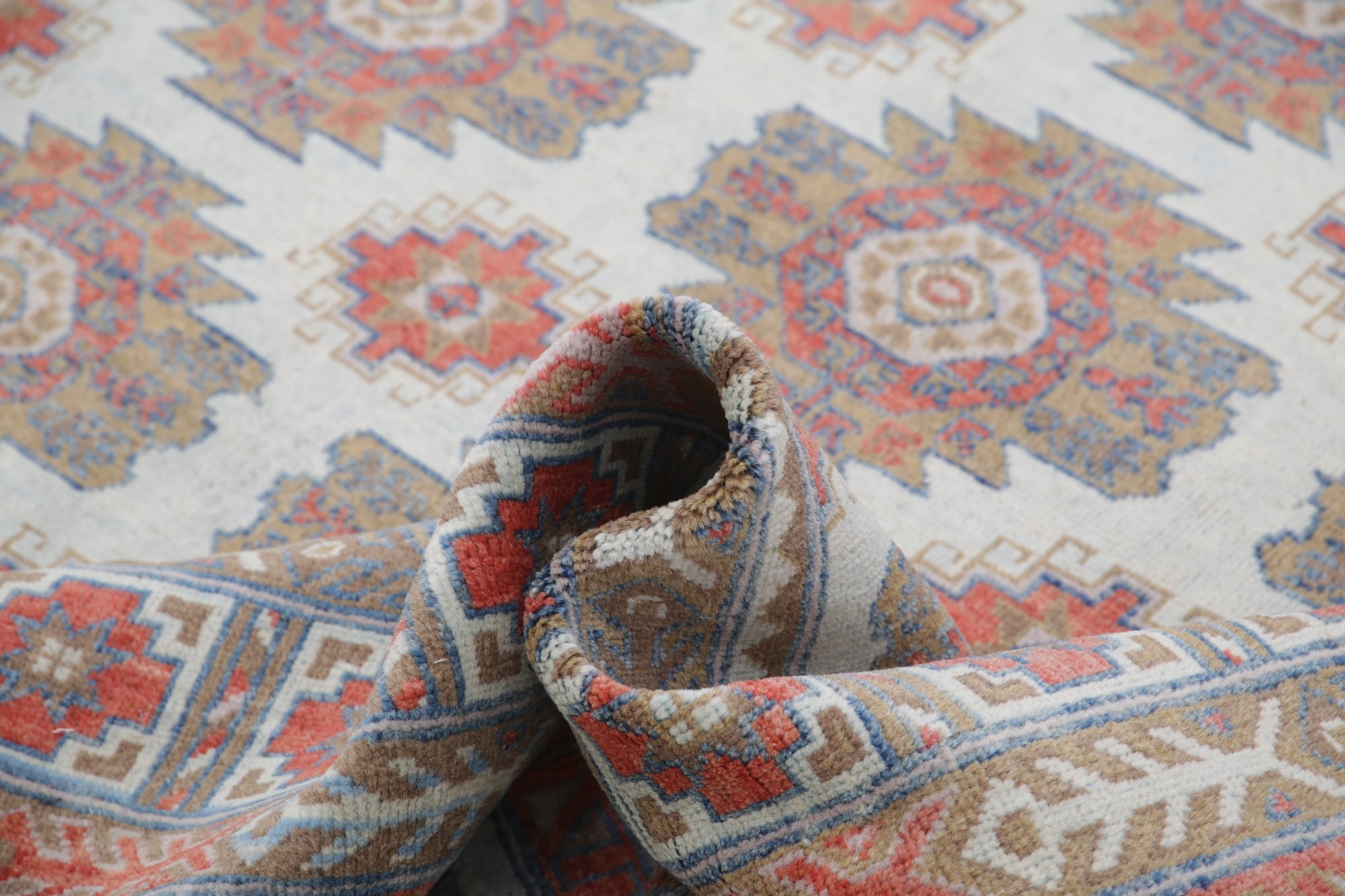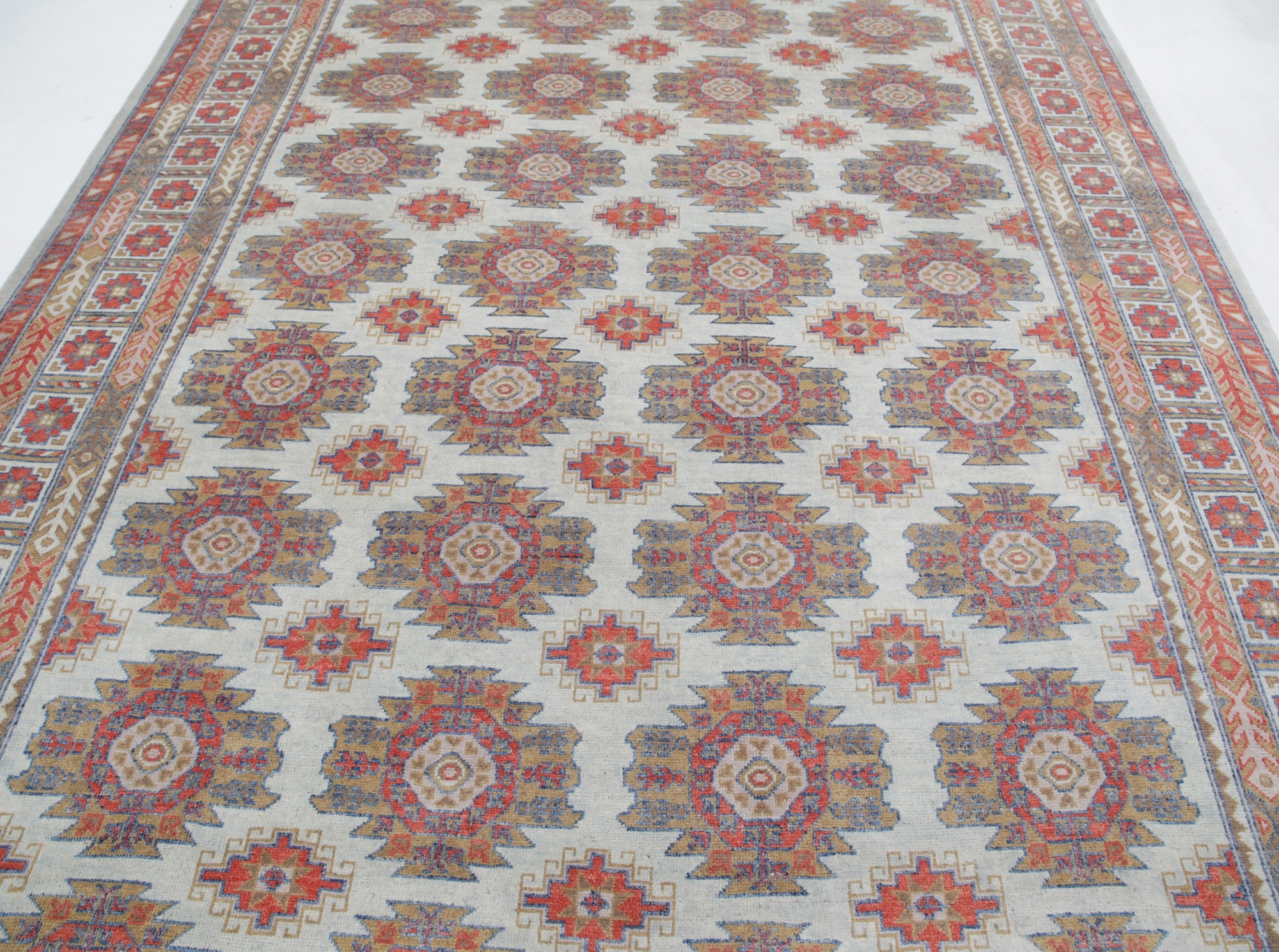 This artisan-crafted Afghan wool rug features a striking geometric tribal pattern, renowned for its cultural heritage and timeless appeal. Expertly hand-knotted by skilled weavers, it offers superior durability, making it perfect for high-traffic areas. Its intricate design and premium wool blend traditional craftsmanship with modern elegance, adding warmth and character to any space.