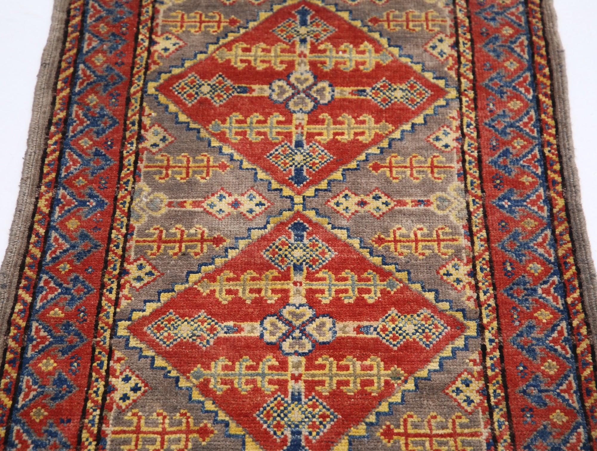 This artisan-crafted Afghan wool rug features a striking geometric tribal pattern, renowned for its cultural heritage and timeless appeal. Expertly hand-knotted by skilled weavers, it offers superior durability, making it perfect for high-traffic areas. Its intricate design and premium wool blend traditional craftsmanship with modern elegance, adding warmth and character to any space.
