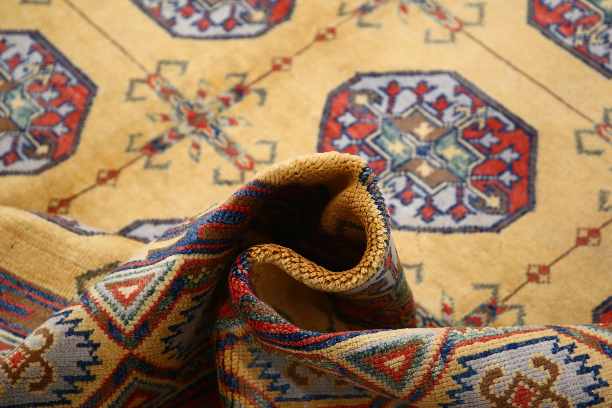 This artisan-crafted Afghan wool rug features a striking geometric tribal pattern, renowned for its cultural heritage and timeless appeal. Expertly hand-knotted by skilled weavers, it offers superior durability, making it perfect for high-traffic areas. Its intricate design and premium wool blend traditional craftsmanship with modern elegance, adding warmth and character to any space.