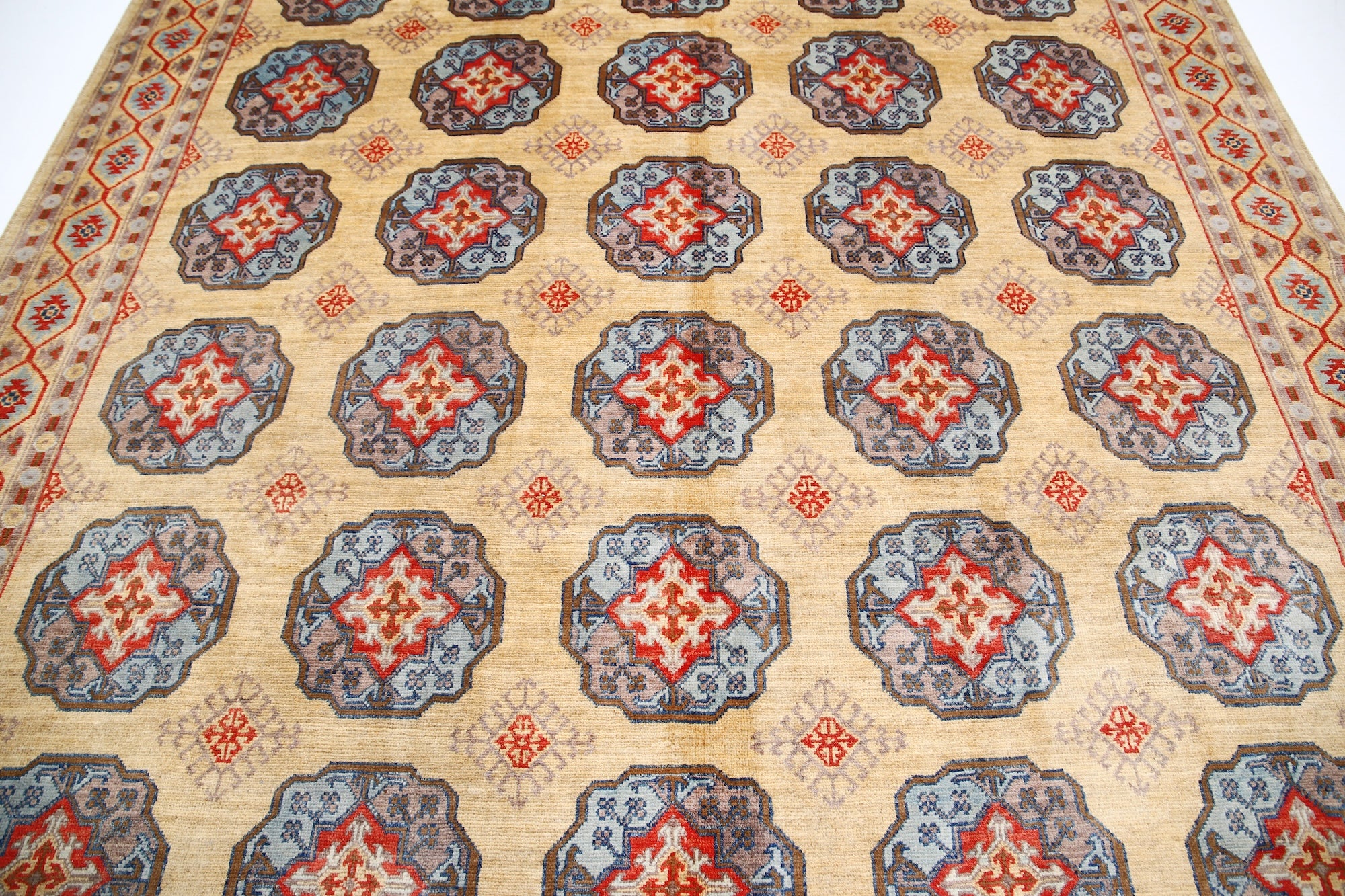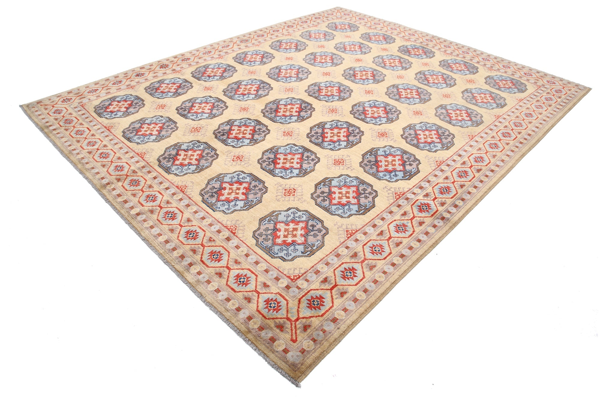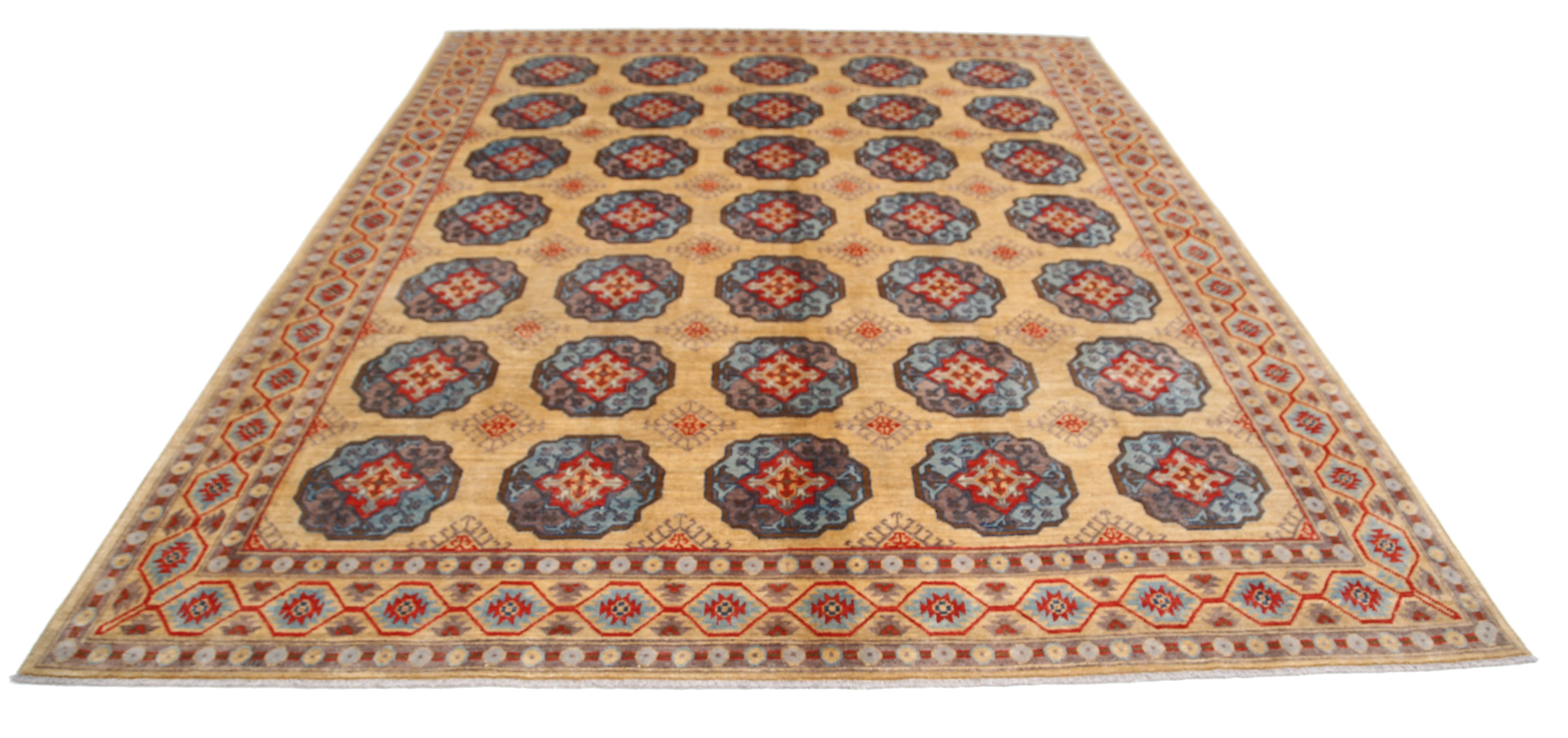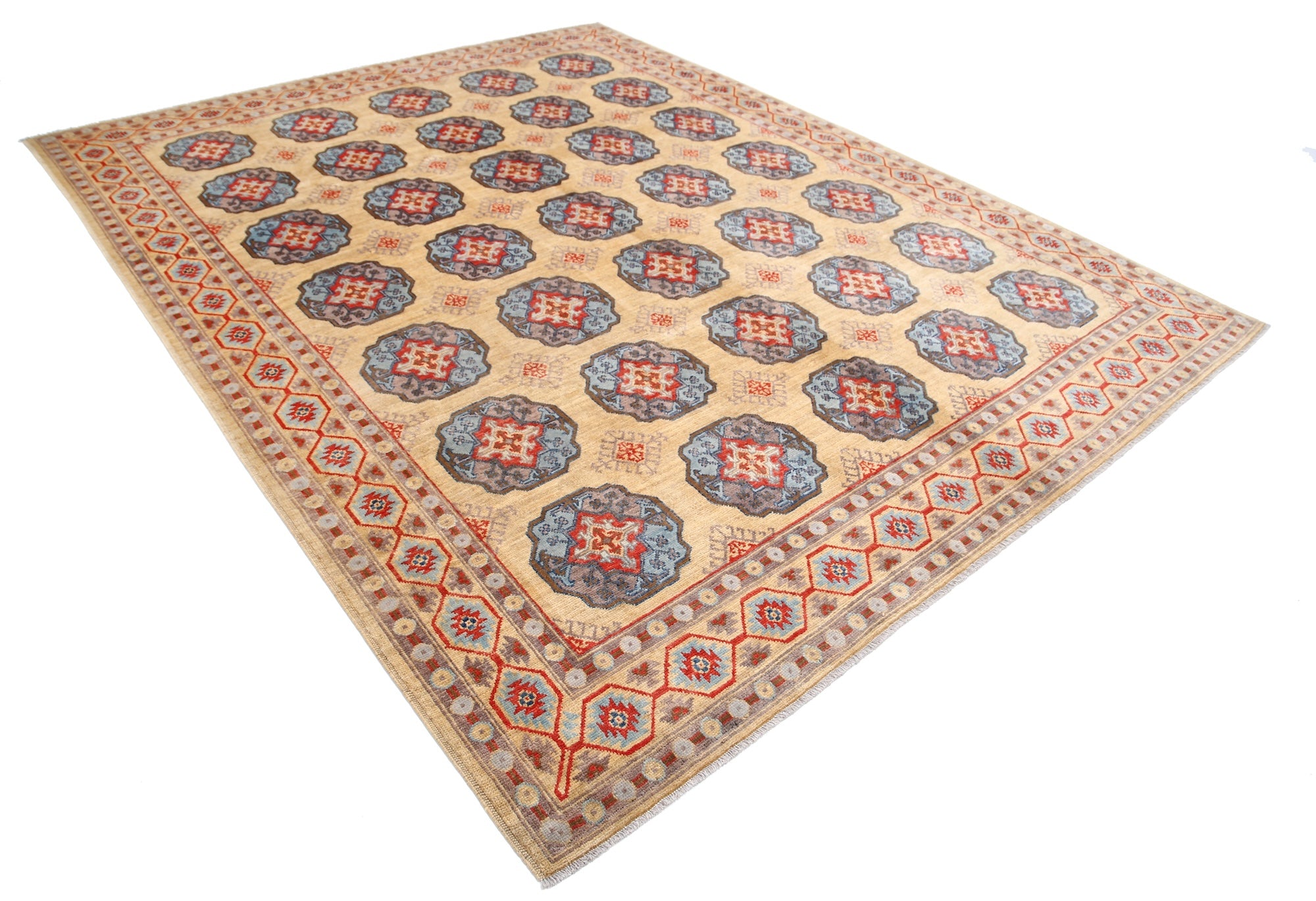 This artisan-crafted Afghan wool rug features a striking geometric tribal pattern, renowned for its cultural heritage and timeless appeal. Expertly hand-knotted by skilled weavers, it offers superior durability, making it perfect for high-traffic areas. Its intricate design and premium wool blend traditional craftsmanship with modern elegance, adding warmth and character to any space.