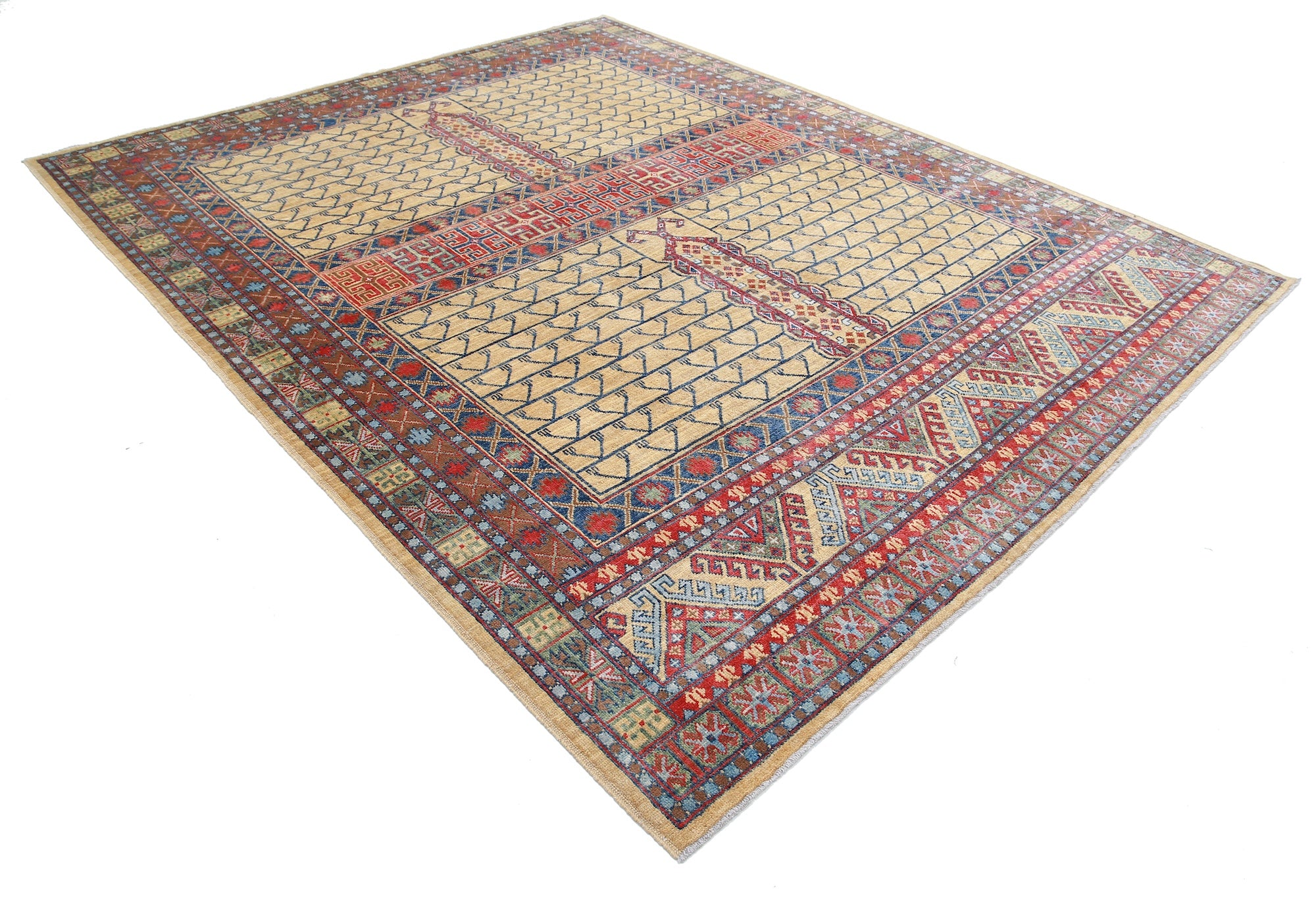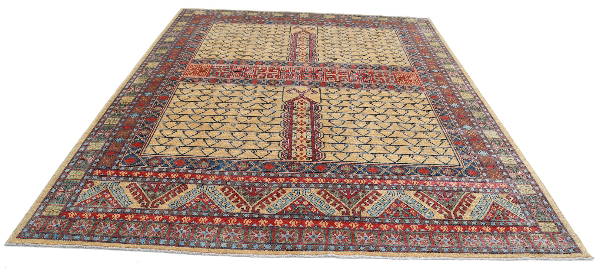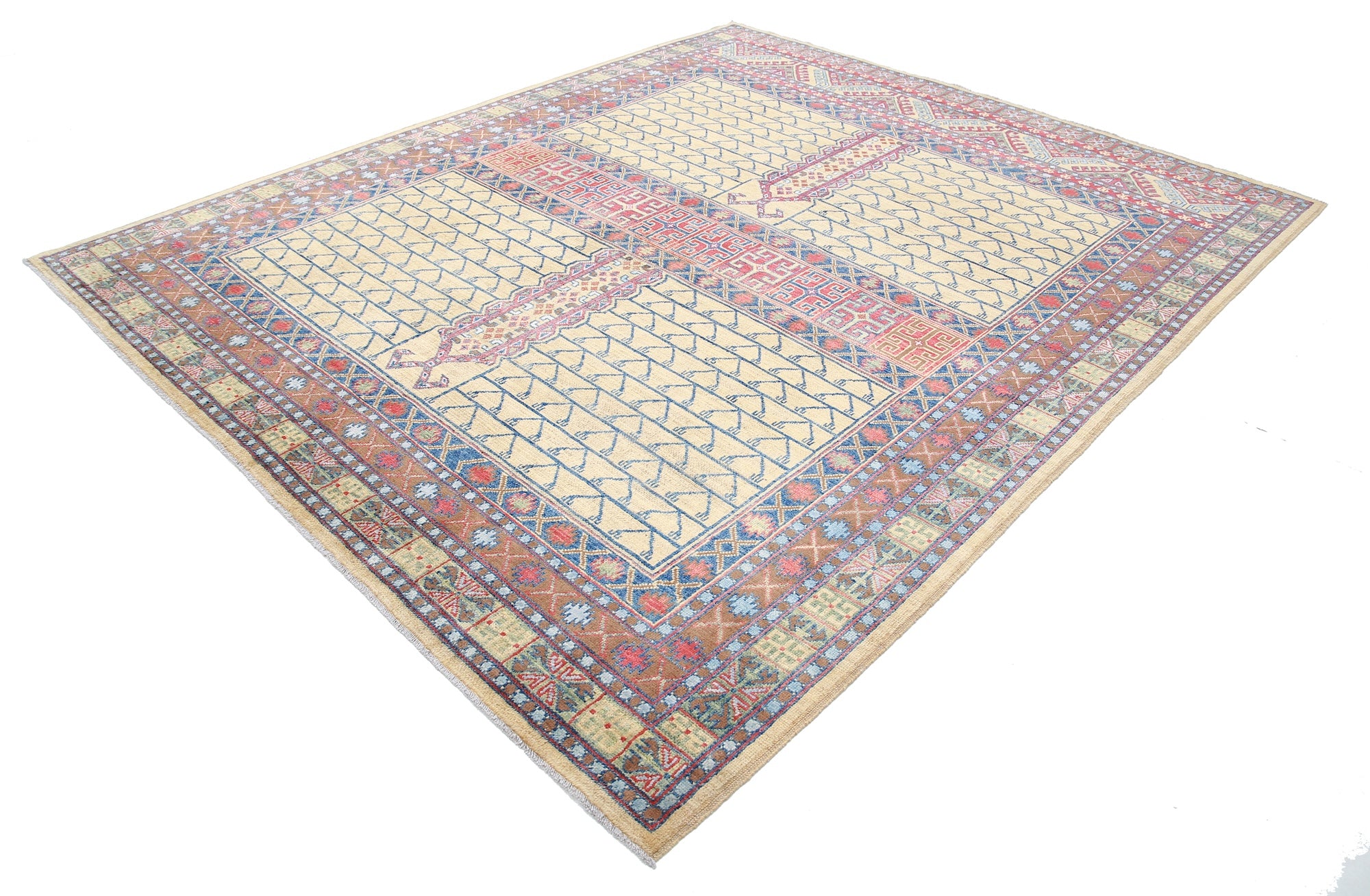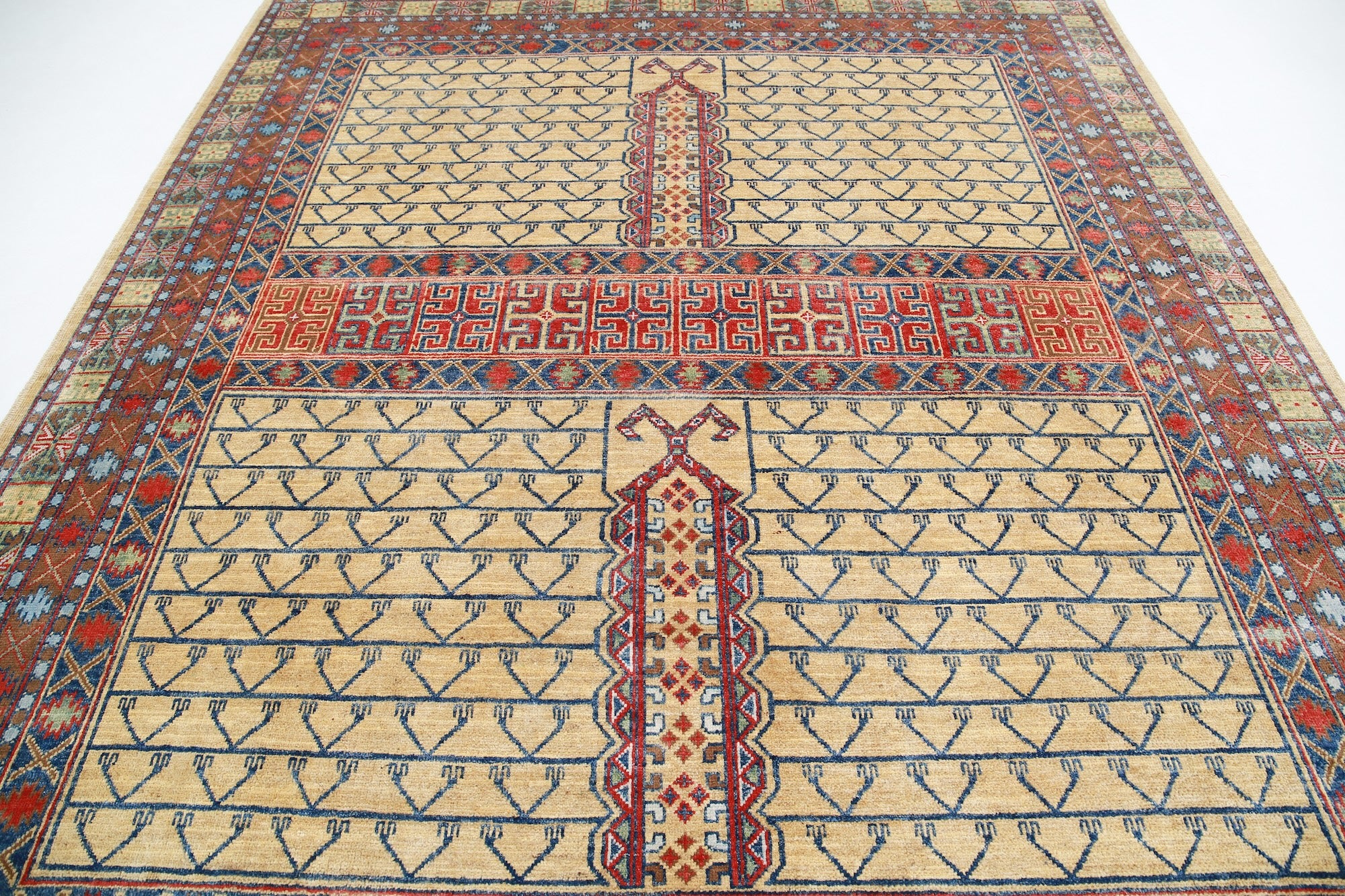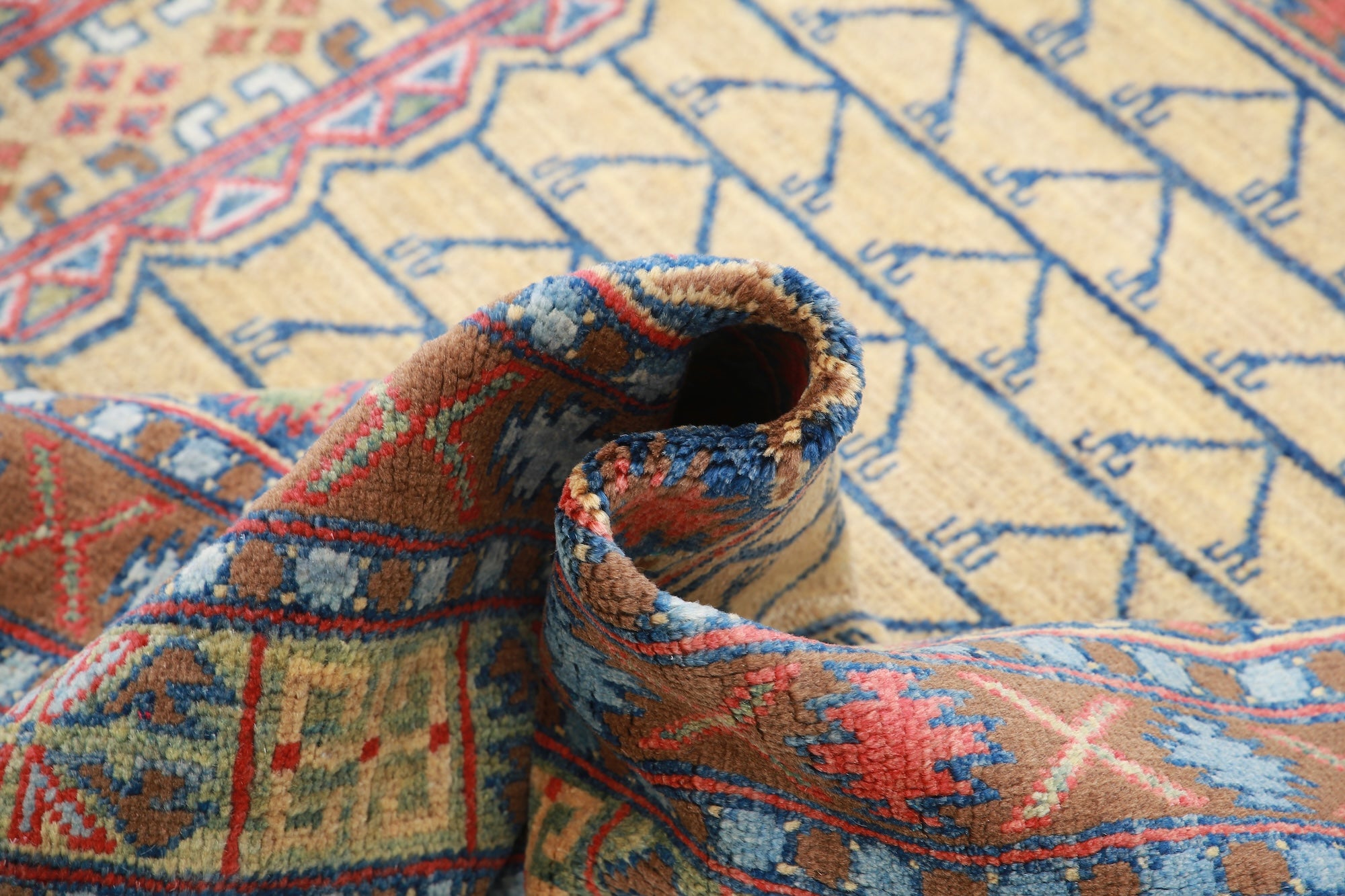 This artisan-crafted Afghan wool rug features a striking geometric tribal pattern, renowned for its cultural heritage and timeless appeal. Expertly hand-knotted by skilled weavers, it offers superior durability, making it perfect for high-traffic areas. Its intricate design and premium wool blend traditional craftsmanship with modern elegance, adding warmth and character to any space.