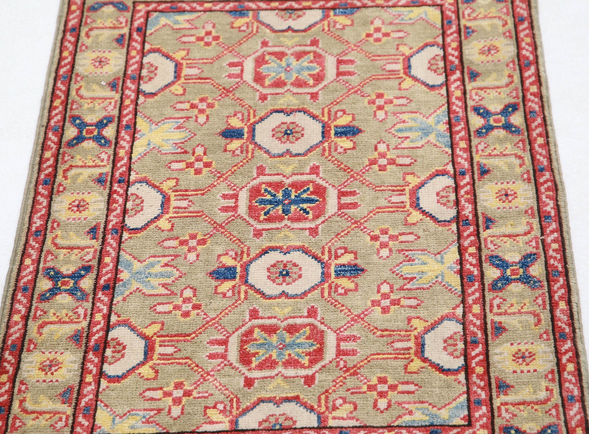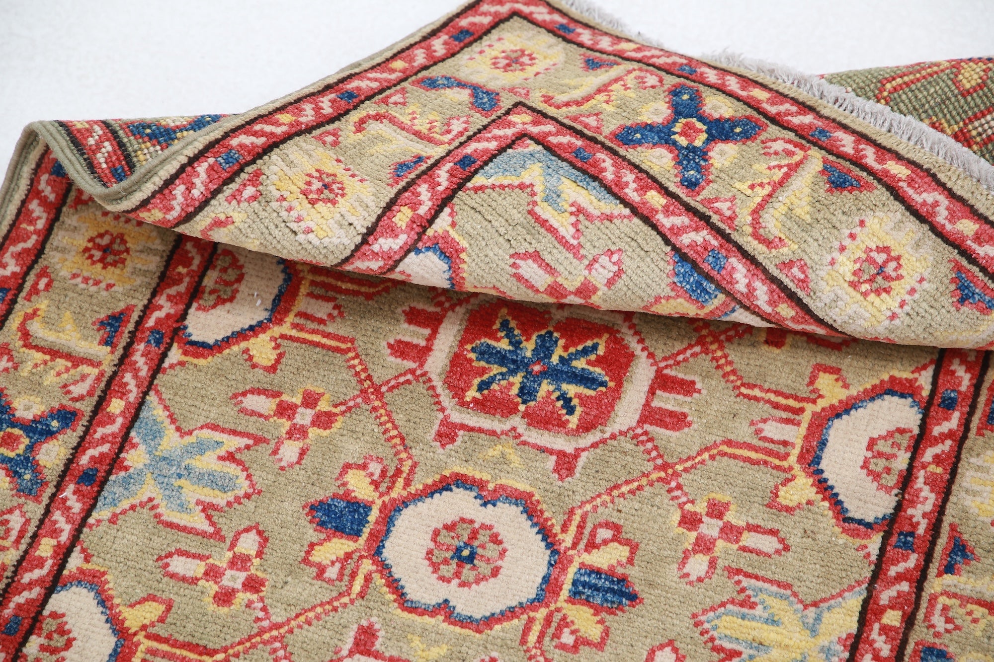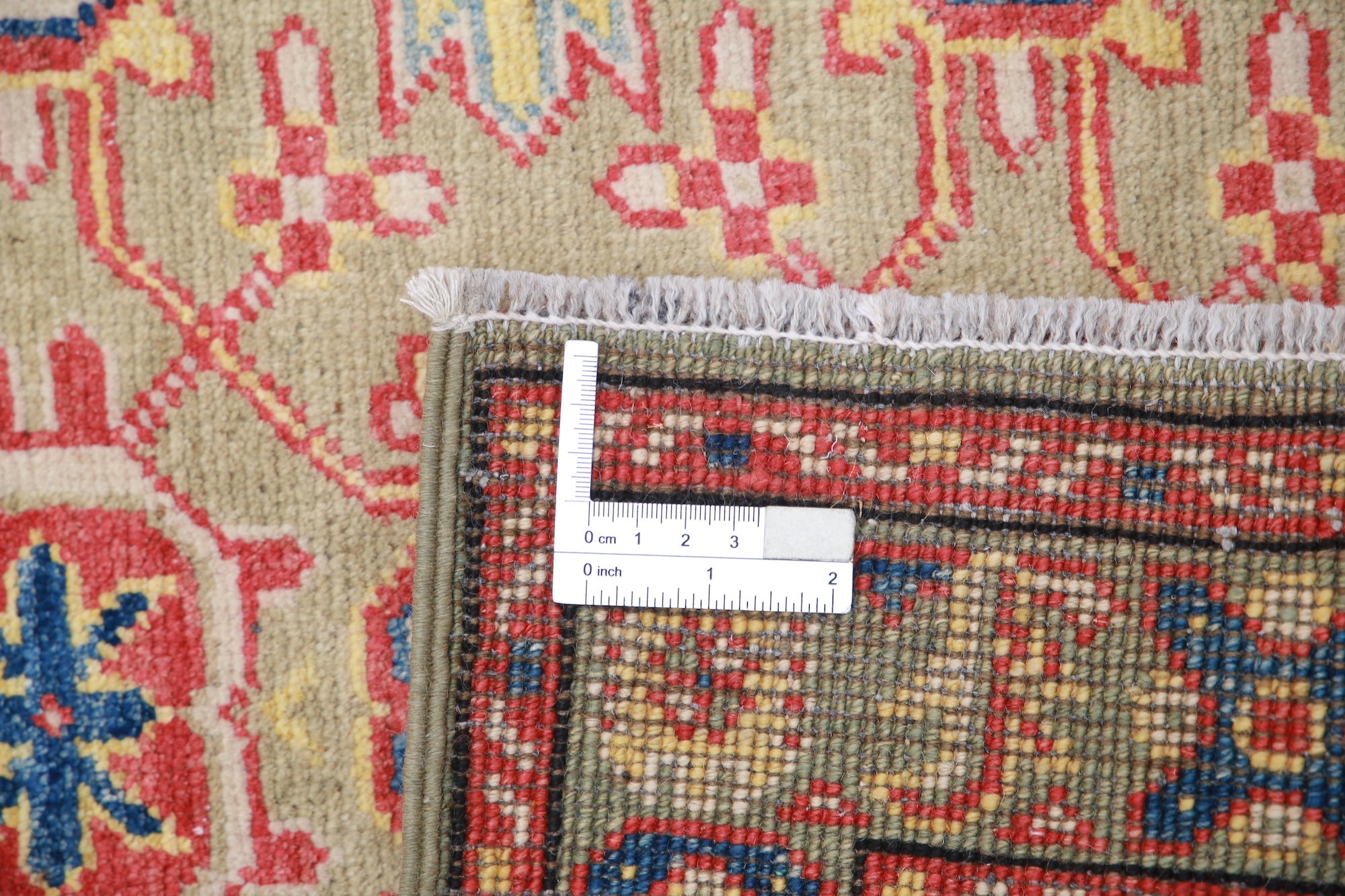 This artisan-crafted Afghan wool rug features a striking geometric tribal pattern, renowned for its cultural heritage and timeless appeal. Expertly hand-knotted by skilled weavers, it offers superior durability, making it perfect for high-traffic areas. Its intricate design and premium wool blend traditional craftsmanship with modern elegance, adding warmth and character to any space.