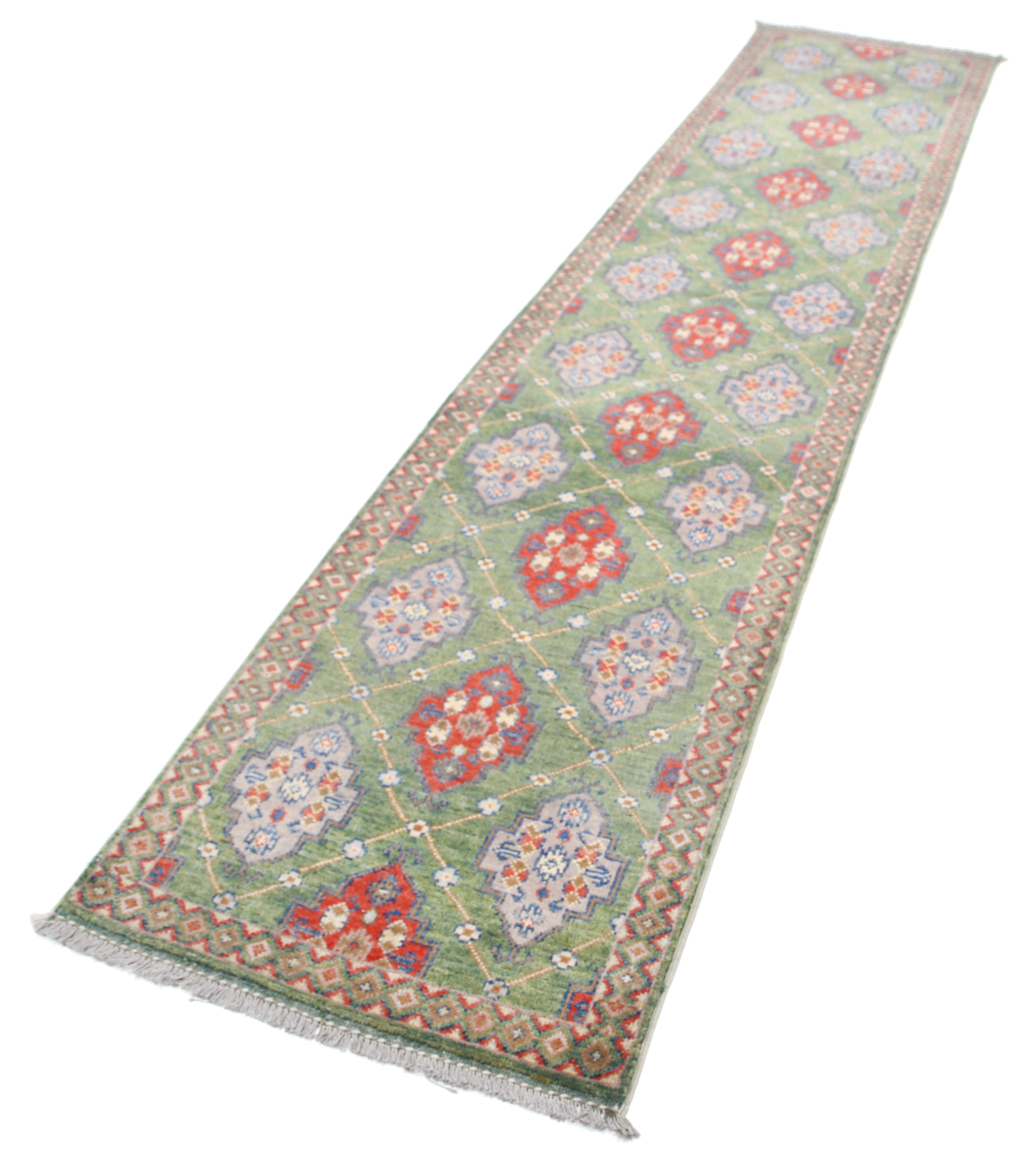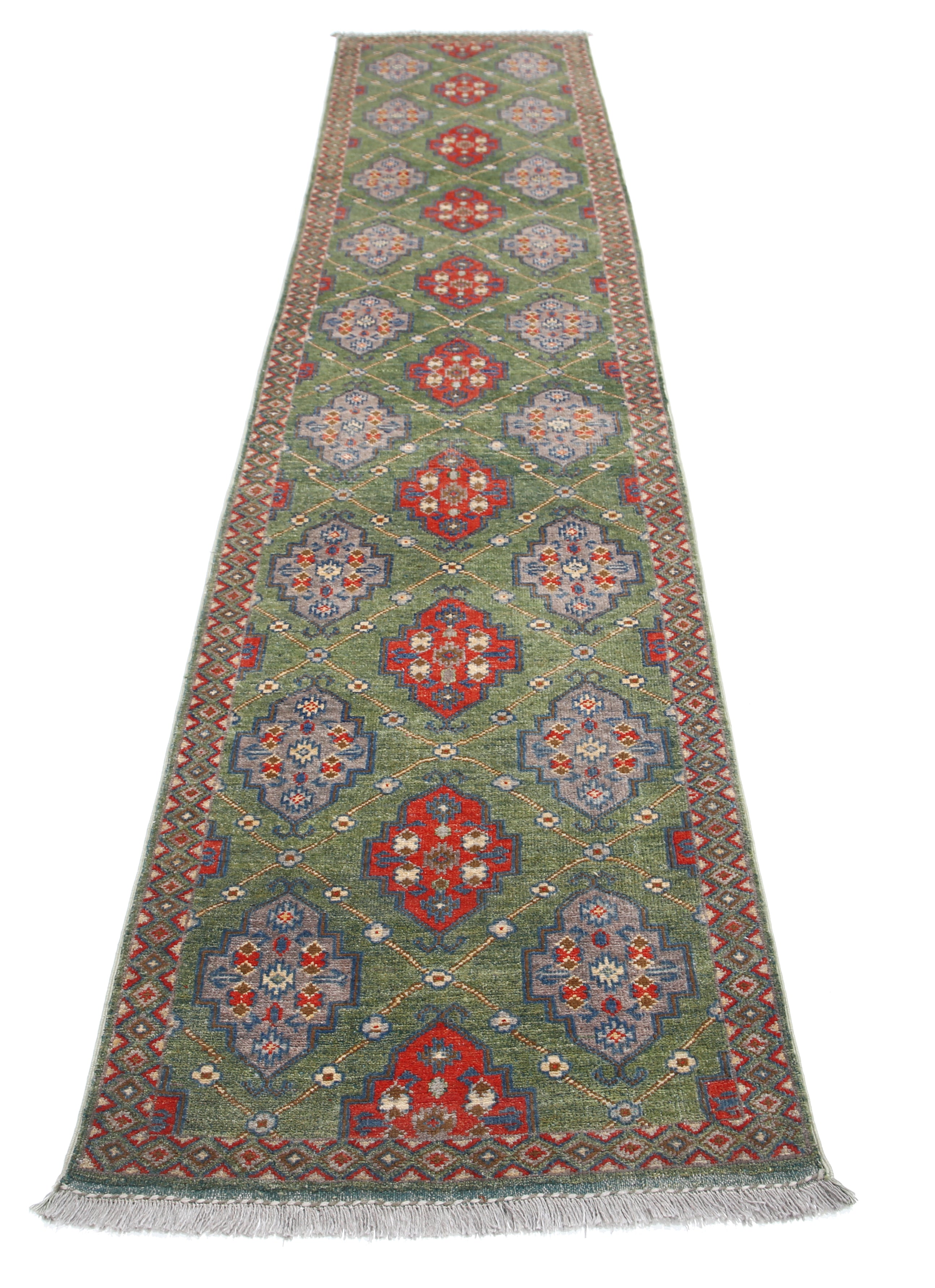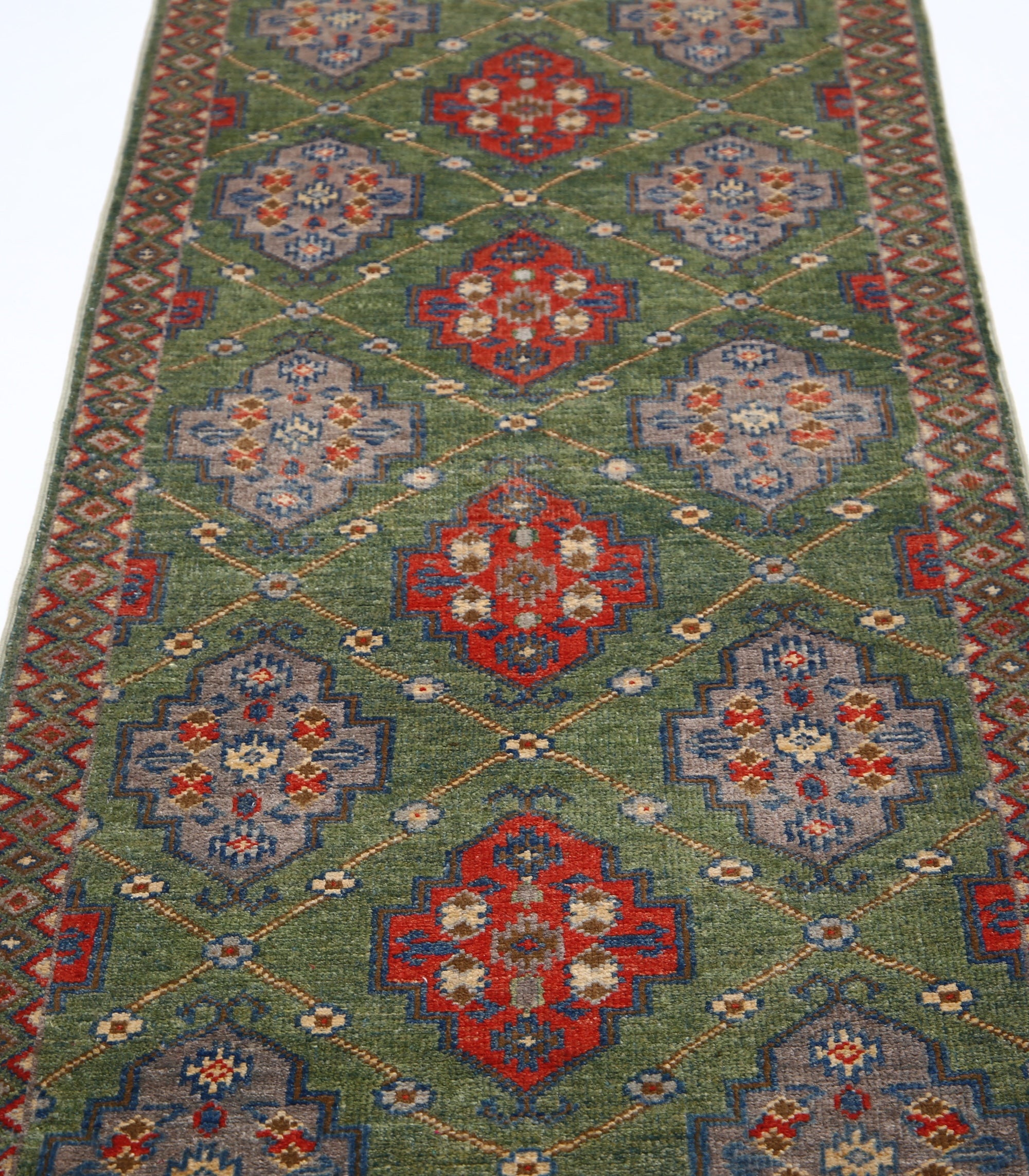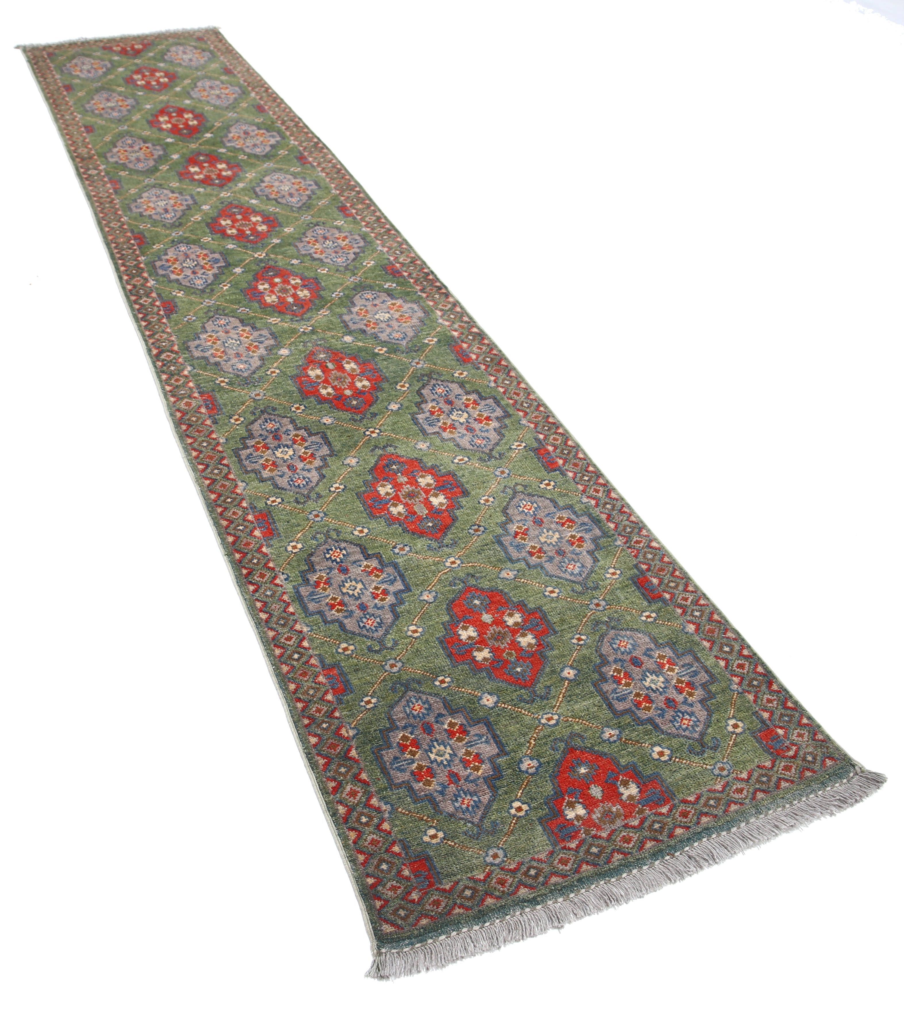 This artisan-crafted Afghan wool rug features a striking geometric tribal pattern, renowned for its cultural heritage and timeless appeal. Expertly hand-knotted by skilled weavers, it offers superior durability, making it perfect for high-traffic areas. Its intricate design and premium wool blend traditional craftsmanship with modern elegance, adding warmth and character to any space.