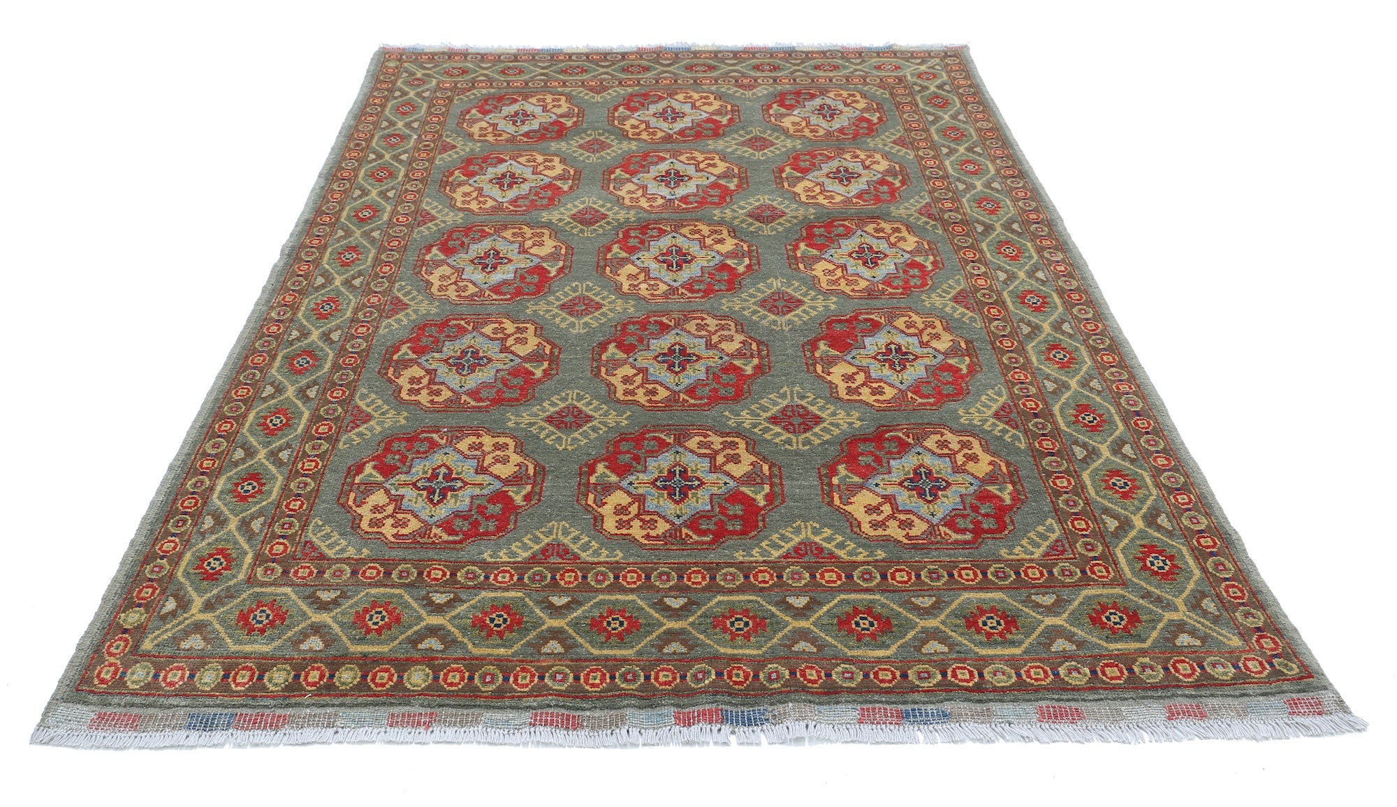 This artisan-crafted Afghan wool rug features a striking geometric tribal pattern, renowned for its cultural heritage and timeless appeal. Expertly hand-knotted by skilled weavers, it offers superior durability, making it perfect for high-traffic areas. Its intricate design and premium wool blend traditional craftsmanship with modern elegance, adding warmth and character to any space.
