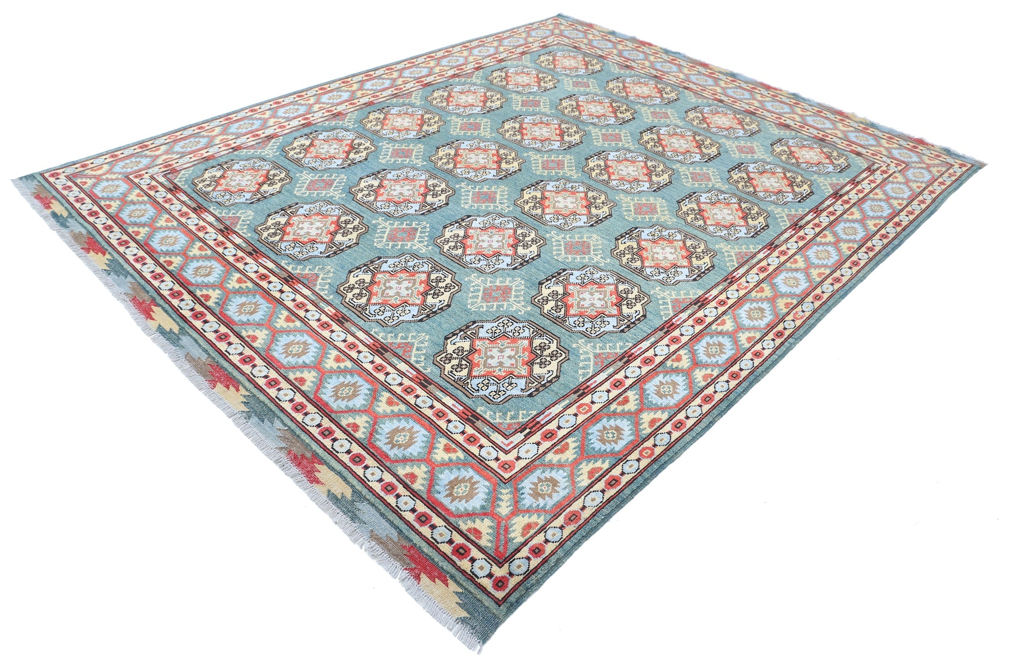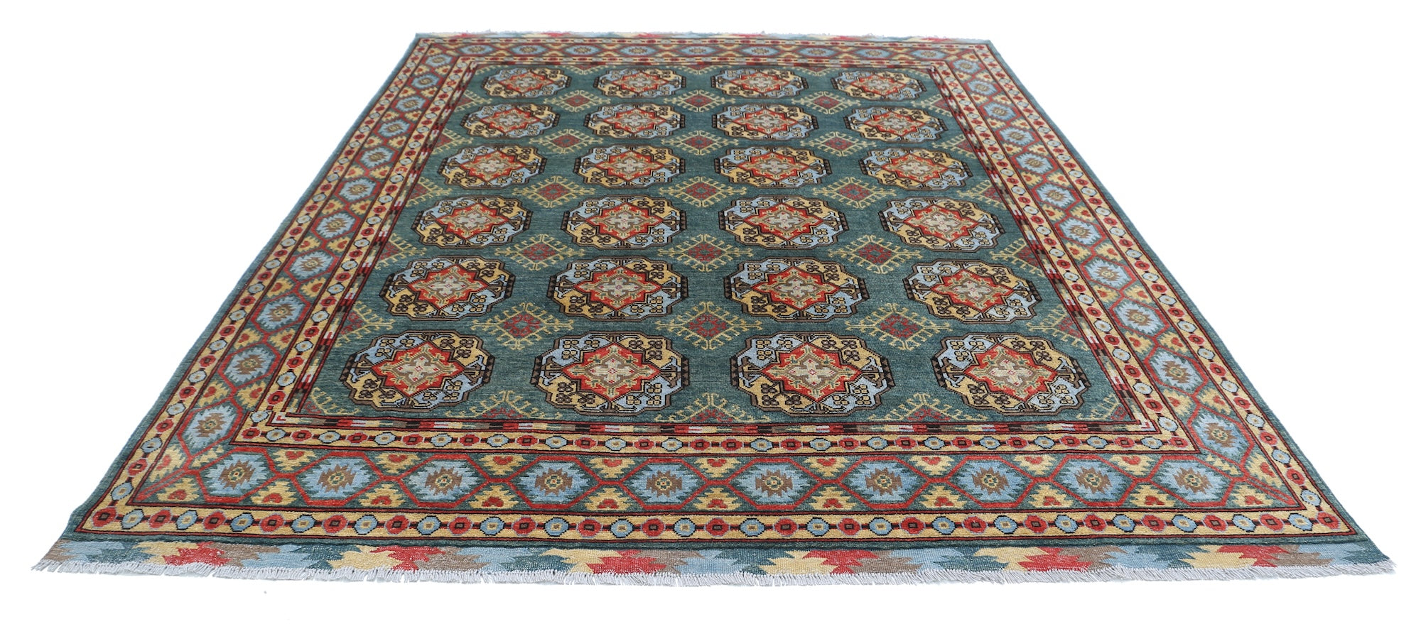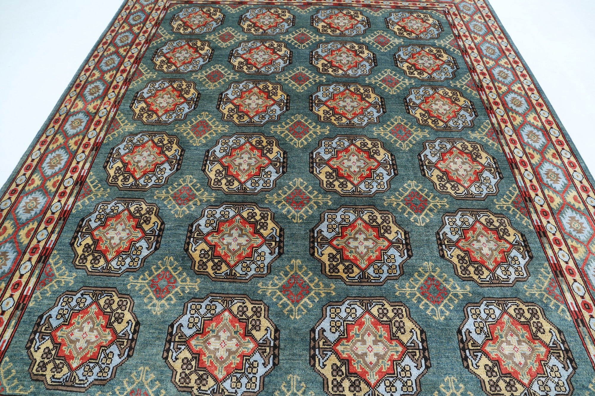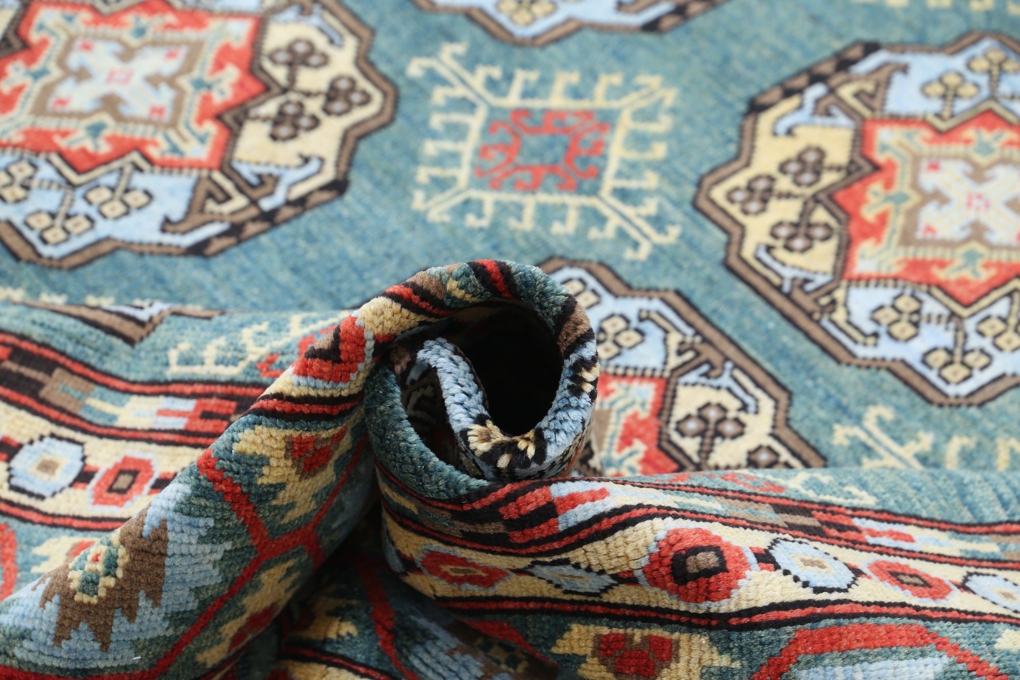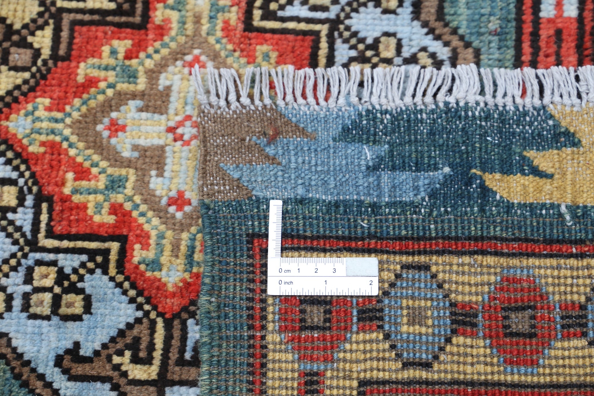 This artisan-crafted Afghan wool rug features a striking geometric tribal pattern, renowned for its cultural heritage and timeless appeal. Expertly hand-knotted by skilled weavers, it offers superior durability, making it perfect for high-traffic areas. Its intricate design and premium wool blend traditional craftsmanship with modern elegance, adding warmth and character to any space.