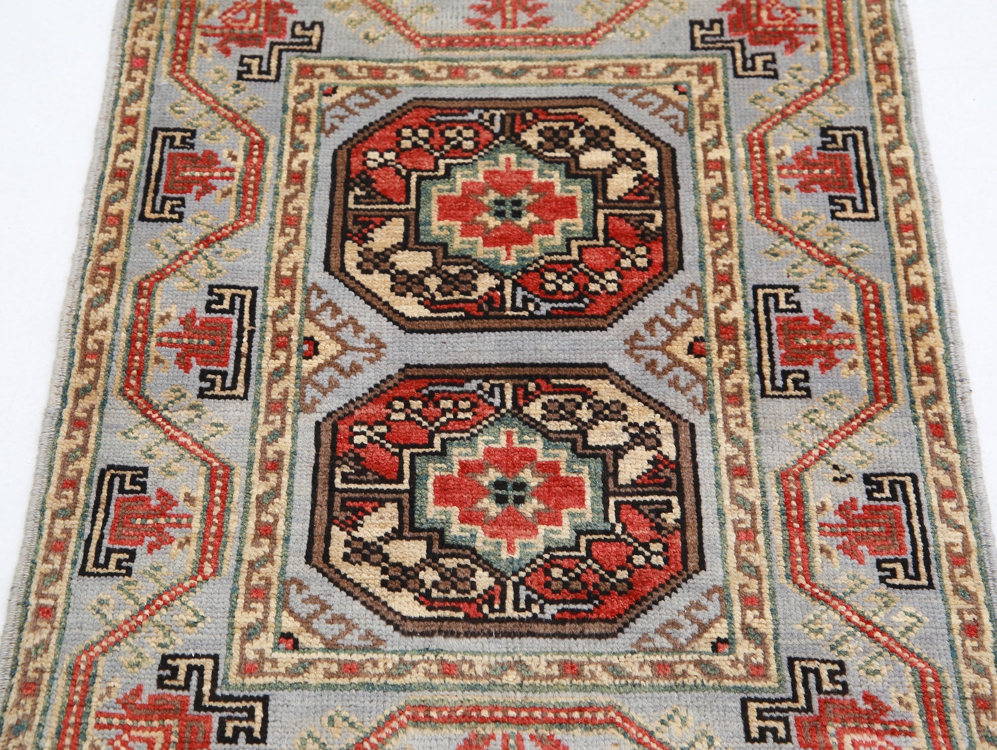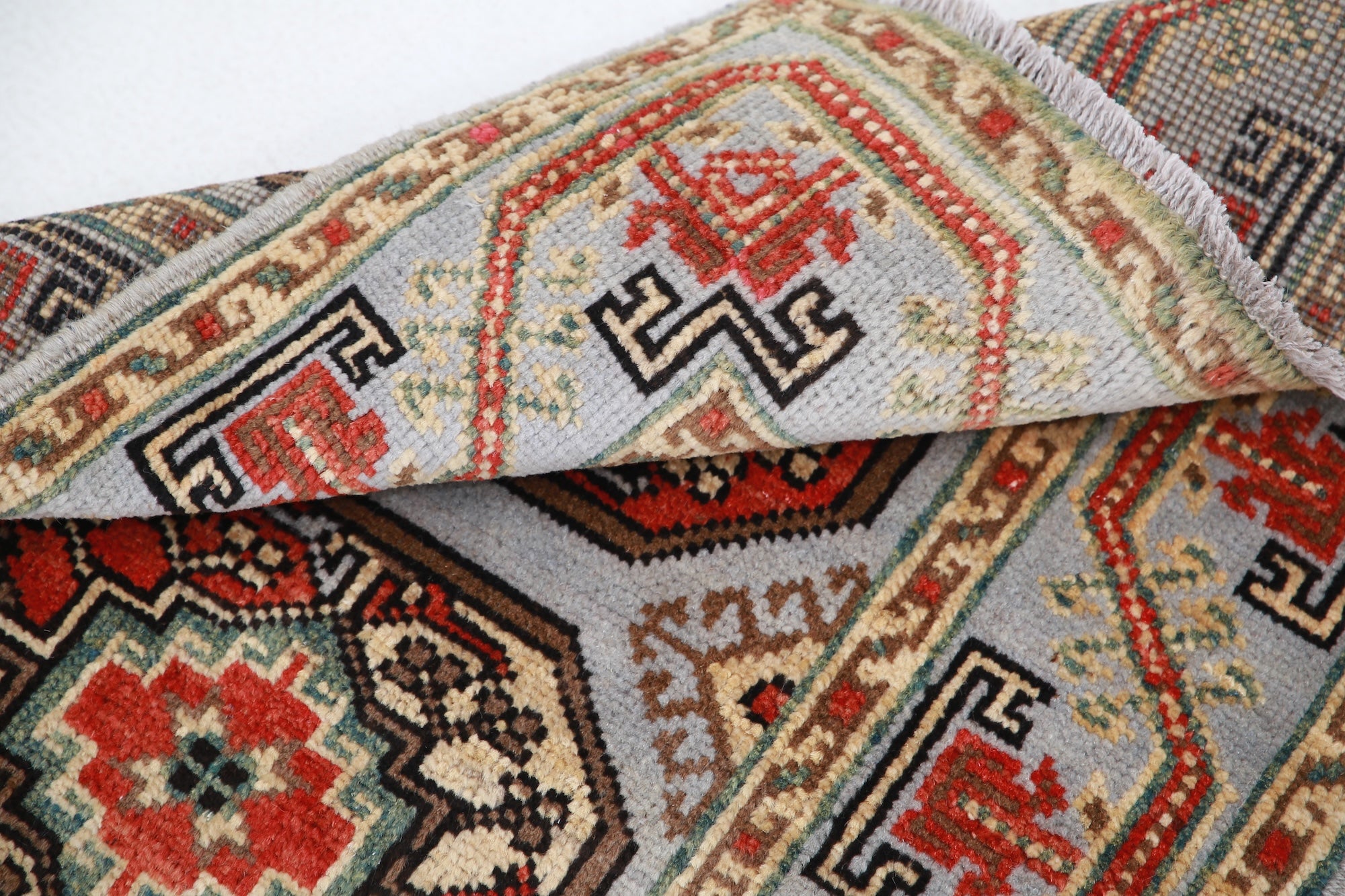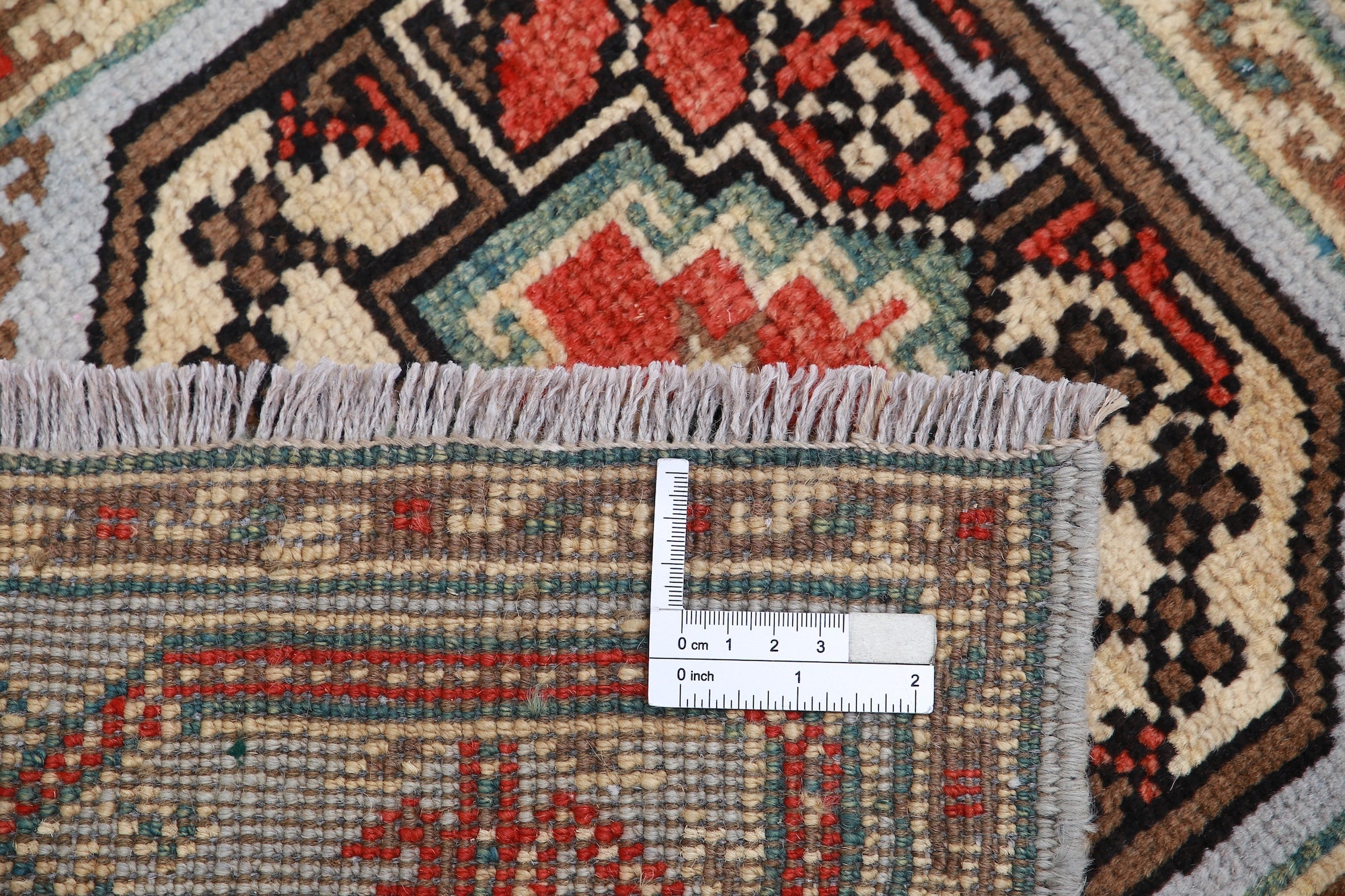 This artisan-crafted Afghan wool rug features a striking geometric tribal pattern, renowned for its cultural heritage and timeless appeal. Expertly hand-knotted by skilled weavers, it offers superior durability, making it perfect for high-traffic areas. Its intricate design and premium wool blend traditional craftsmanship with modern elegance, adding warmth and character to any space.