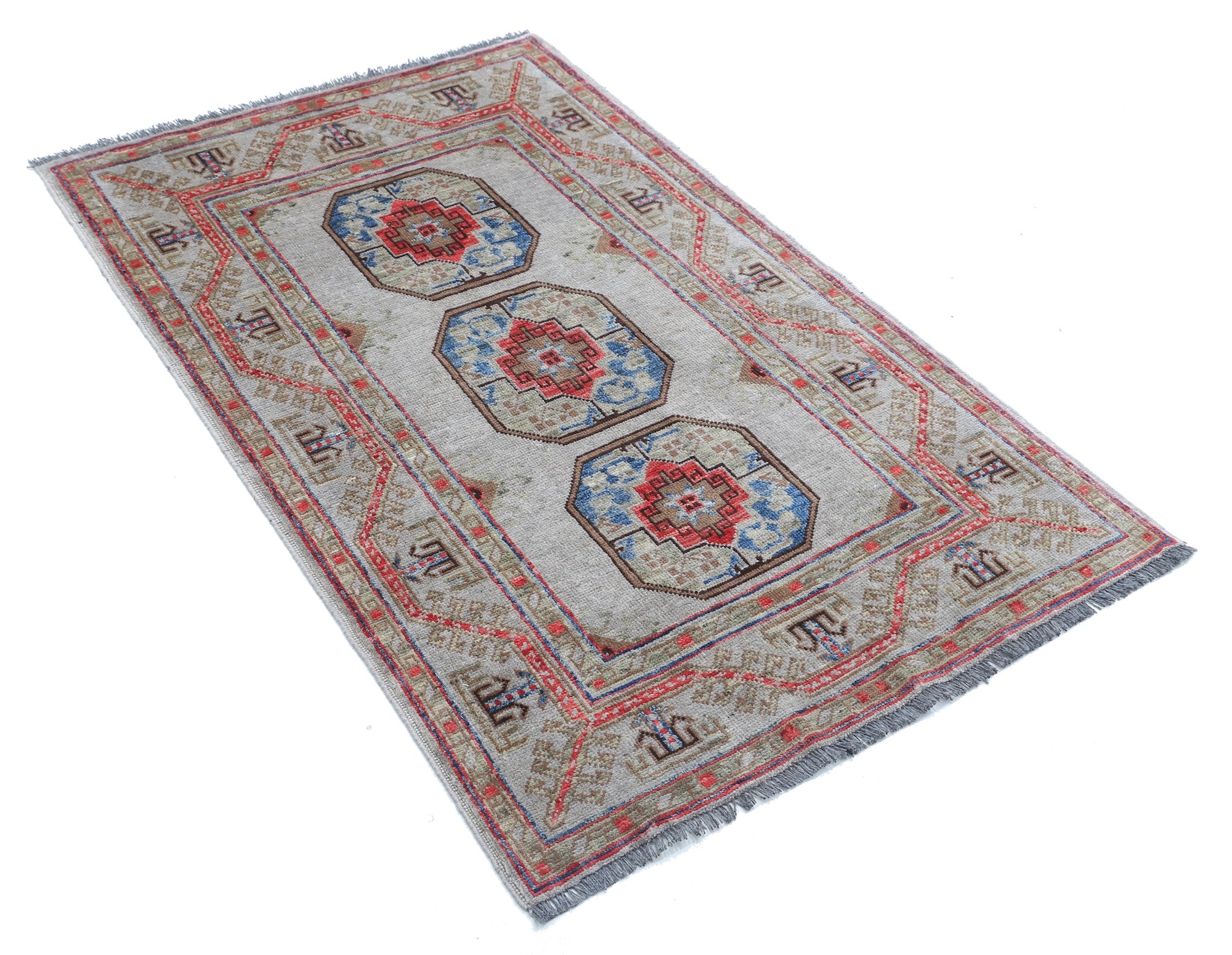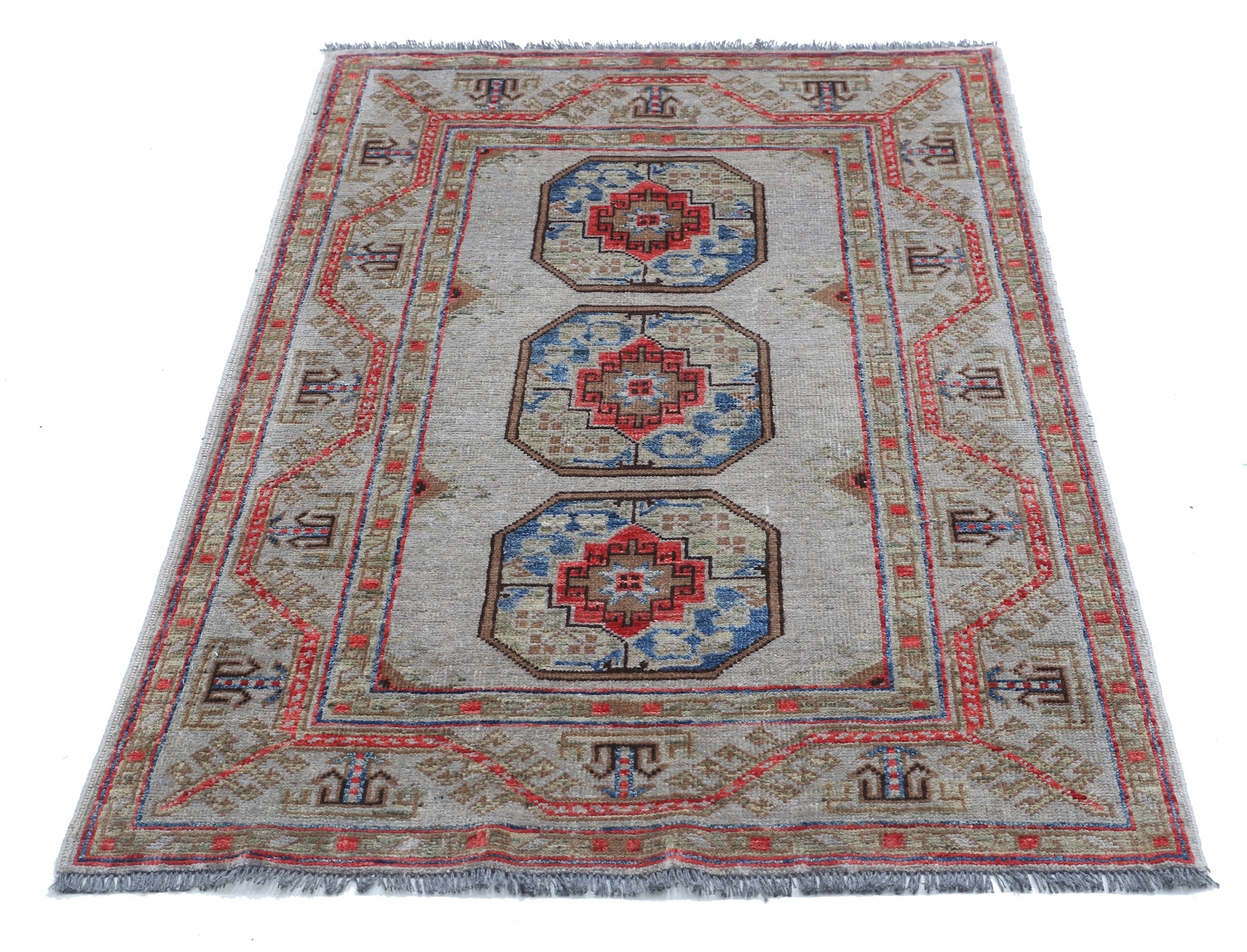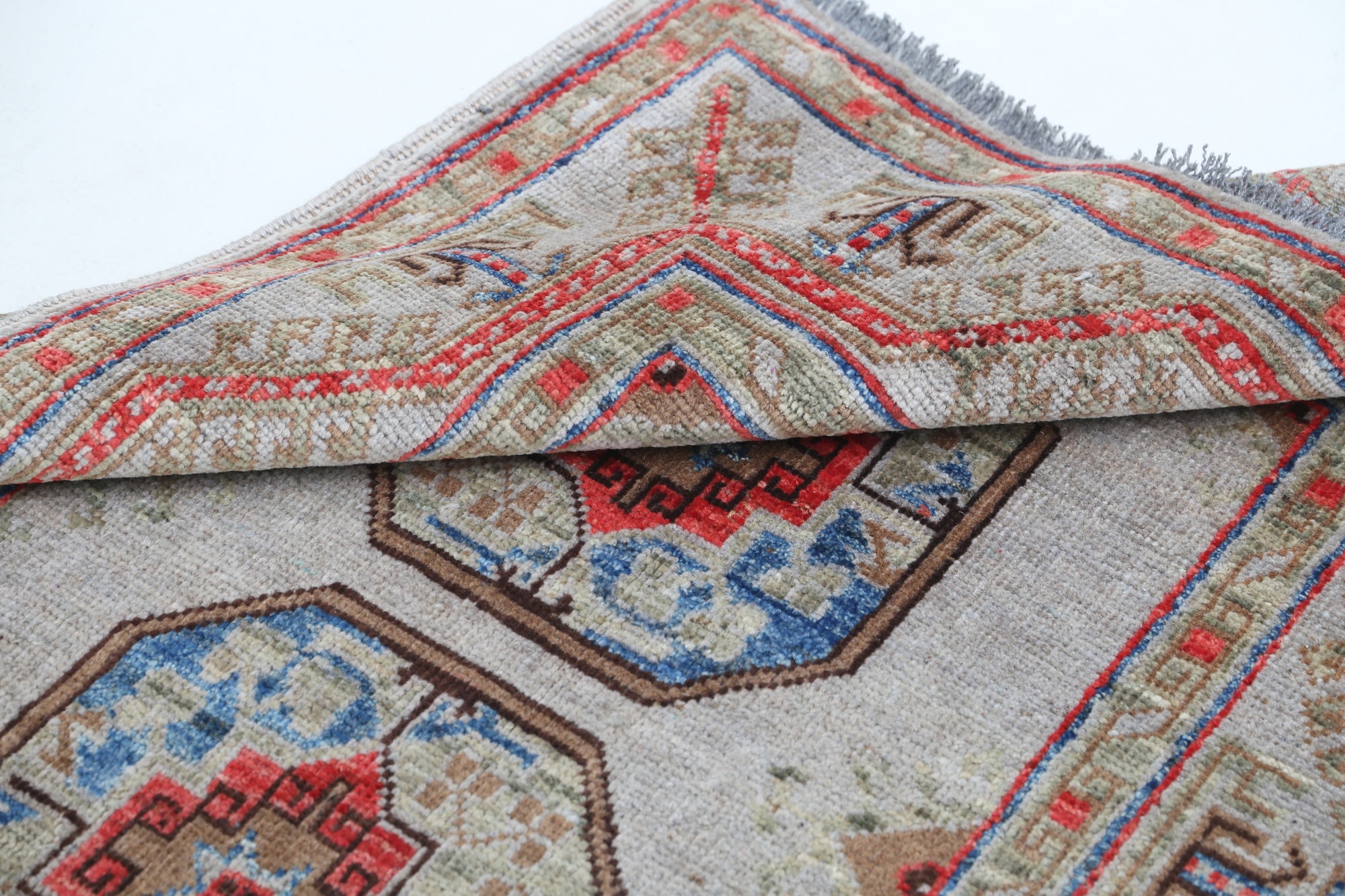 This artisan-crafted Afghan wool rug features a striking geometric tribal pattern, renowned for its cultural heritage and timeless appeal. Expertly hand-knotted by skilled weavers, it offers superior durability, making it perfect for high-traffic areas. Its intricate design and premium wool blend traditional craftsmanship with modern elegance, adding warmth and character to any space.
