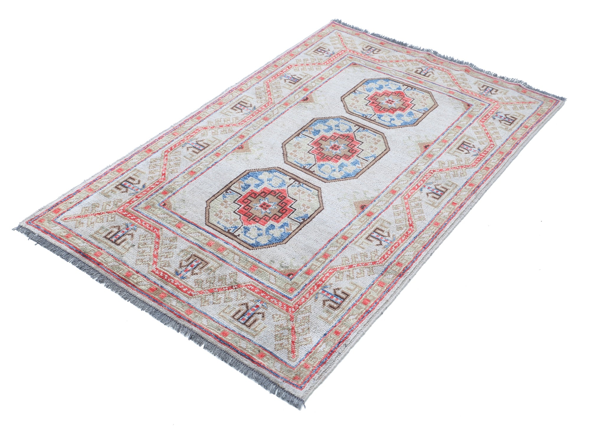 Hand-Knotted Distressed Vintage Wool Rug - 3'1" x 4'11"