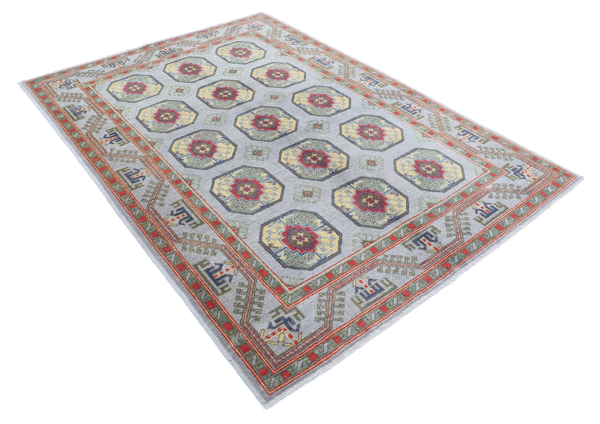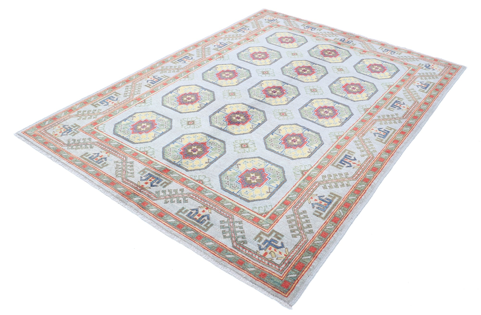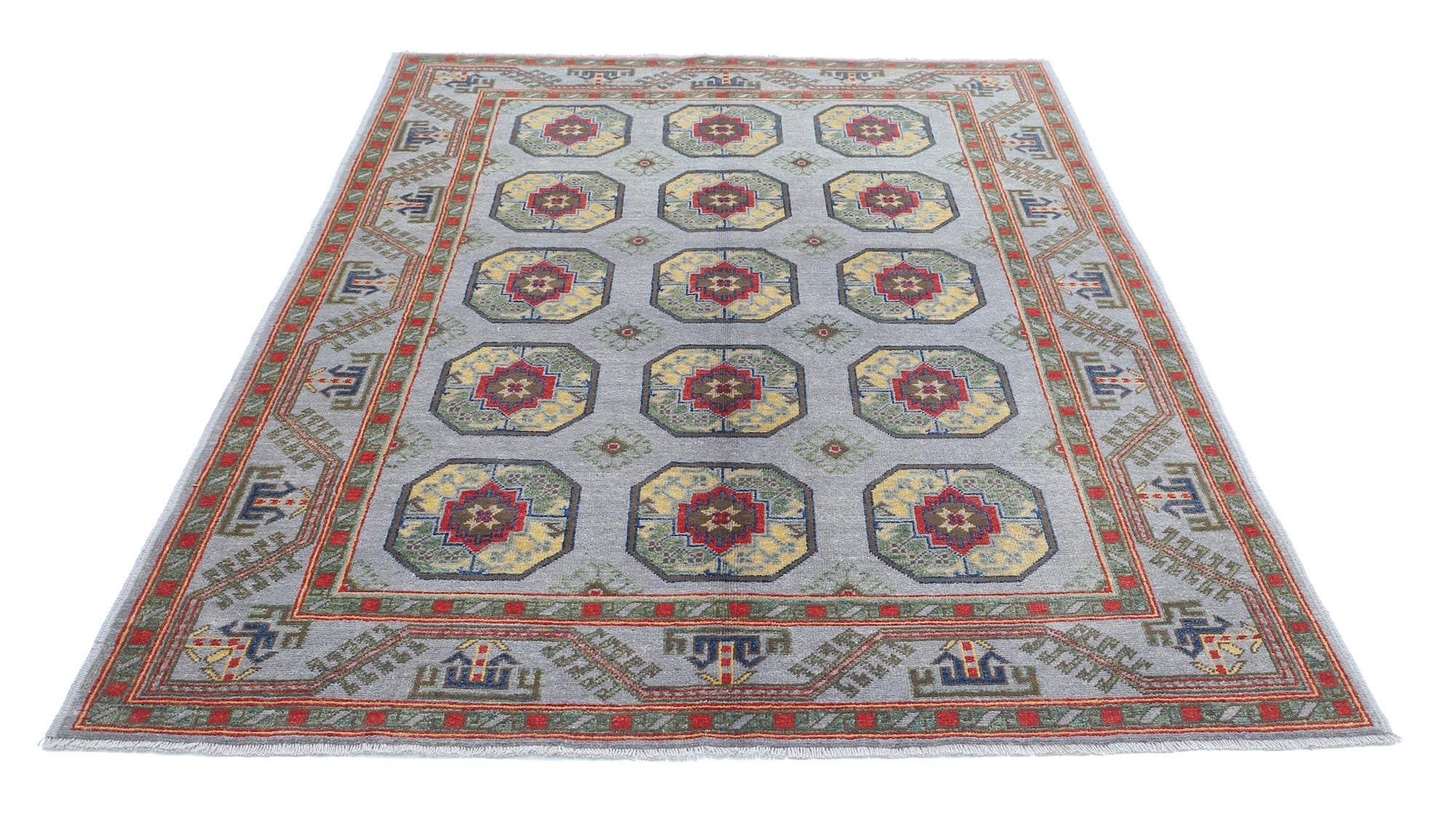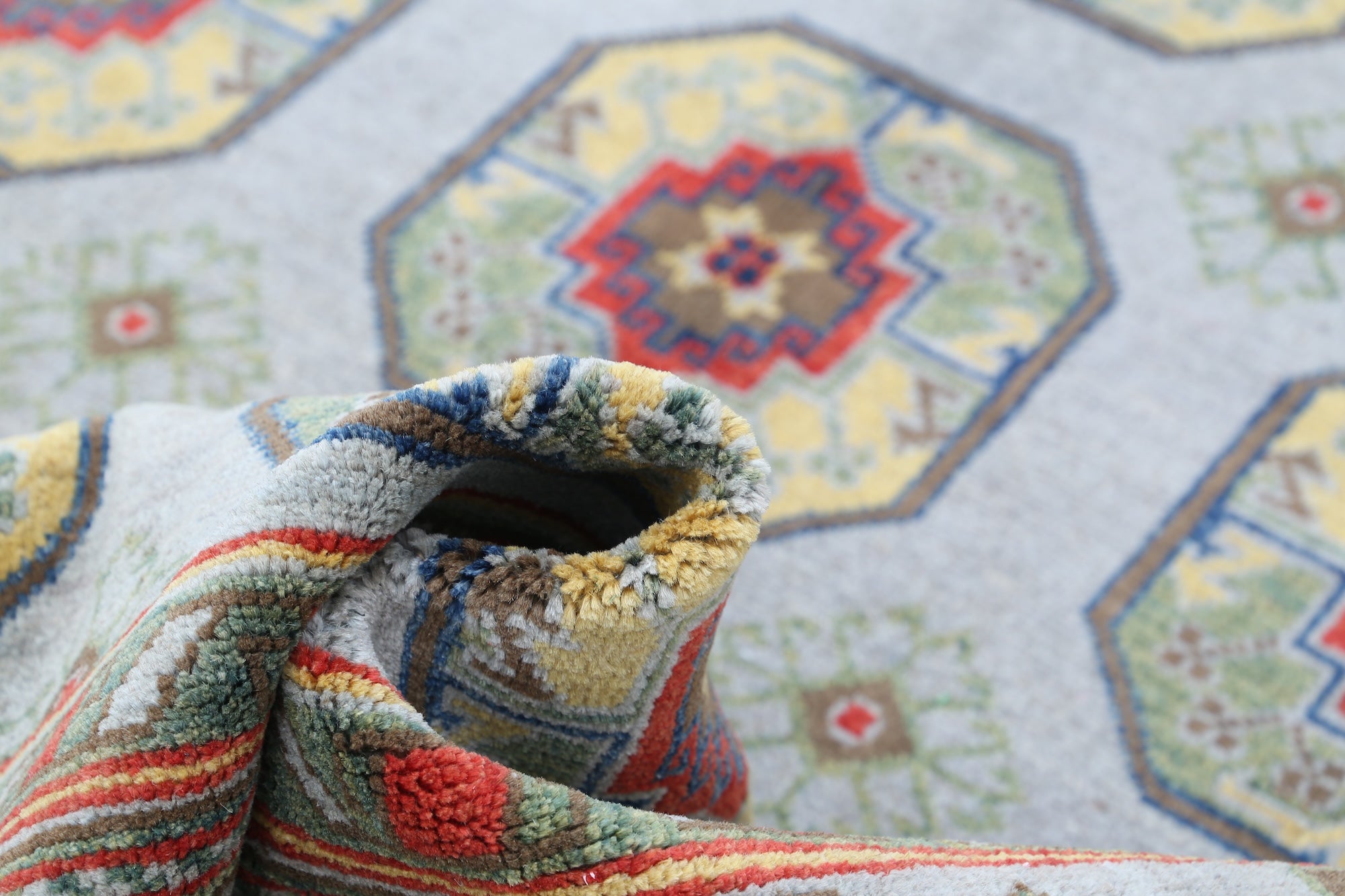 This artisan-crafted Afghan wool rug features a striking geometric tribal pattern, renowned for its cultural heritage and timeless appeal. Expertly hand-knotted by skilled weavers, it offers superior durability, making it perfect for high-traffic areas. Its intricate design and premium wool blend traditional craftsmanship with modern elegance, adding warmth and character to any space.
