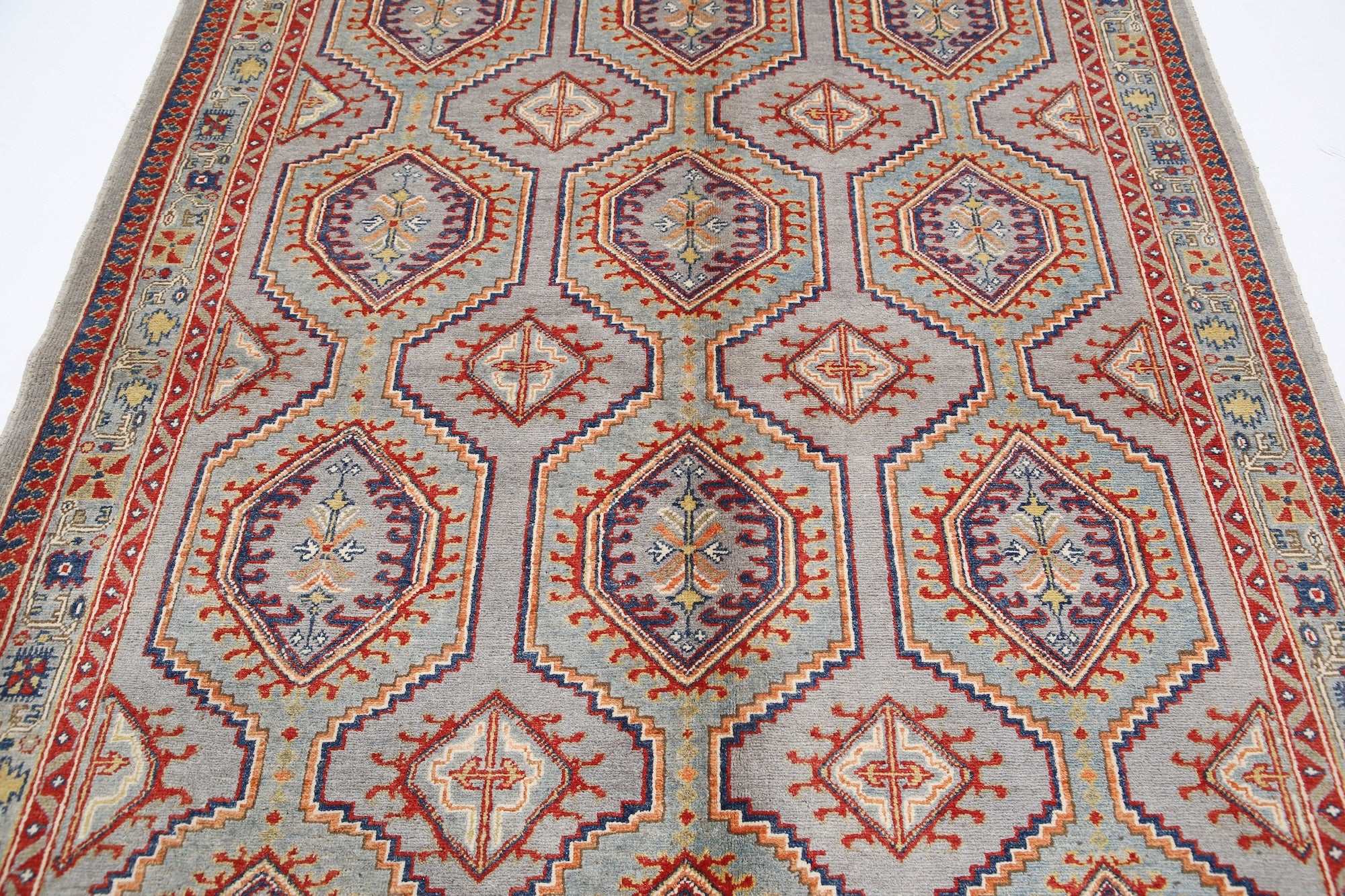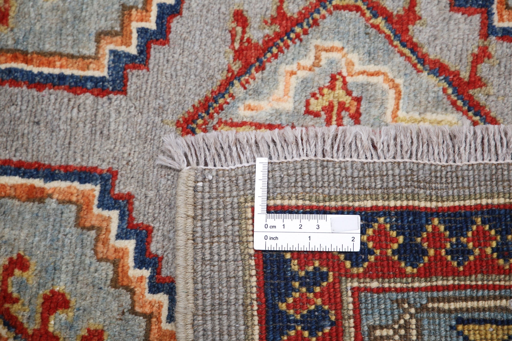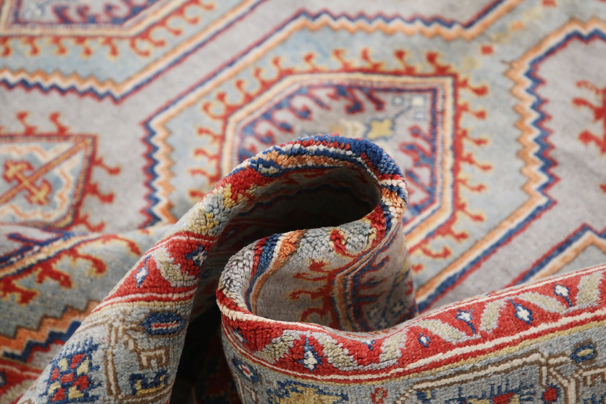 This artisan-crafted Afghan wool rug features a striking geometric tribal pattern, renowned for its cultural heritage and timeless appeal. Expertly hand-knotted by skilled weavers, it offers superior durability, making it perfect for high-traffic areas. Its intricate design and premium wool blend traditional craftsmanship with modern elegance, adding warmth and character to any space.