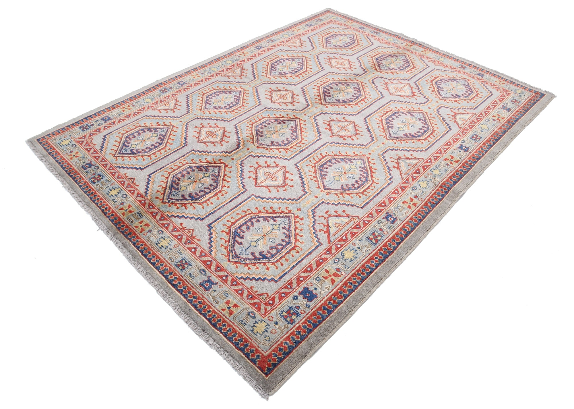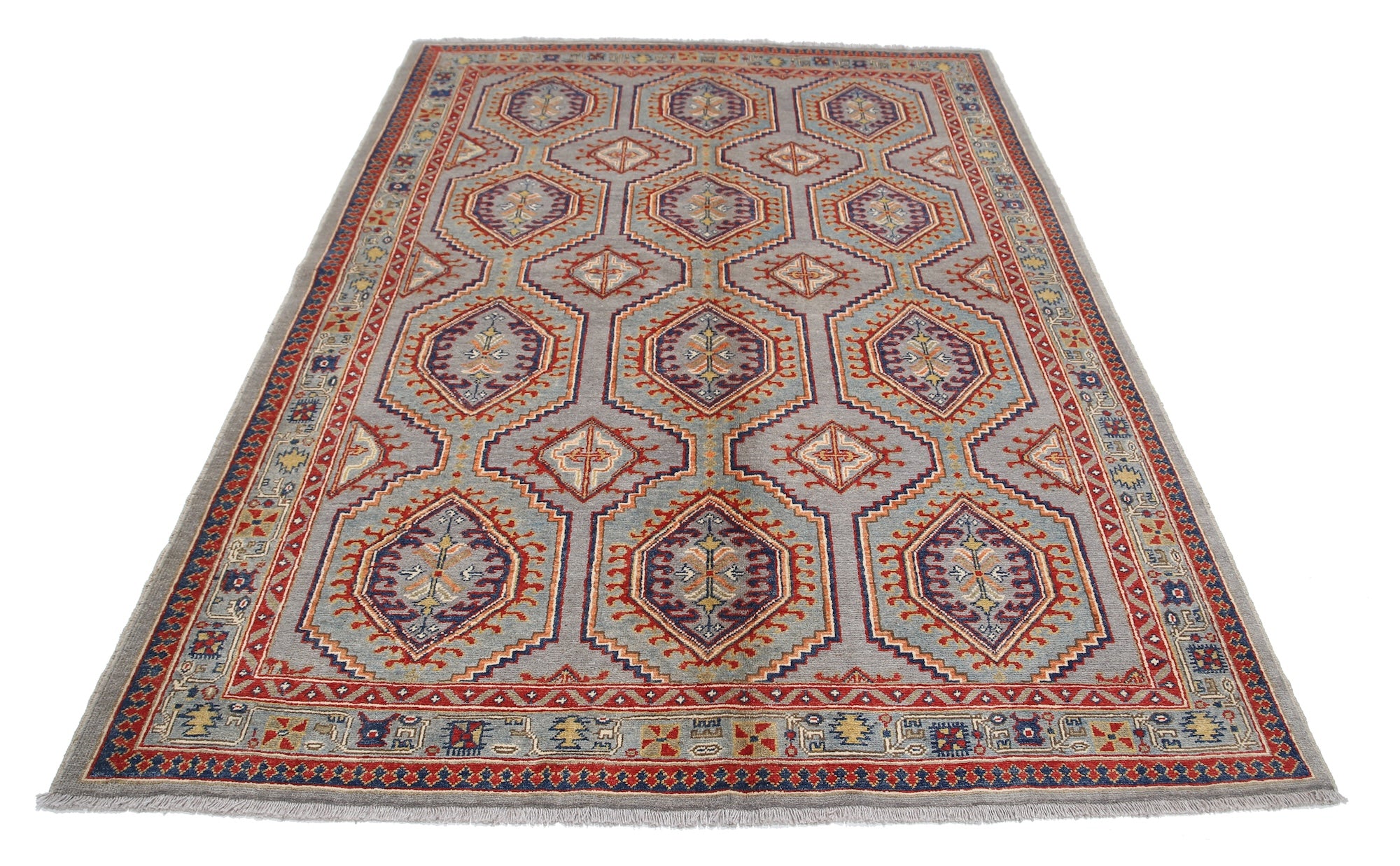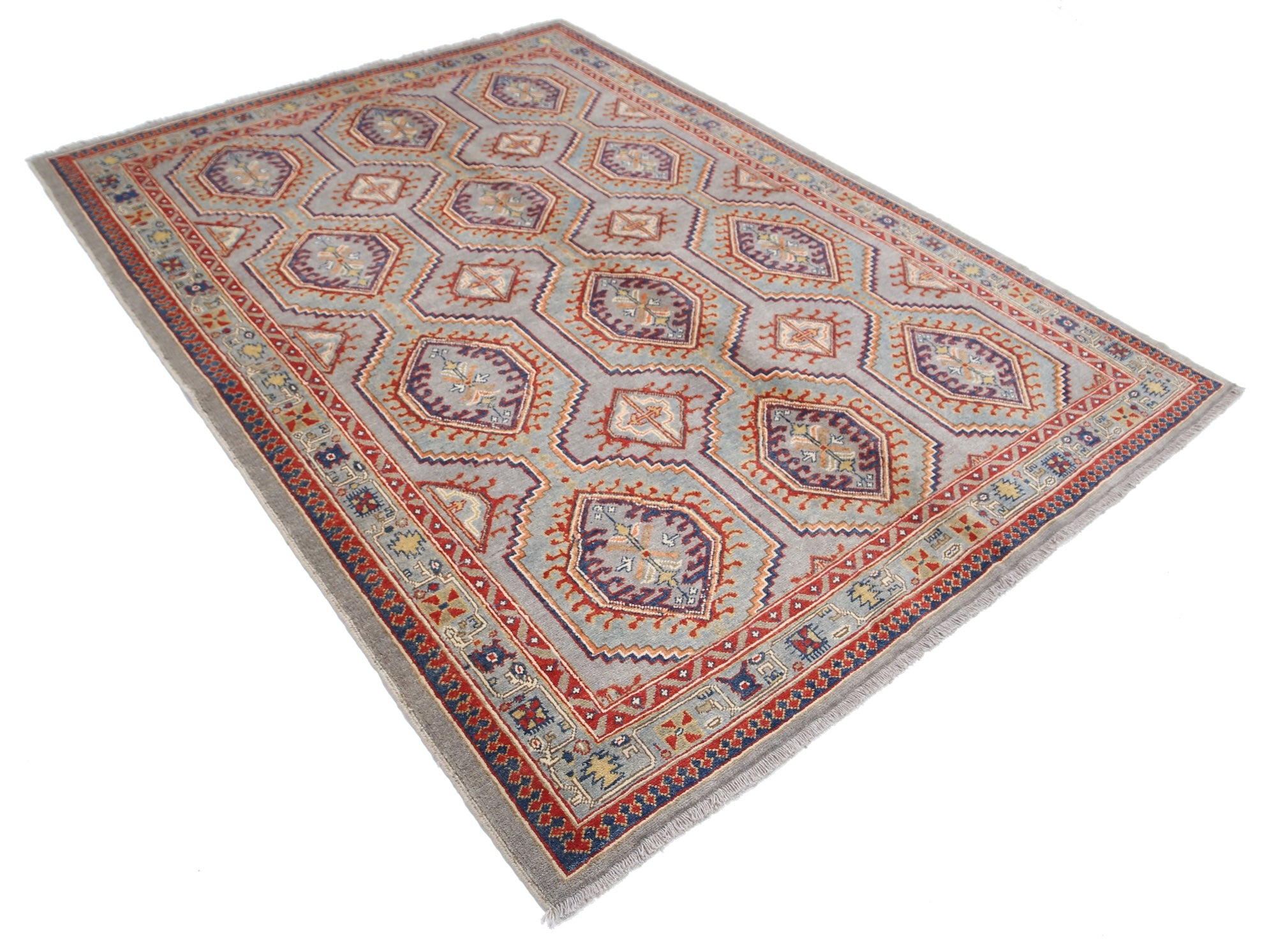 This artisan-crafted Afghan wool rug features a striking geometric tribal pattern, renowned for its cultural heritage and timeless appeal. Expertly hand-knotted by skilled weavers, it offers superior durability, making it perfect for high-traffic areas. Its intricate design and premium wool blend traditional craftsmanship with modern elegance, adding warmth and character to any space.