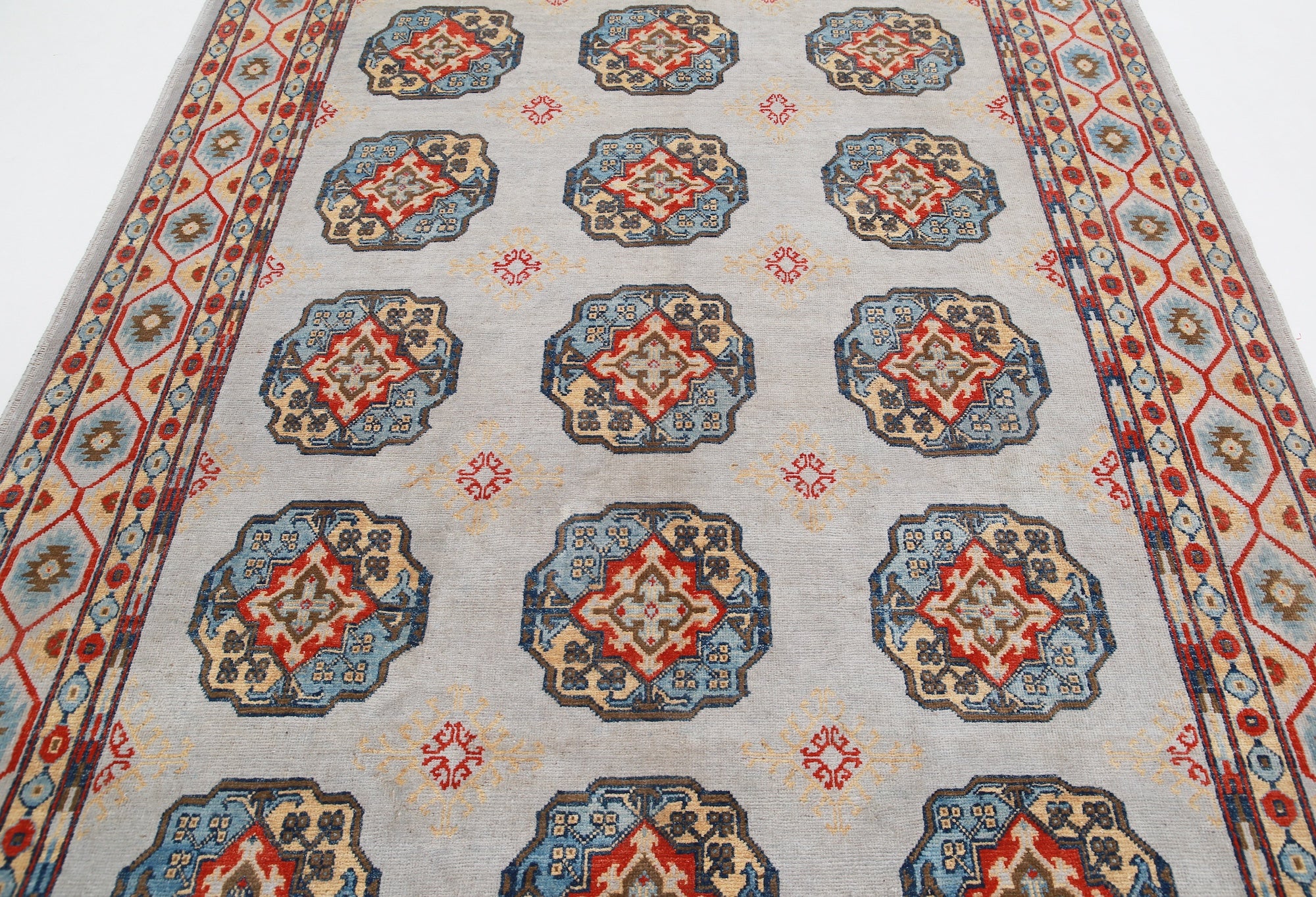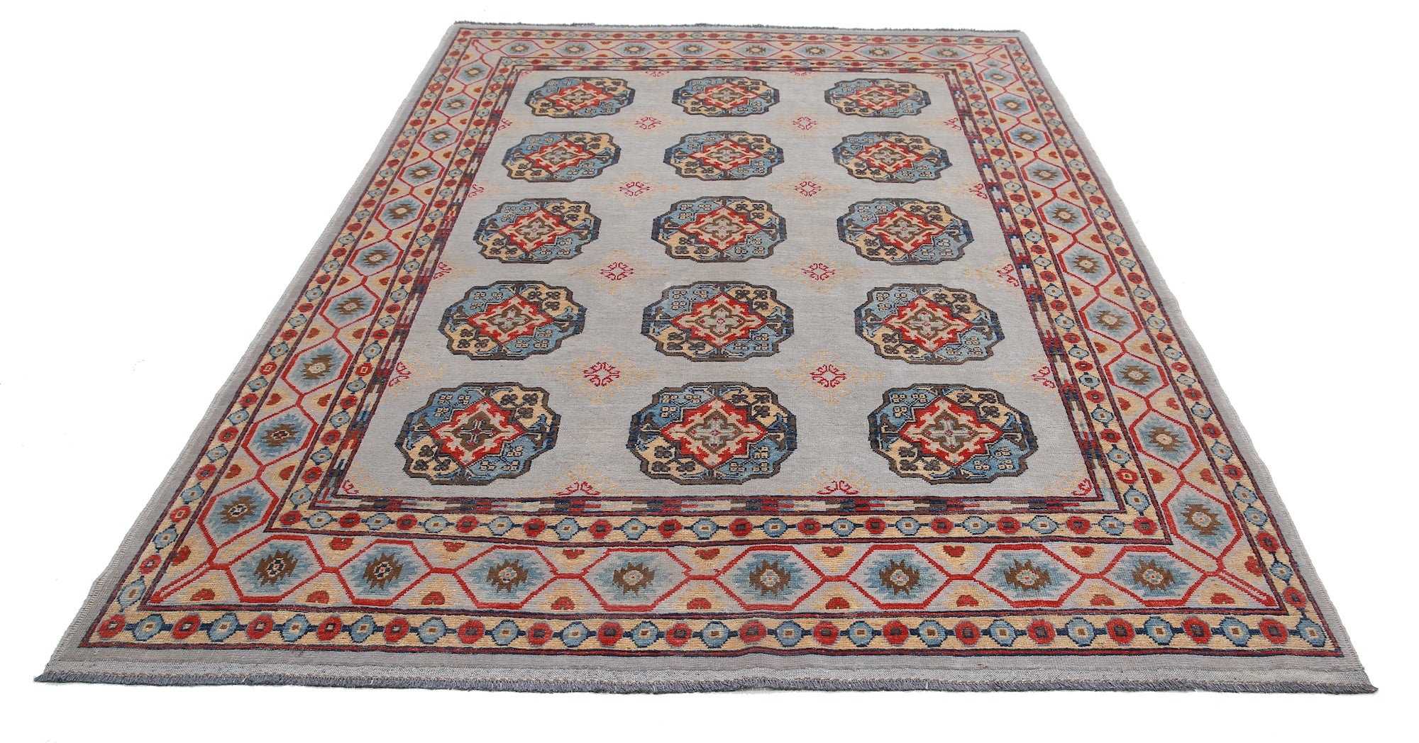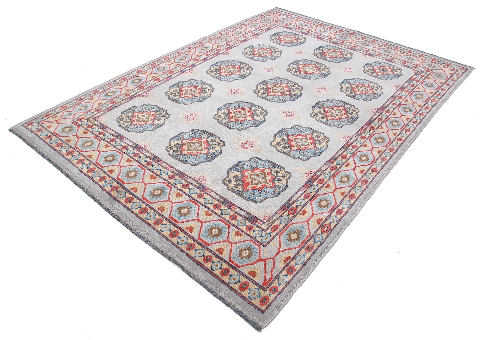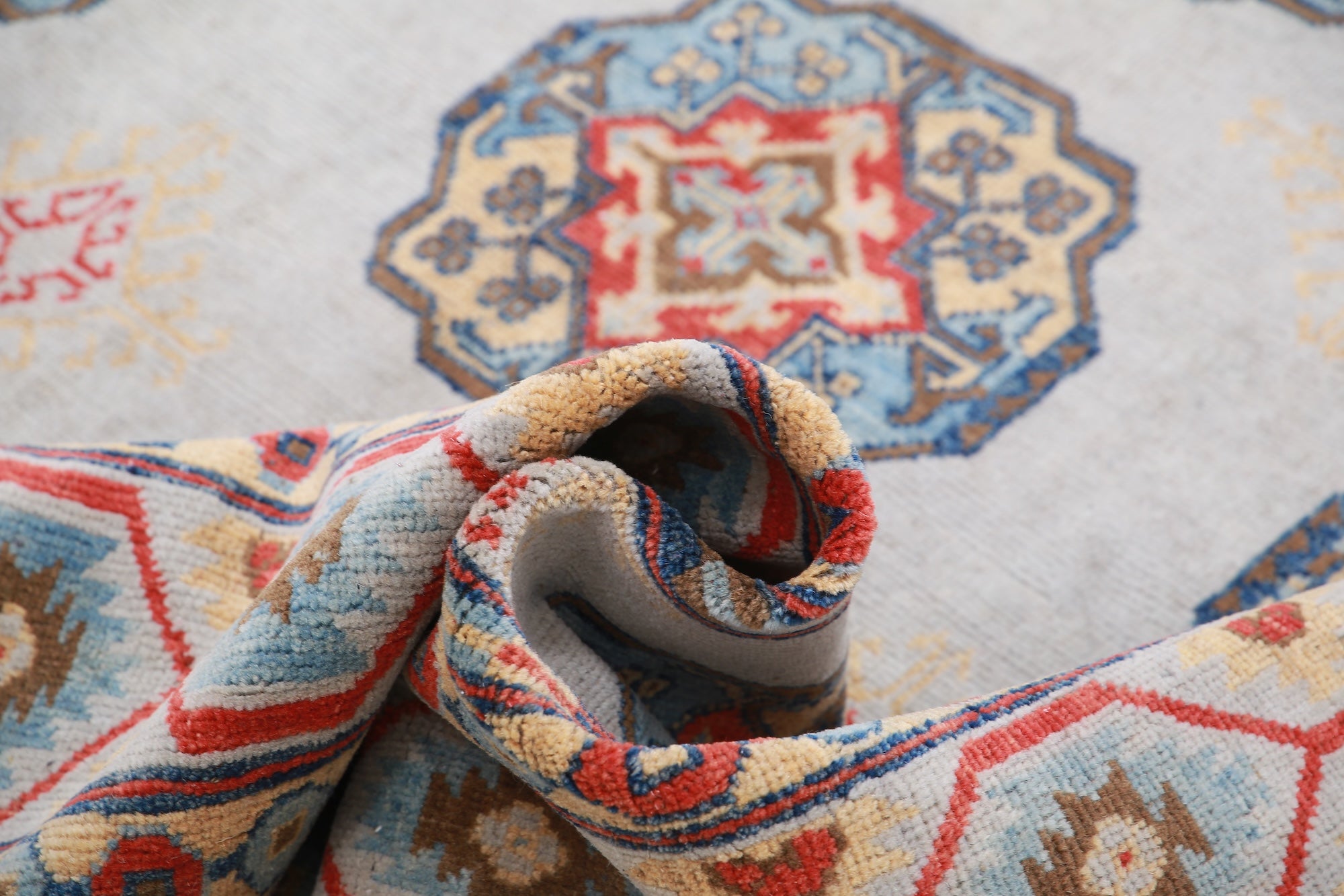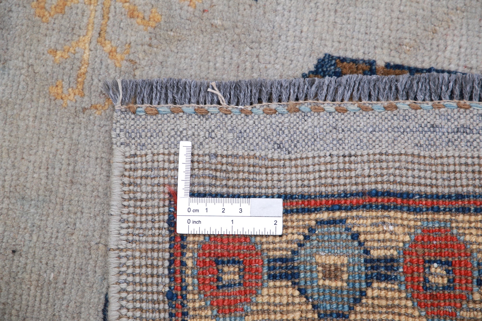 This artisan-crafted Afghan wool rug features a striking geometric tribal pattern, renowned for its cultural heritage and timeless appeal. Expertly hand-knotted by skilled weavers, it offers superior durability, making it perfect for high-traffic areas. Its intricate design and premium wool blend traditional craftsmanship with modern elegance, adding warmth and character to any space.