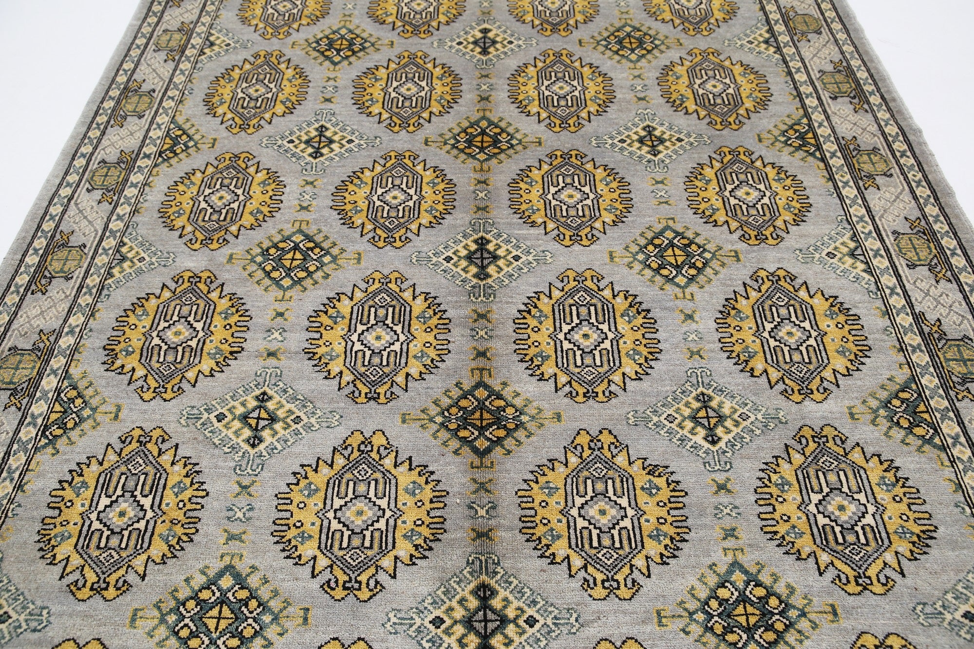 This artisan-crafted Afghan wool rug features a striking geometric tribal pattern, renowned for its cultural heritage and timeless appeal. Expertly hand-knotted by skilled weavers, it offers superior durability, making it perfect for high-traffic areas. Its intricate design and premium wool blend traditional craftsmanship with modern elegance, adding warmth and character to any space.