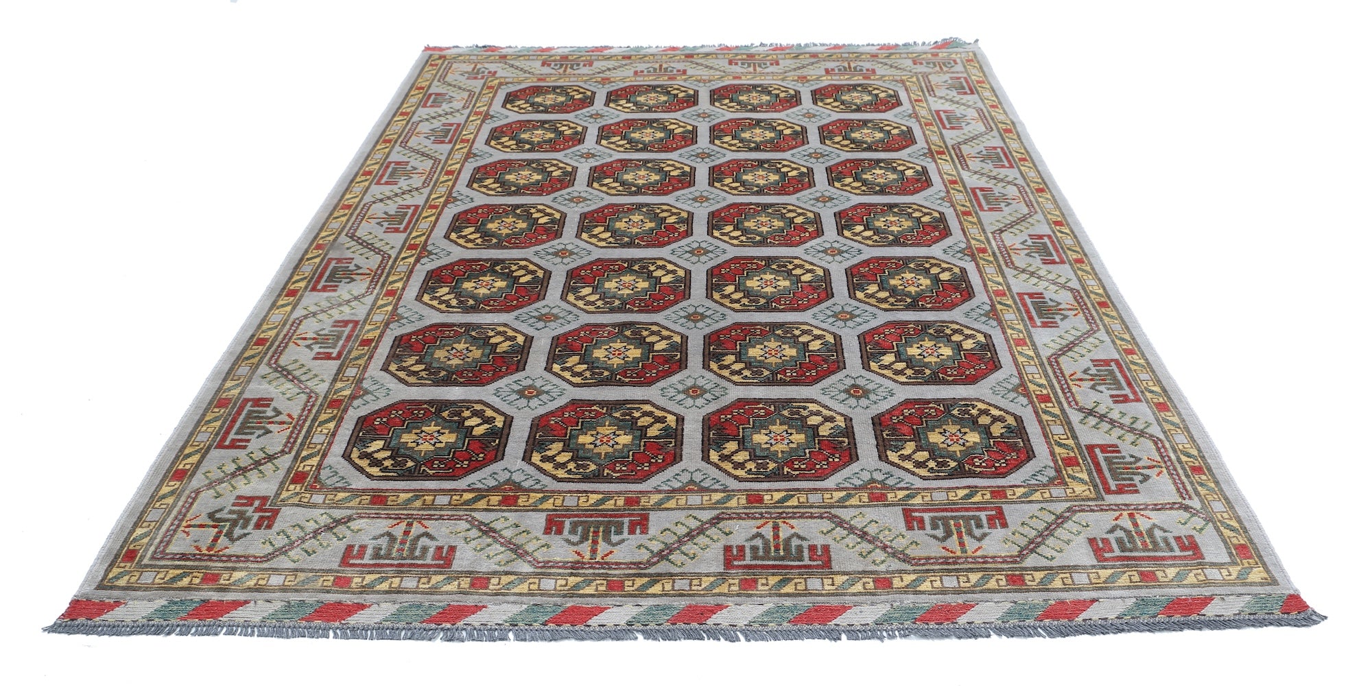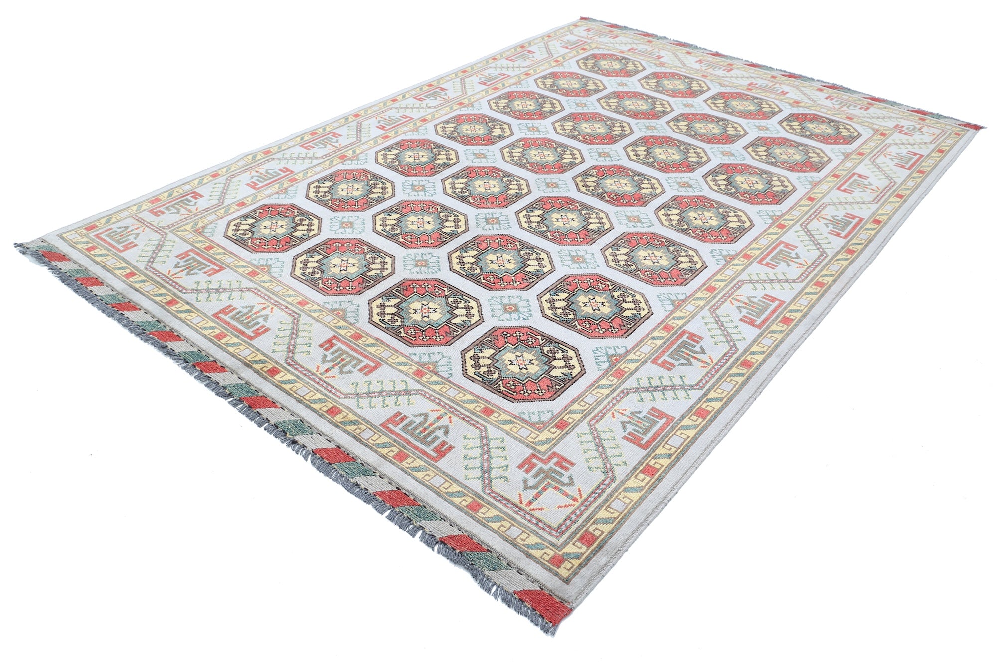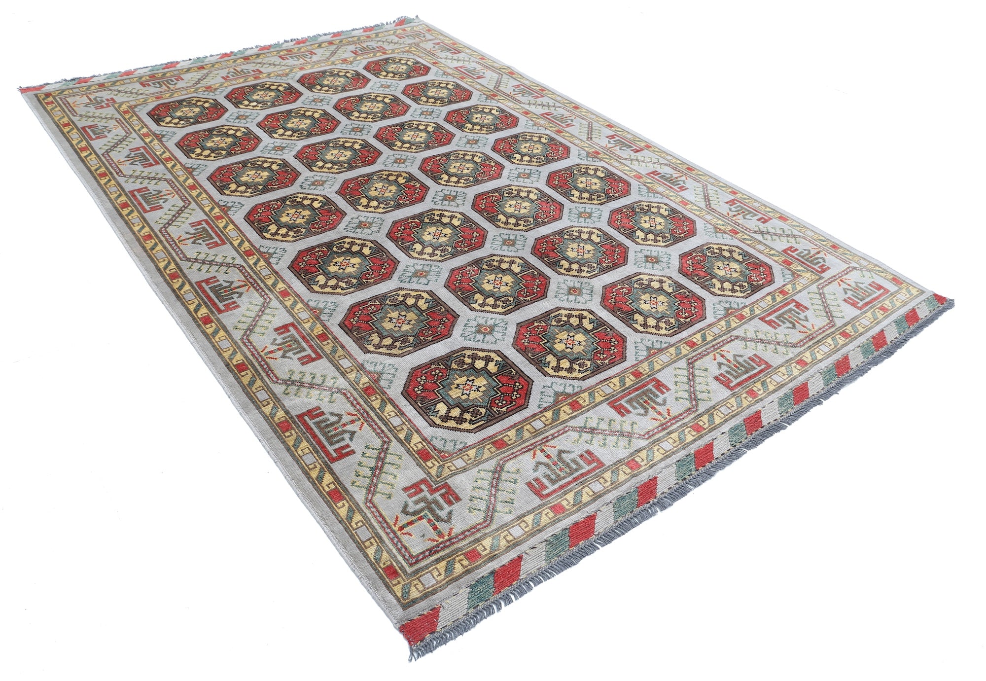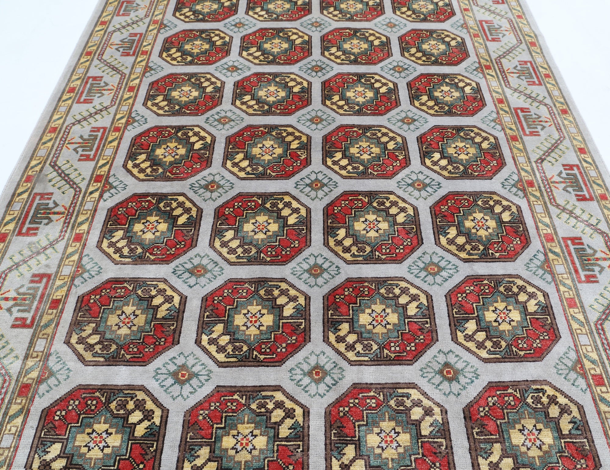 This artisan-crafted Afghan wool rug features a striking geometric tribal pattern, renowned for its cultural heritage and timeless appeal. Expertly hand-knotted by skilled weavers, it offers superior durability, making it perfect for high-traffic areas. Its intricate design and premium wool blend traditional craftsmanship with modern elegance, adding warmth and character to any space.