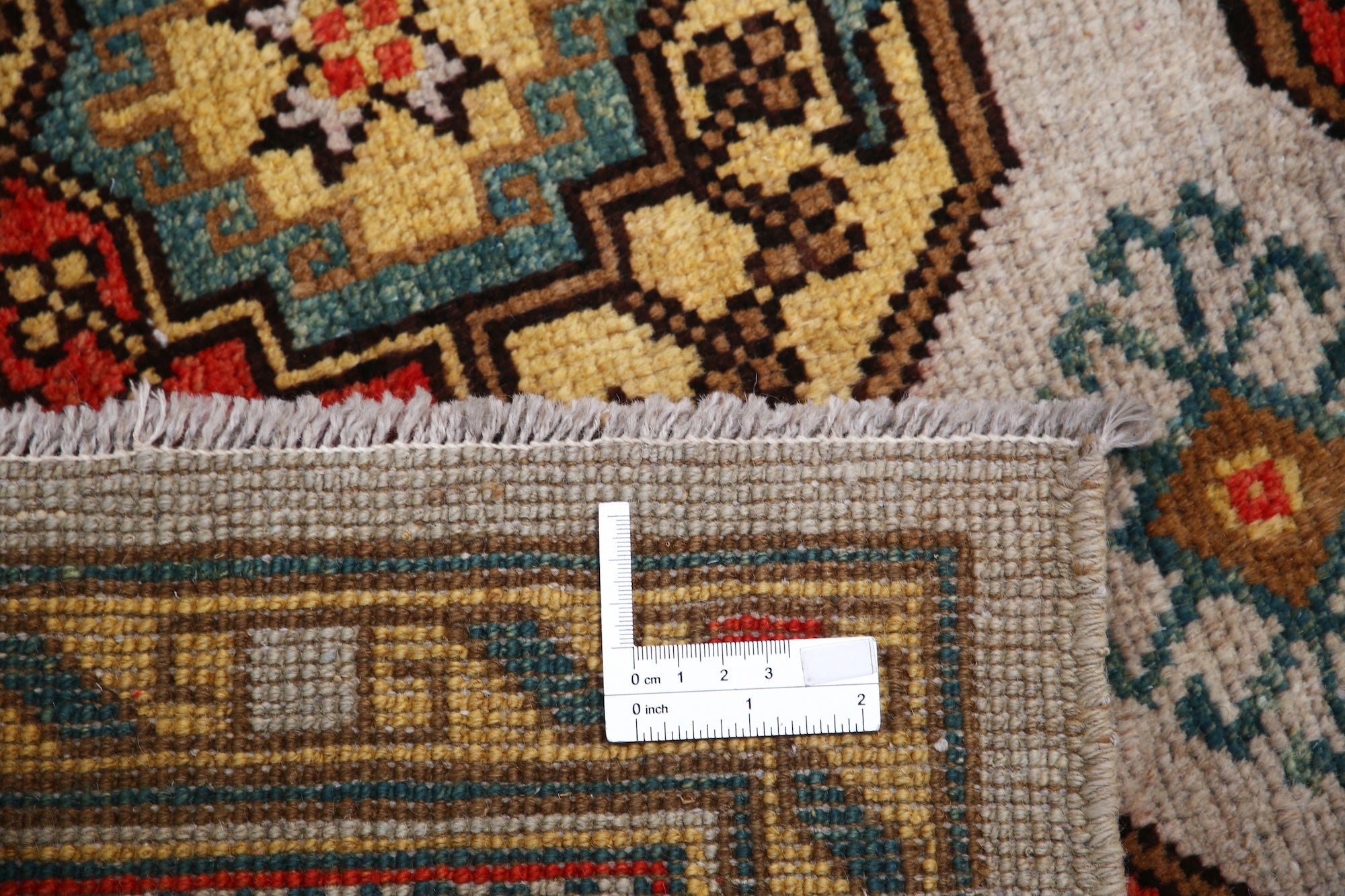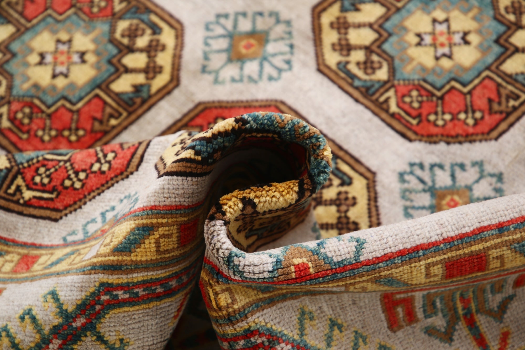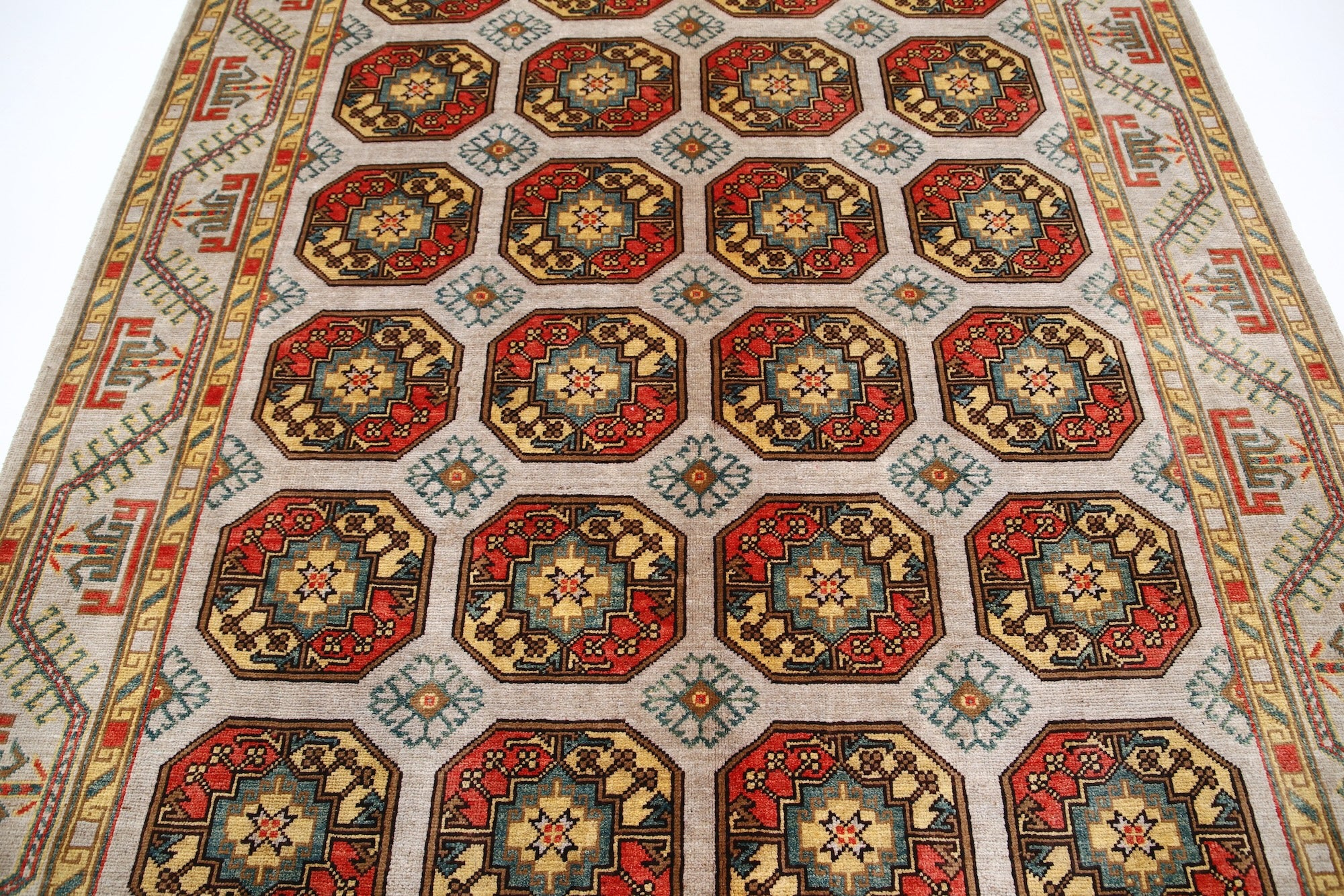This artisan-crafted Afghan wool rug features a striking geometric tribal pattern, renowned for its cultural heritage and timeless appeal. Expertly hand-knotted by skilled weavers, it offers superior durability, making it perfect for high-traffic areas. Its intricate design and premium wool blend traditional craftsmanship with modern elegance, adding warmth and character to any space.
