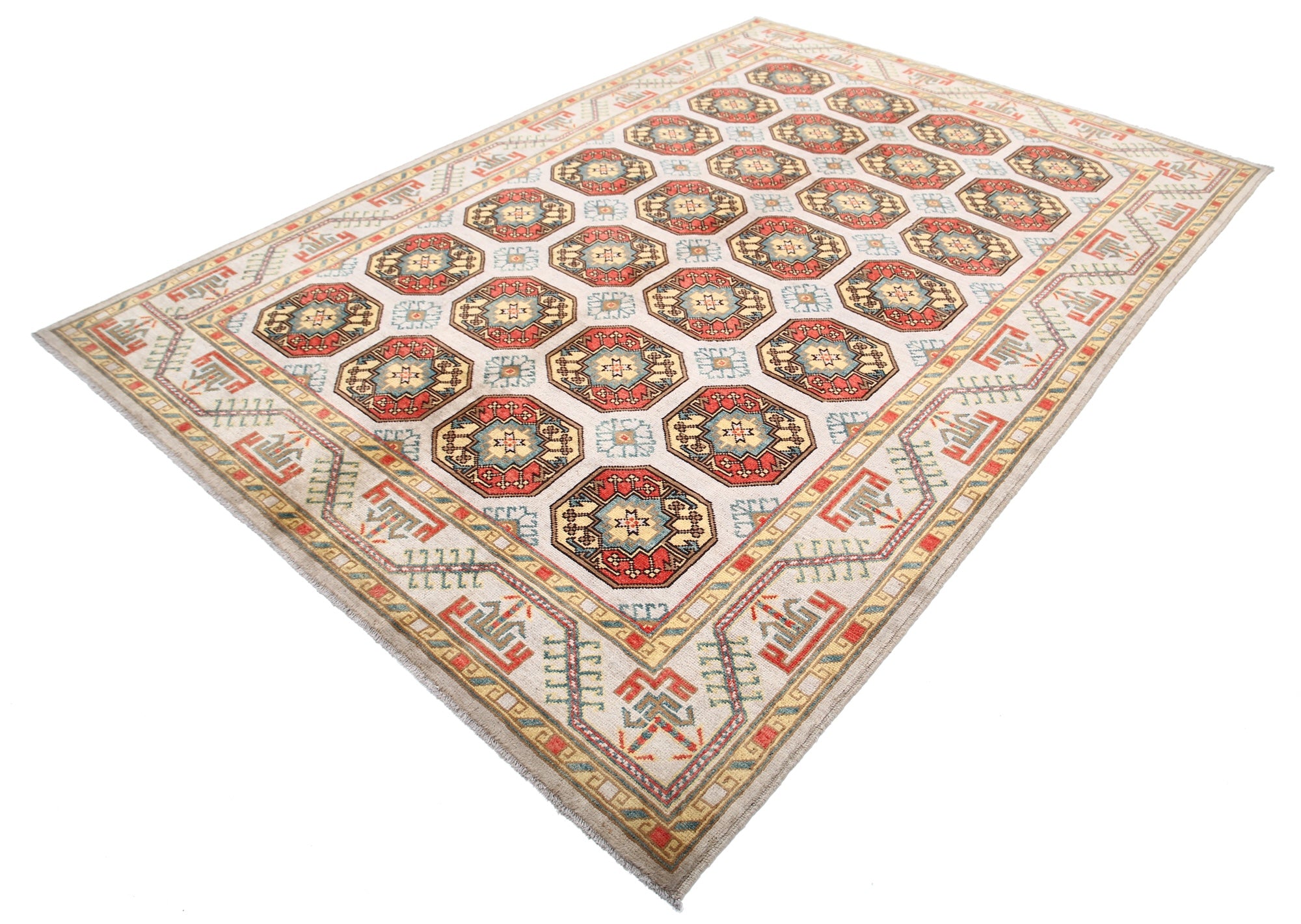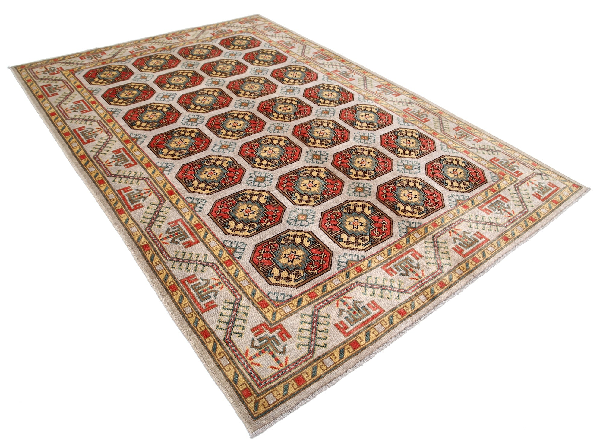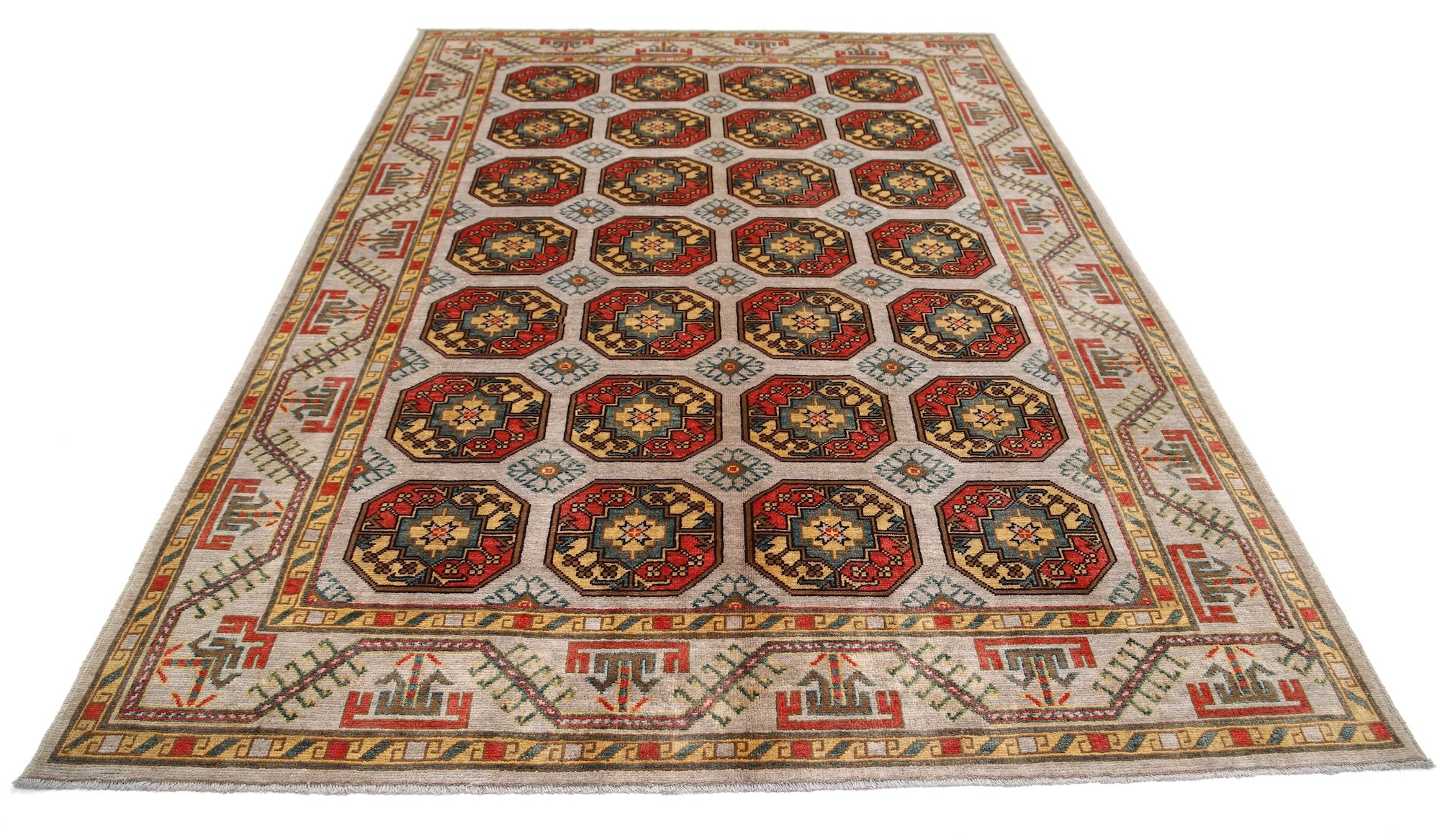 This artisan-crafted Afghan wool rug features a striking geometric tribal pattern, renowned for its cultural heritage and timeless appeal. Expertly hand-knotted by skilled weavers, it offers superior durability, making it perfect for high-traffic areas. Its intricate design and premium wool blend traditional craftsmanship with modern elegance, adding warmth and character to any space.