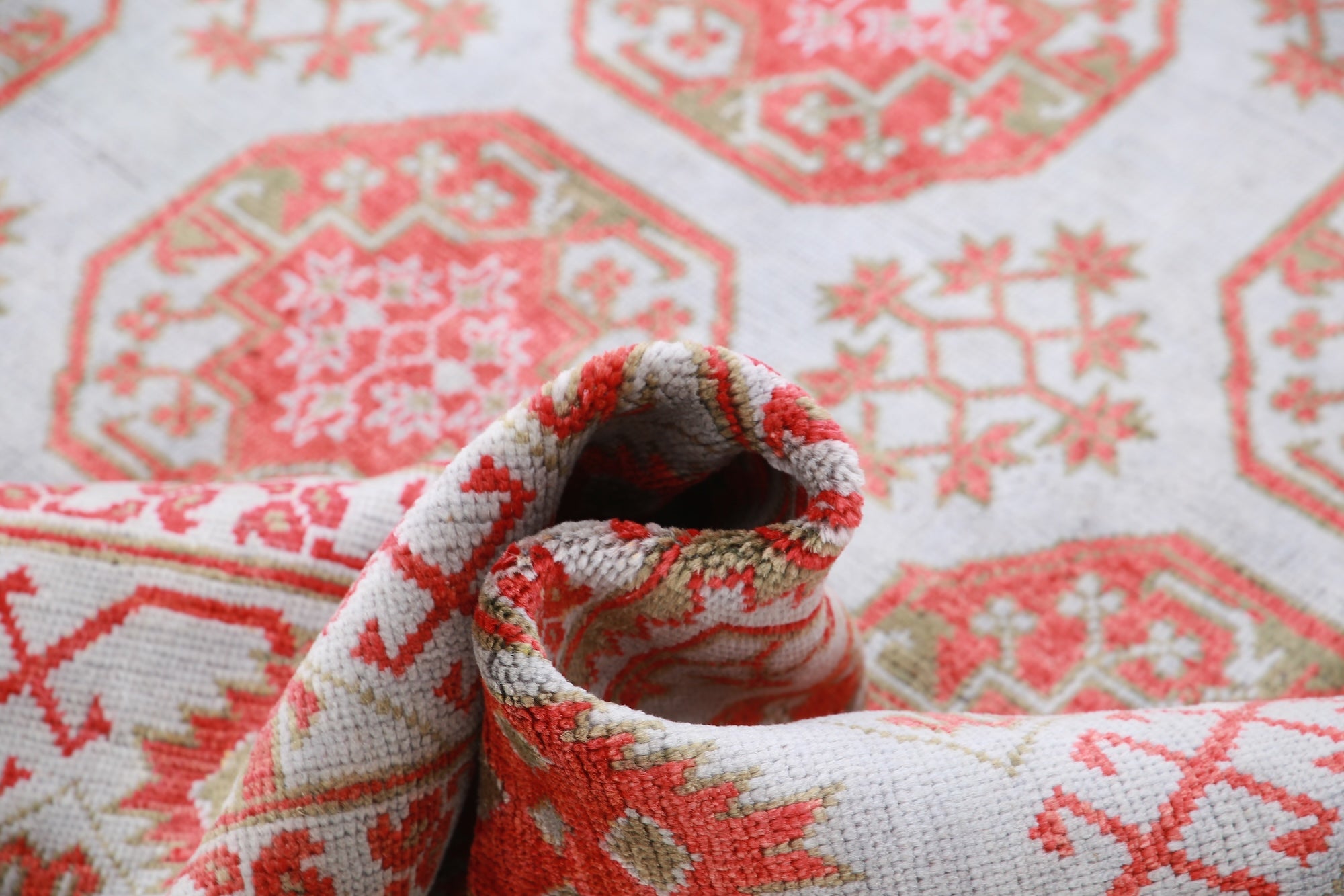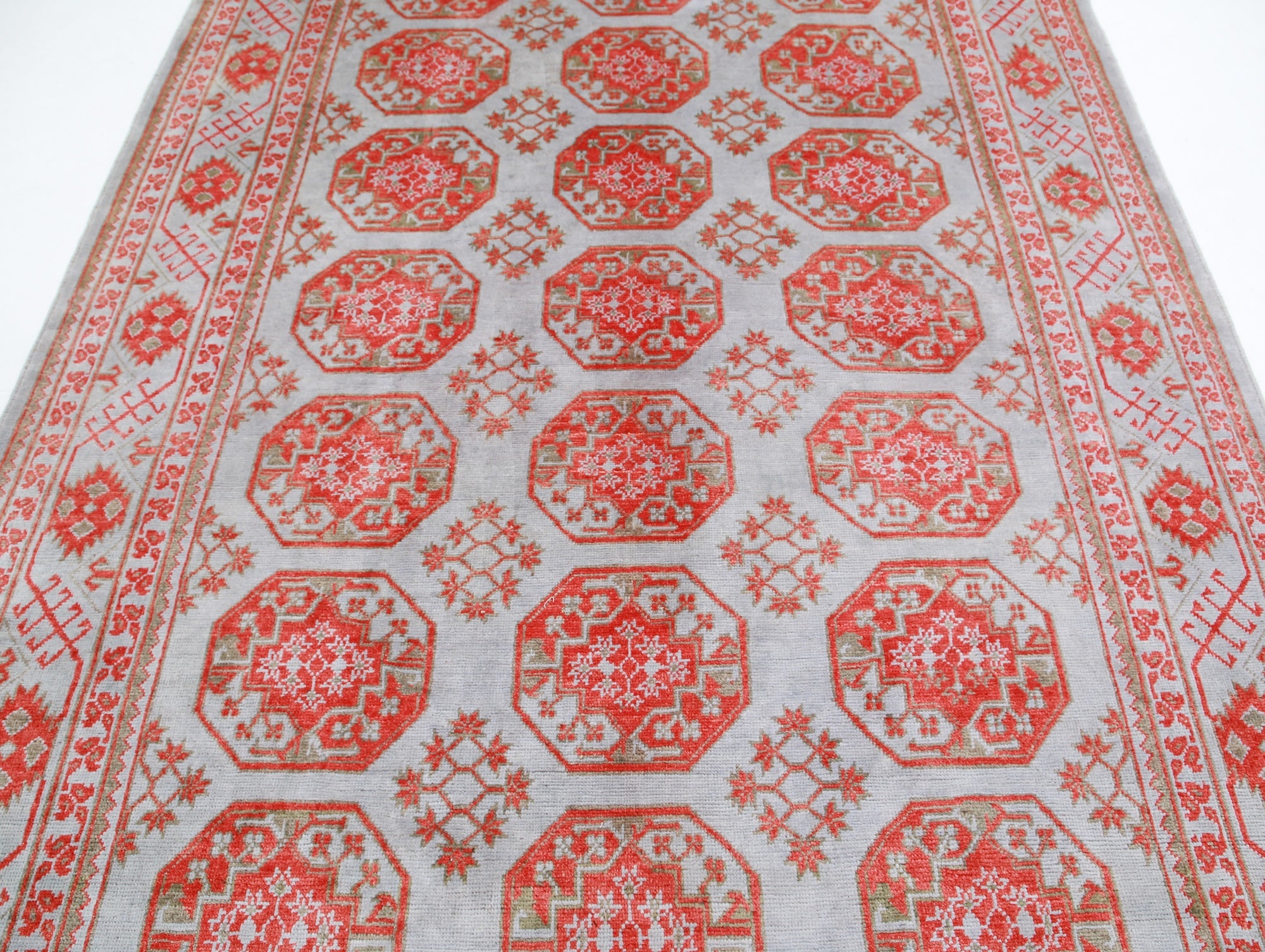This artisan-crafted Afghan wool rug features a striking geometric tribal pattern, renowned for its cultural heritage and timeless appeal. Expertly hand-knotted by skilled weavers, it offers superior durability, making it perfect for high-traffic areas. Its intricate design and premium wool blend traditional craftsmanship with modern elegance, adding warmth and character to any space.