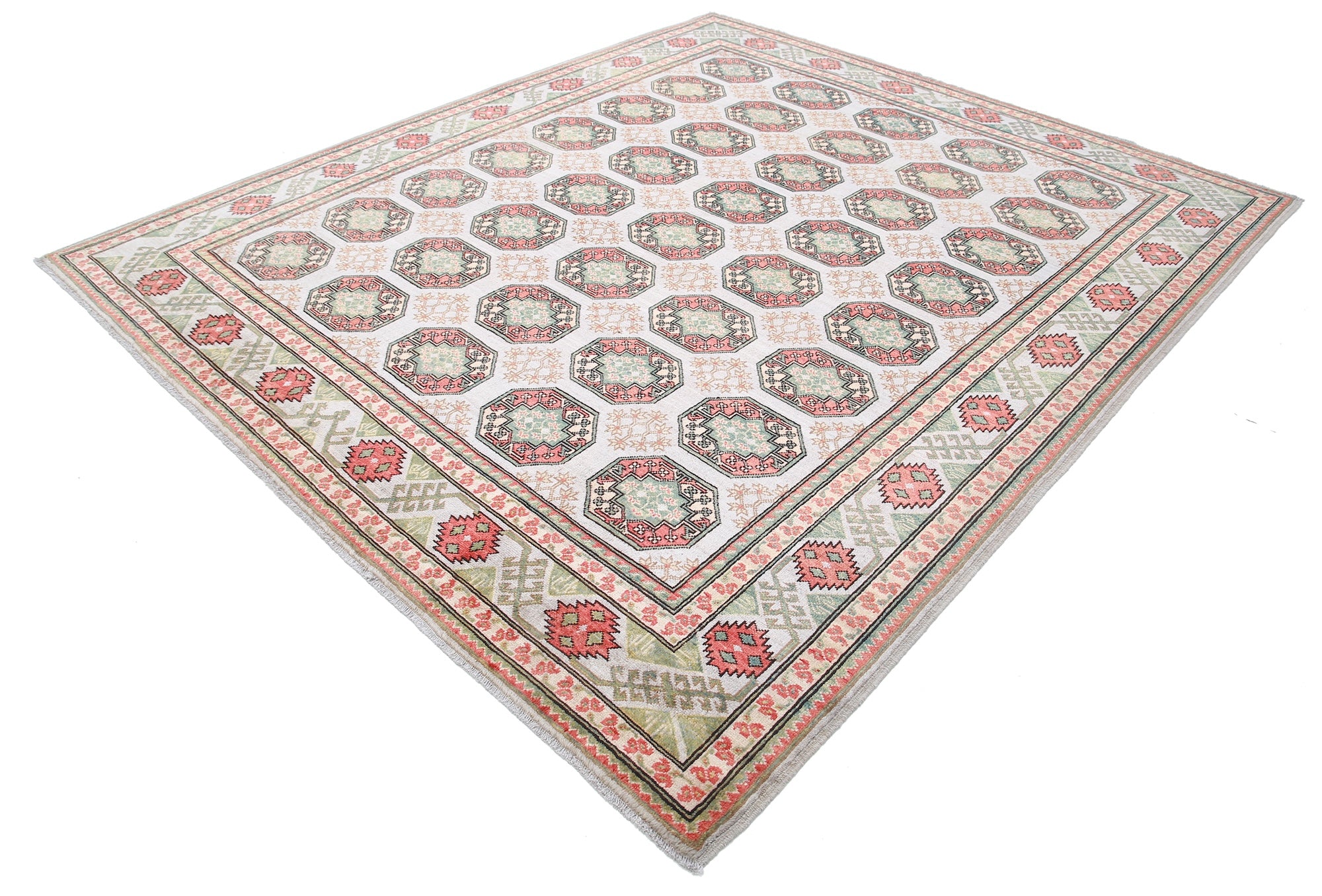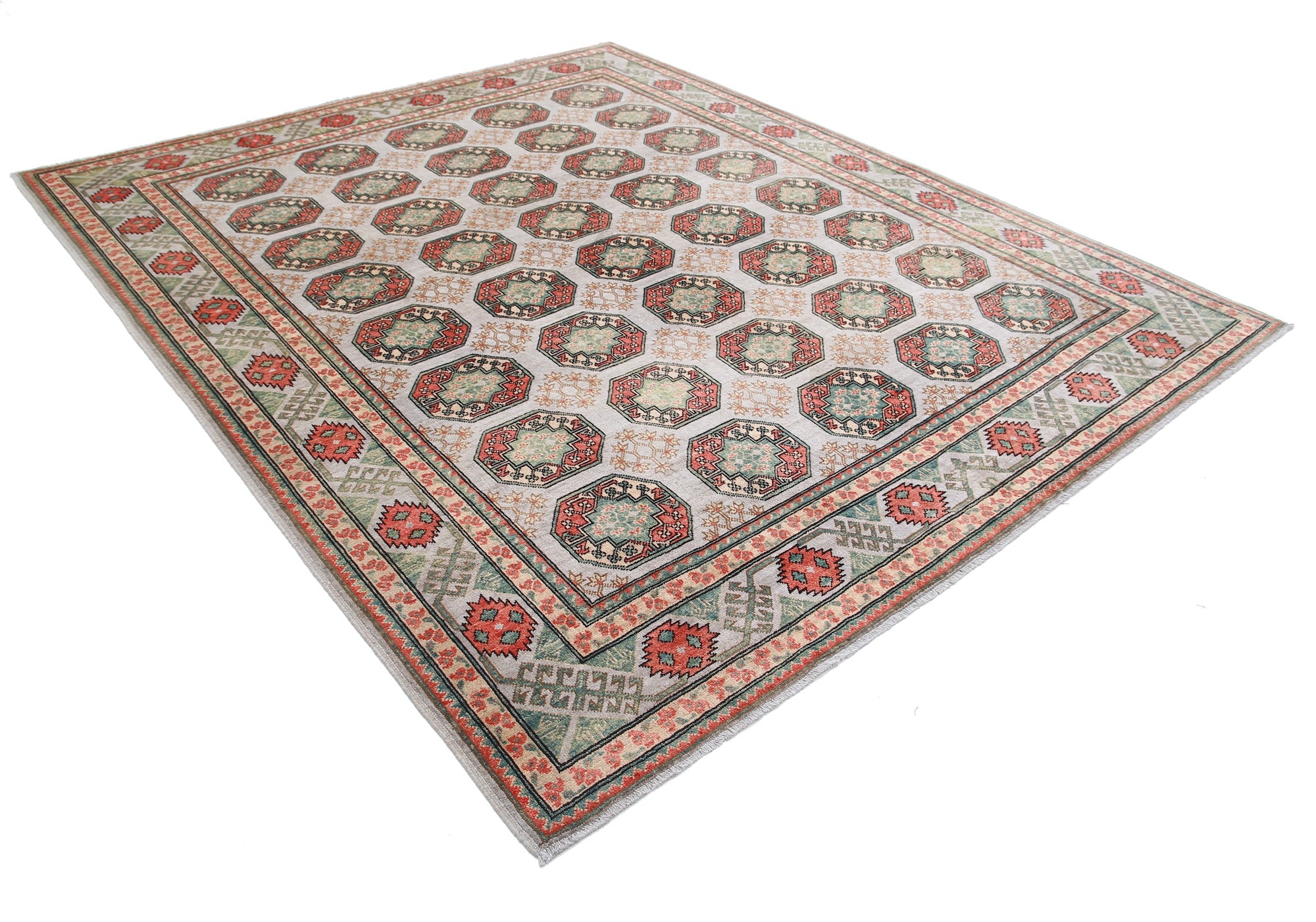 This artisan-crafted Afghan wool rug features a striking geometric tribal pattern, renowned for its cultural heritage and timeless appeal. Expertly hand-knotted by skilled weavers, it offers superior durability, making it perfect for high-traffic areas. Its intricate design and premium wool blend traditional craftsmanship with modern elegance, adding warmth and character to any space.