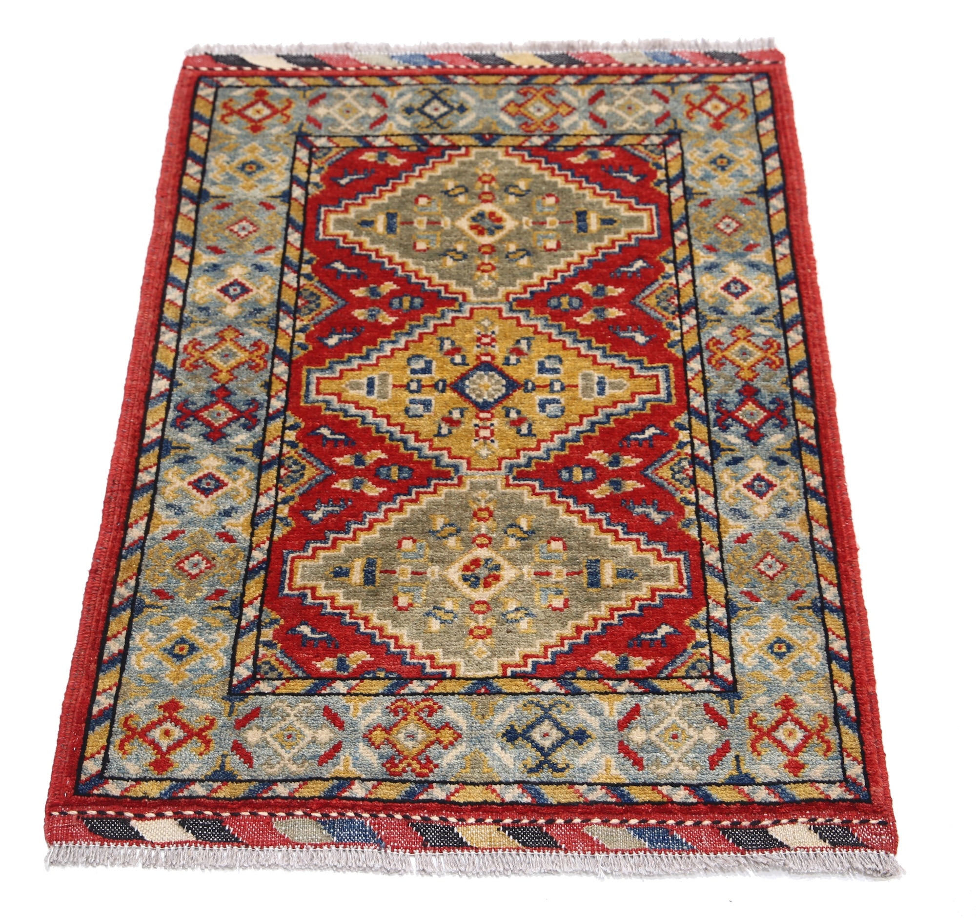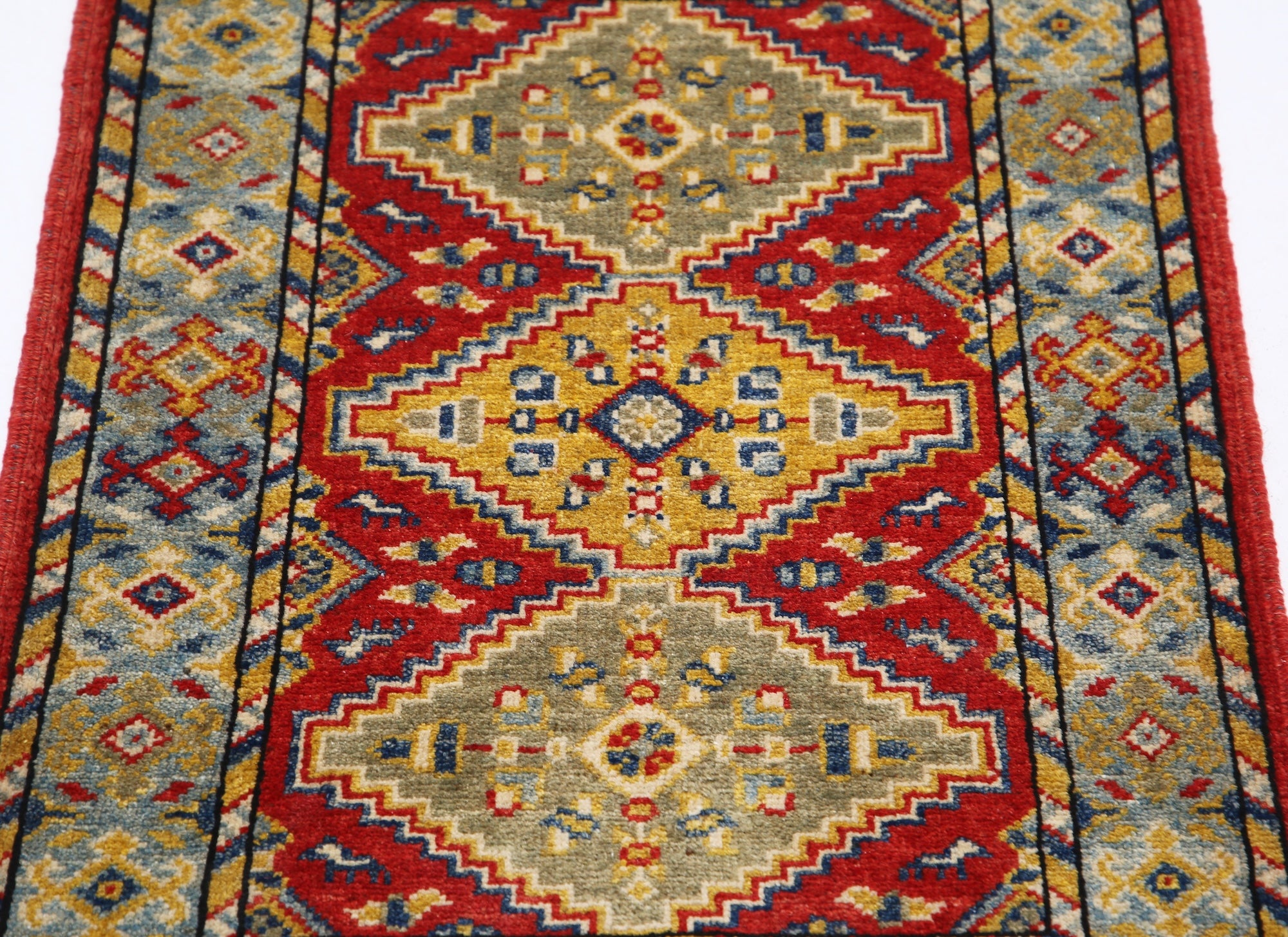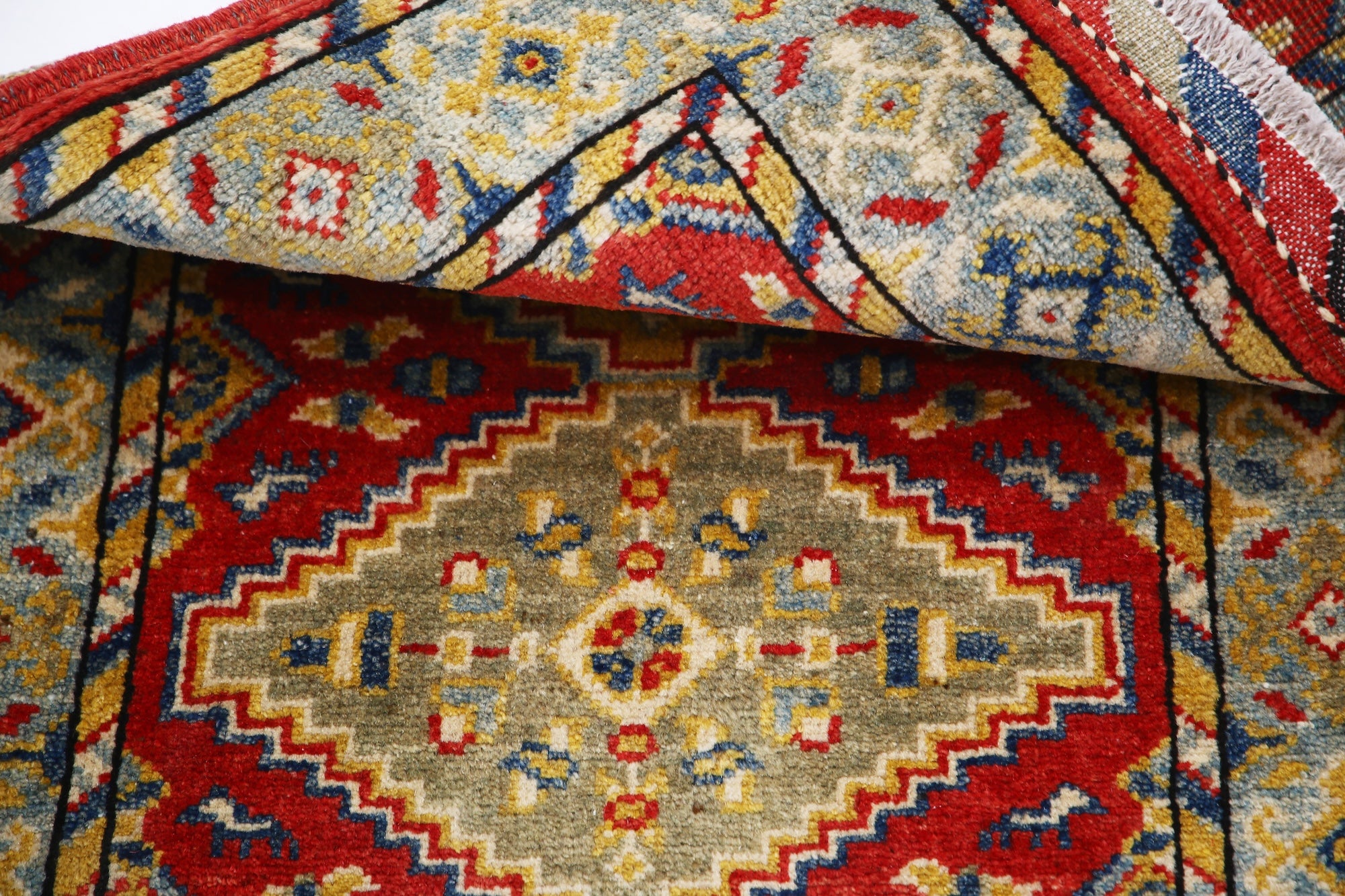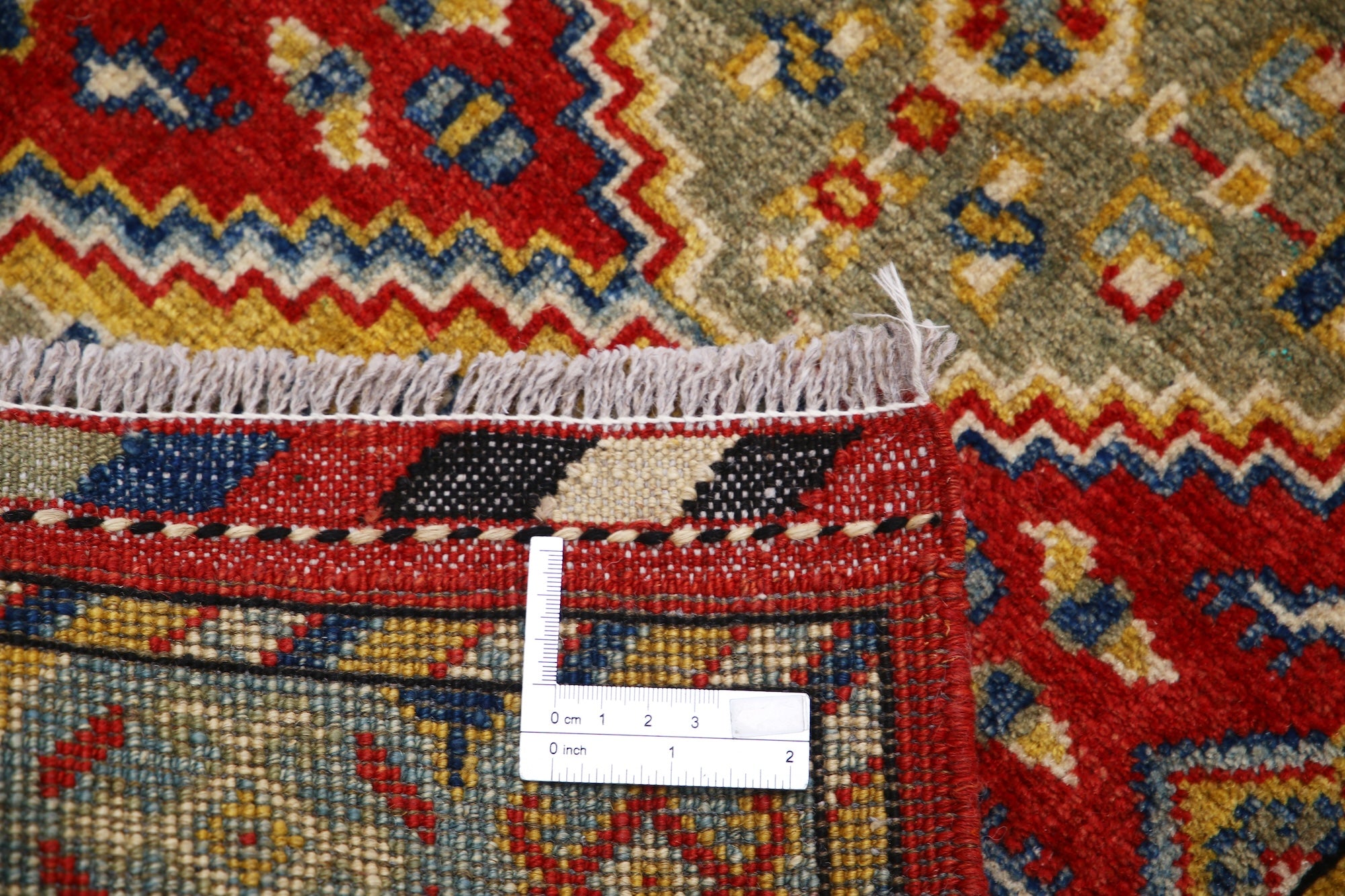 This artisan-crafted Afghan wool rug features a striking geometric tribal pattern, renowned for its cultural heritage and timeless appeal. Expertly hand-knotted by skilled weavers, it offers superior durability, making it perfect for high-traffic areas. Its intricate design and premium wool blend traditional craftsmanship with modern elegance, adding warmth and character to any space.