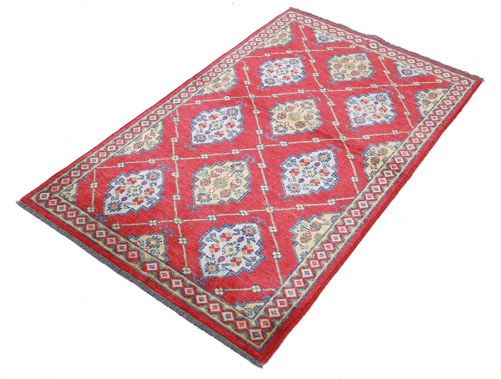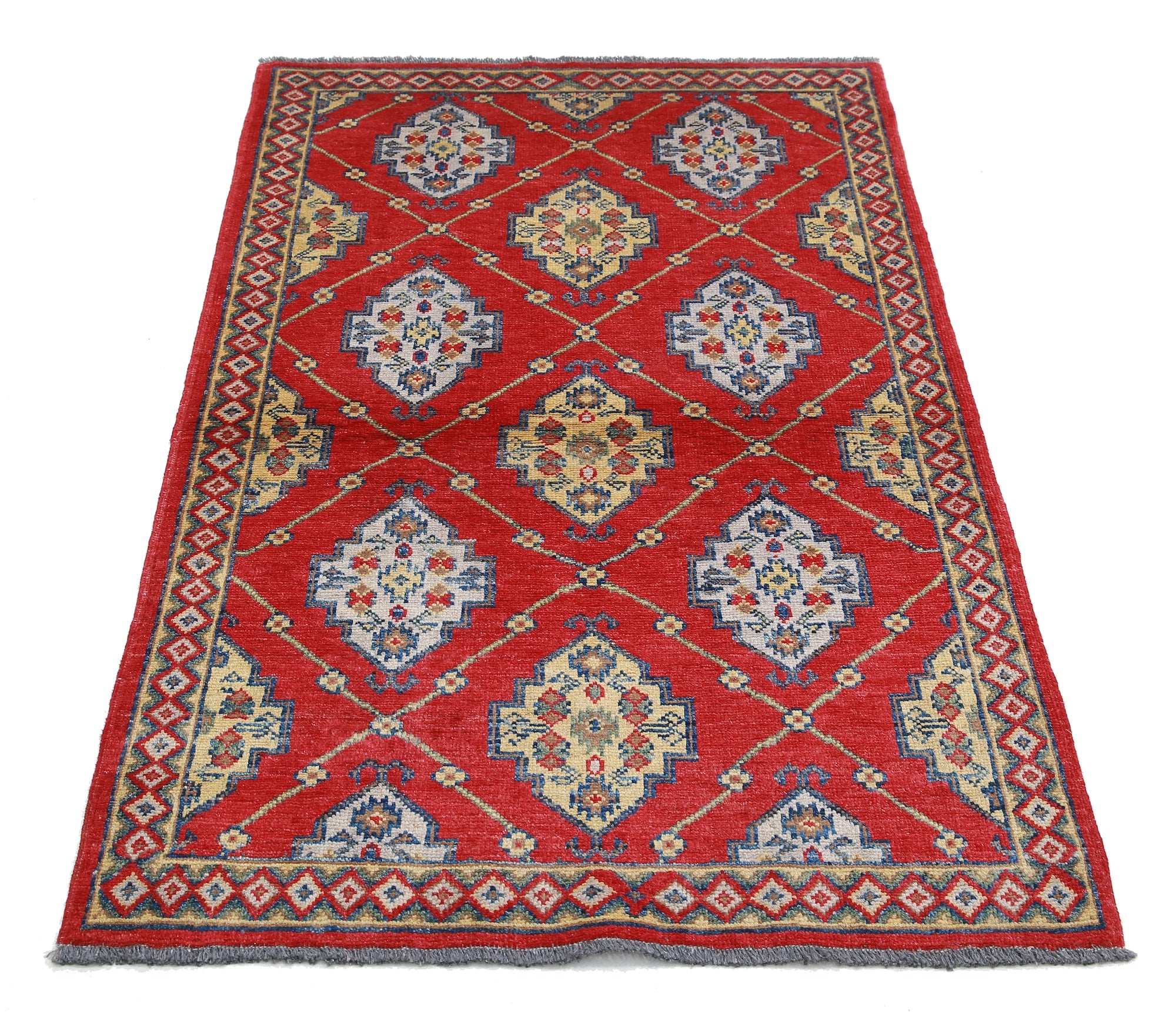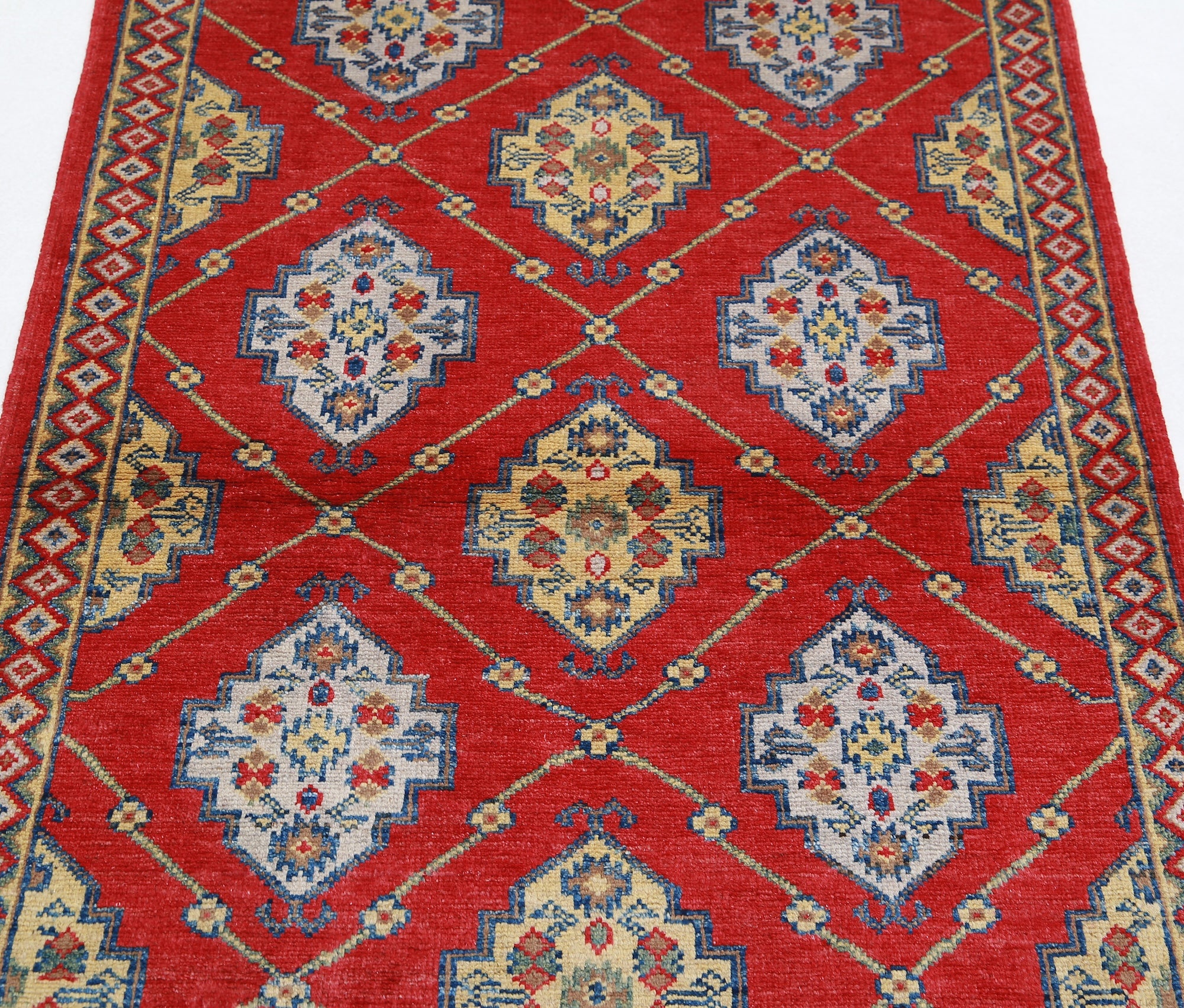 This artisan-crafted Afghan wool rug features a striking geometric tribal pattern, renowned for its cultural heritage and timeless appeal. Expertly hand-knotted by skilled weavers, it offers superior durability, making it perfect for high-traffic areas. Its intricate design and premium wool blend traditional craftsmanship with modern elegance, adding warmth and character to any space.