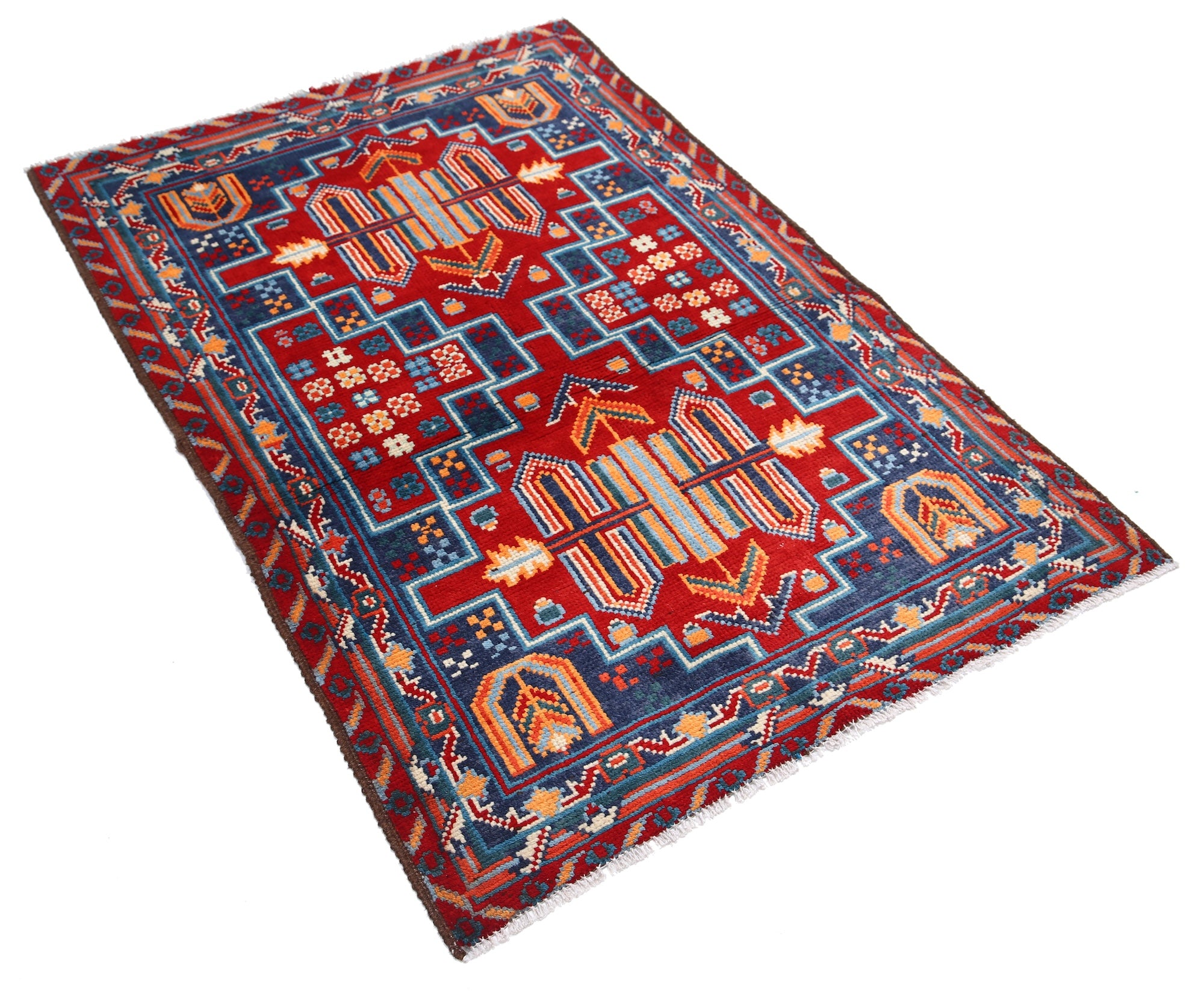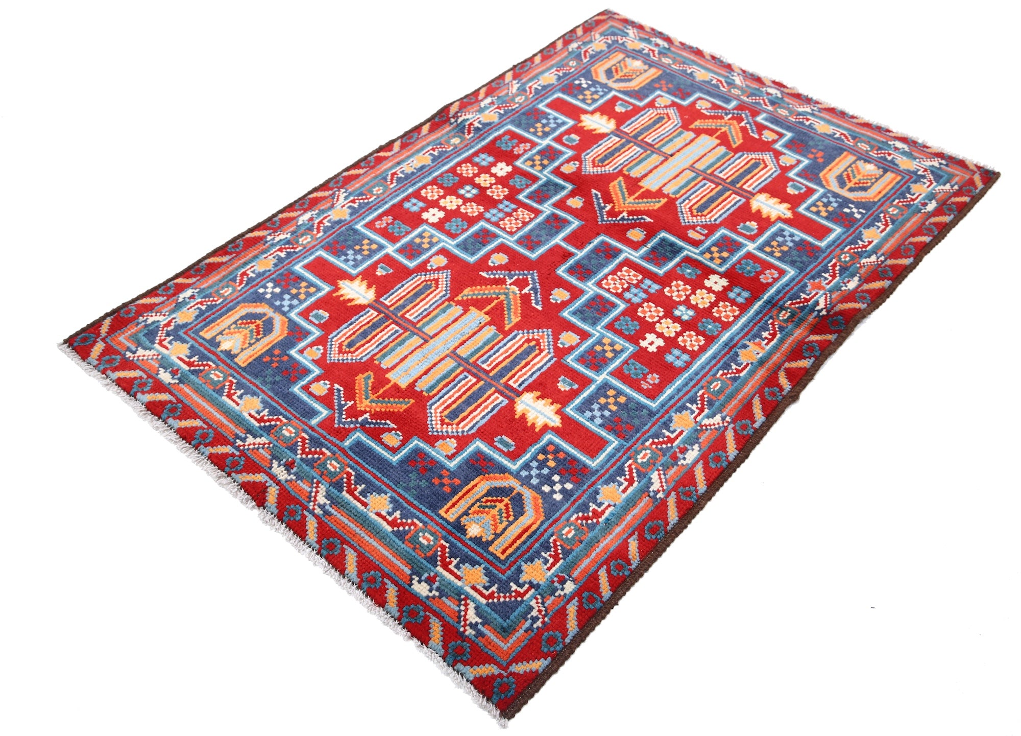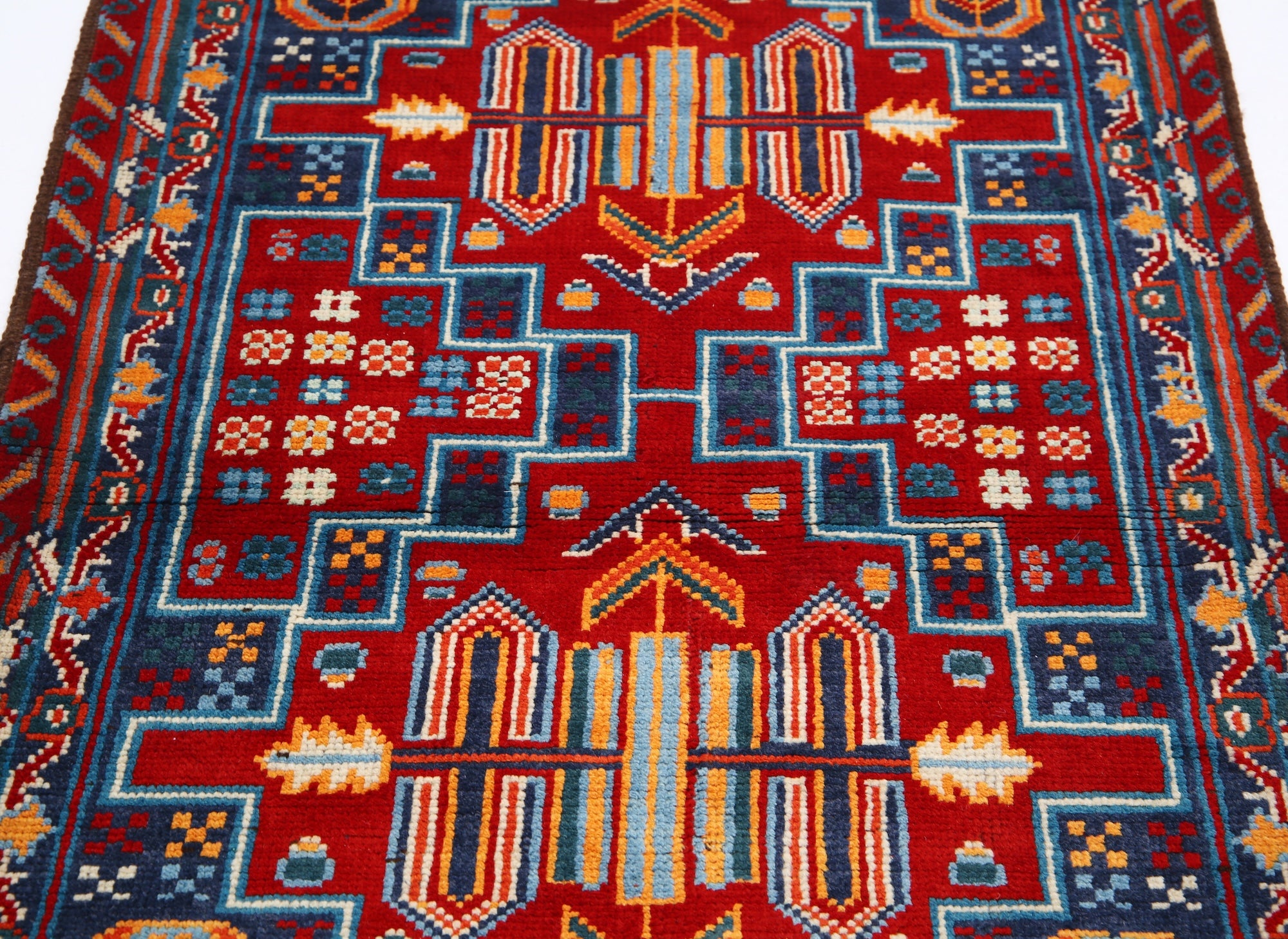 Hand-Knotted Tribal Geometric Wool Rug - 3'4" x 4'11"