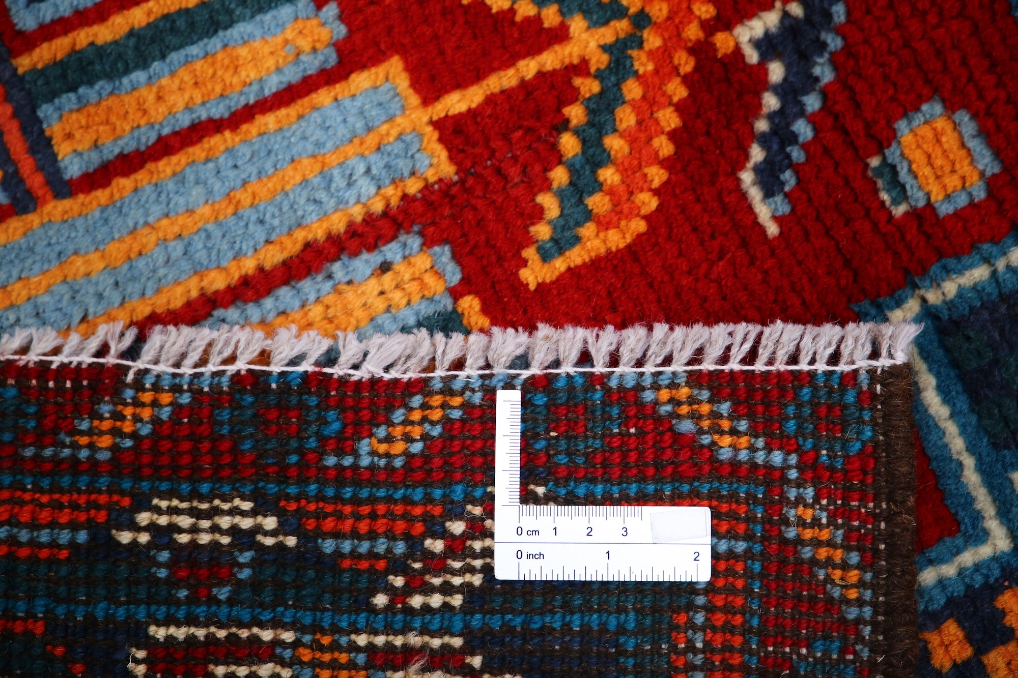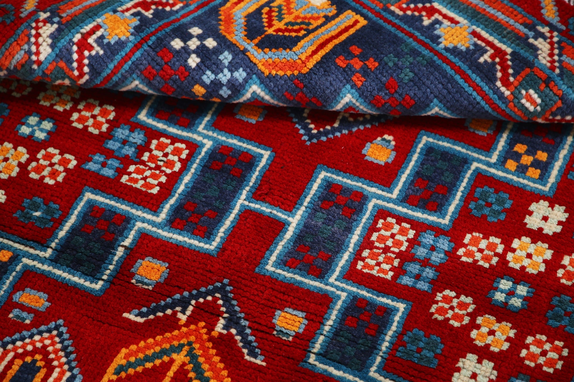 The hand-knotted Afghan wool rug features an intricate tribal geometric design, celebrated for its cultural heritage and timeless elegance. Woven by skilled artisans, it offers exceptional durability, making it ideal for high-traffic areas. Its unique patterns and premium wool blend tradition with modern sophistication, adding warmth and character to any interior.
