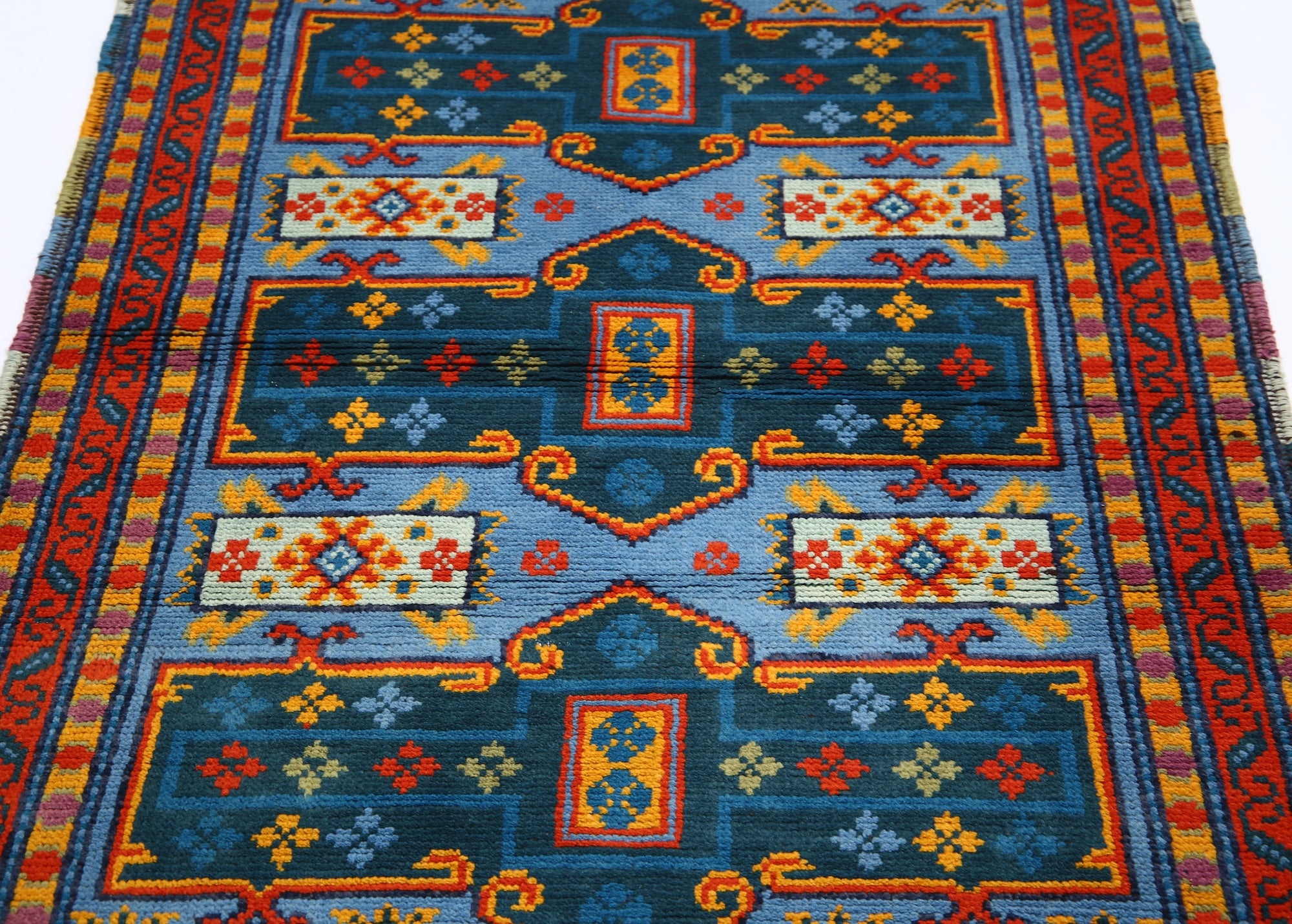 Hand-Knotted Tribal Geometric Wool Rug - 3'5" x 4'10"