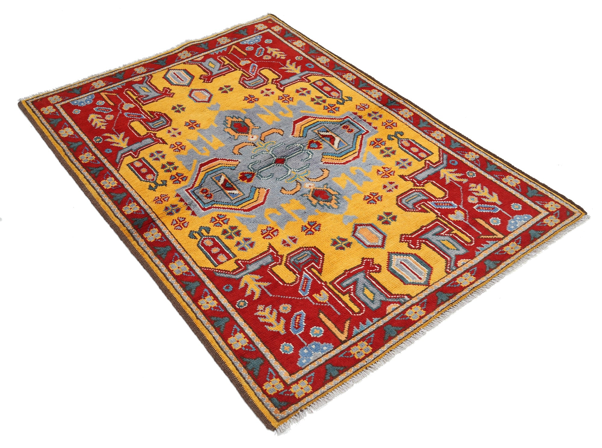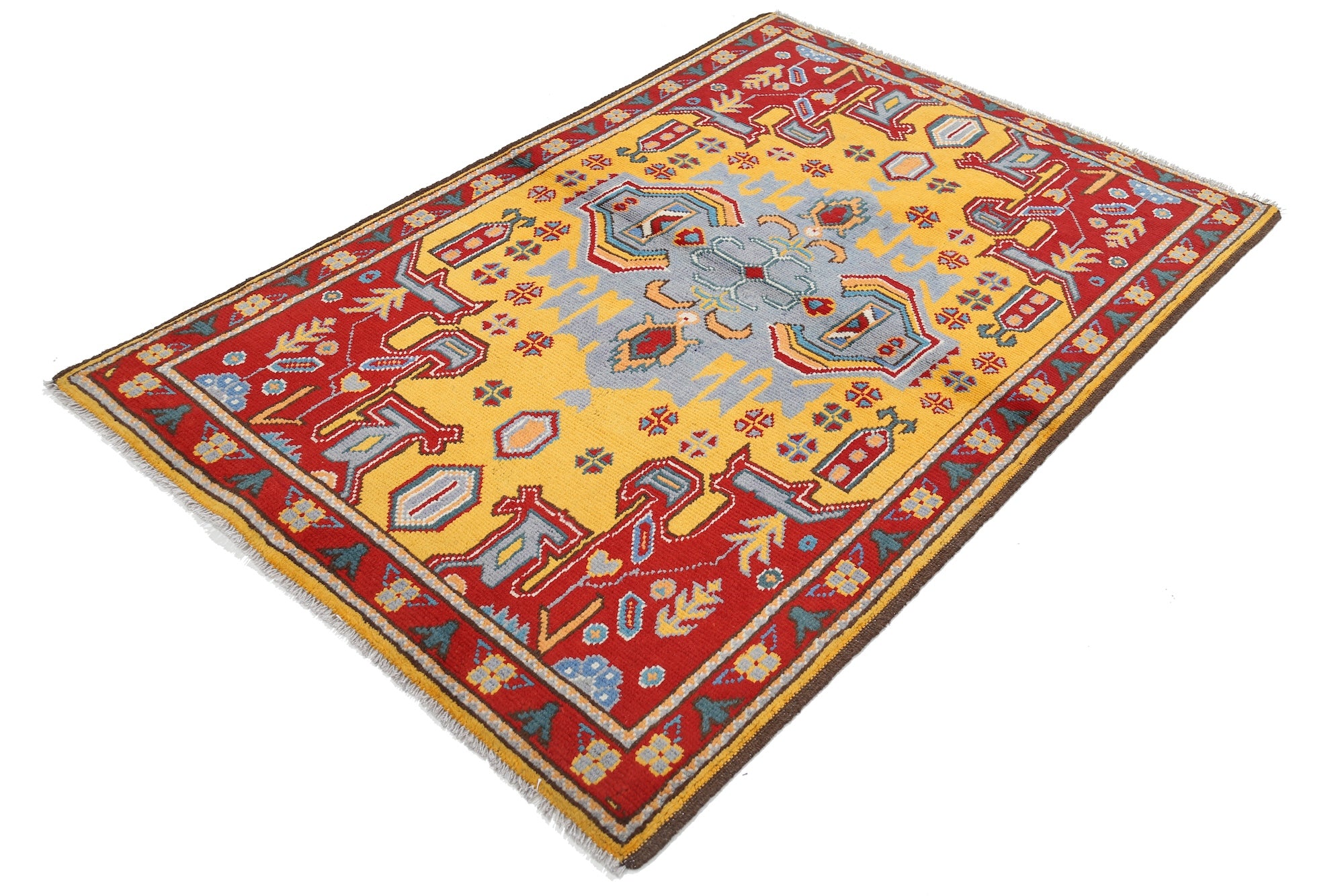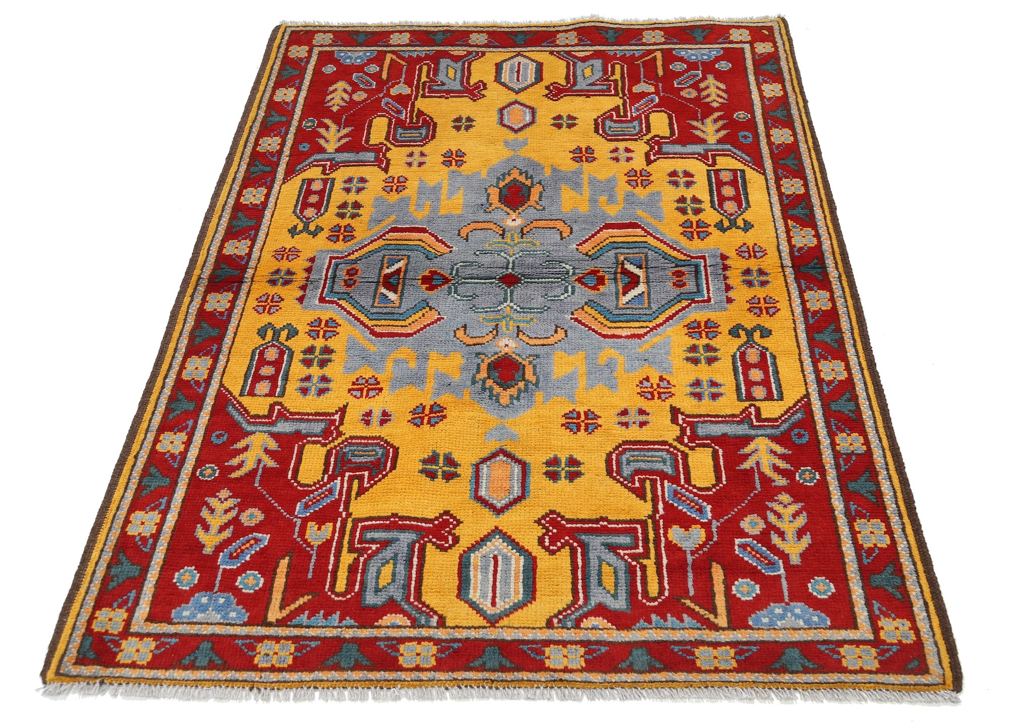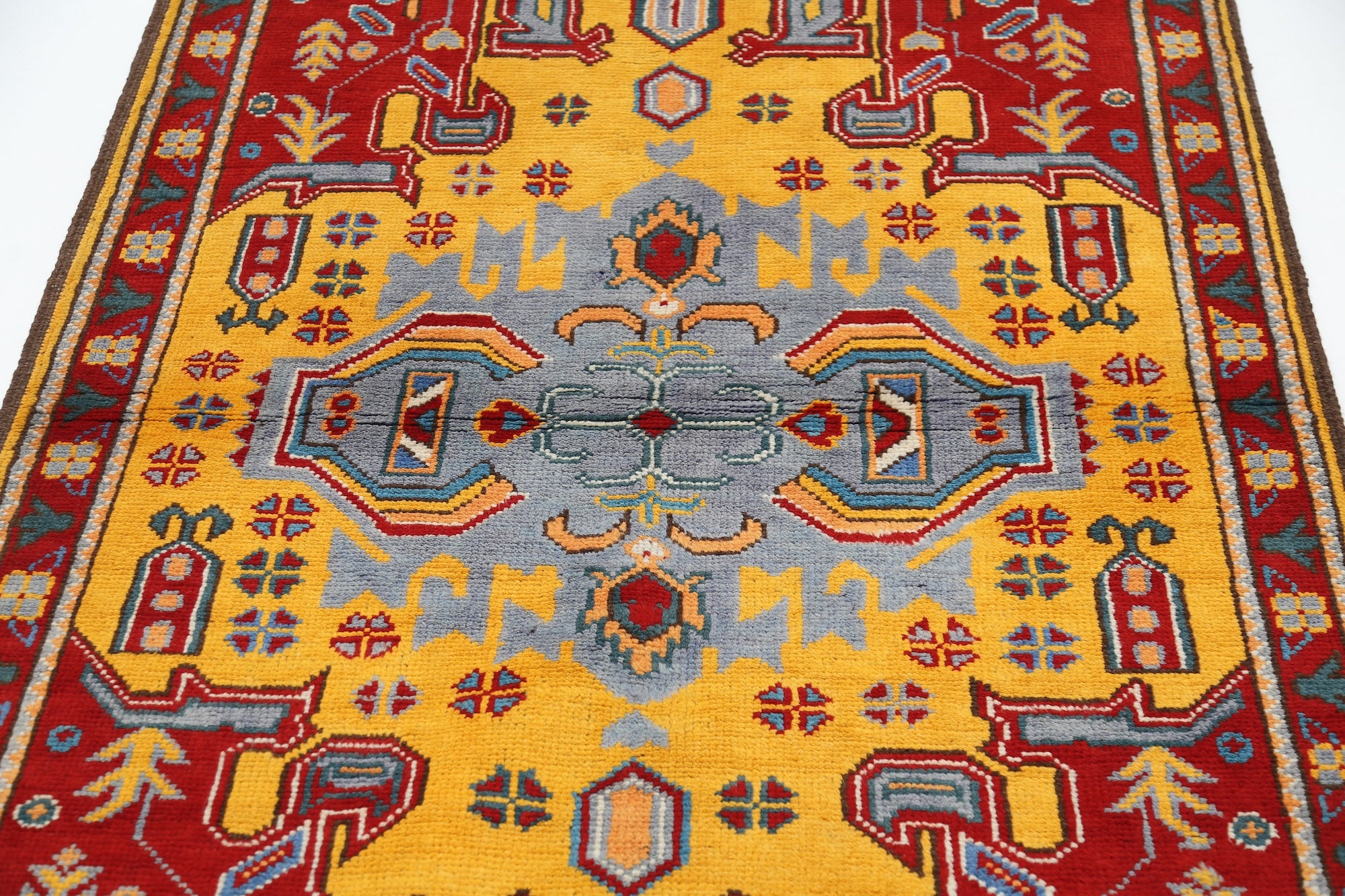 Hand-Knotted Tribal Geometric Wool Rug - 4'0" x 5'10"