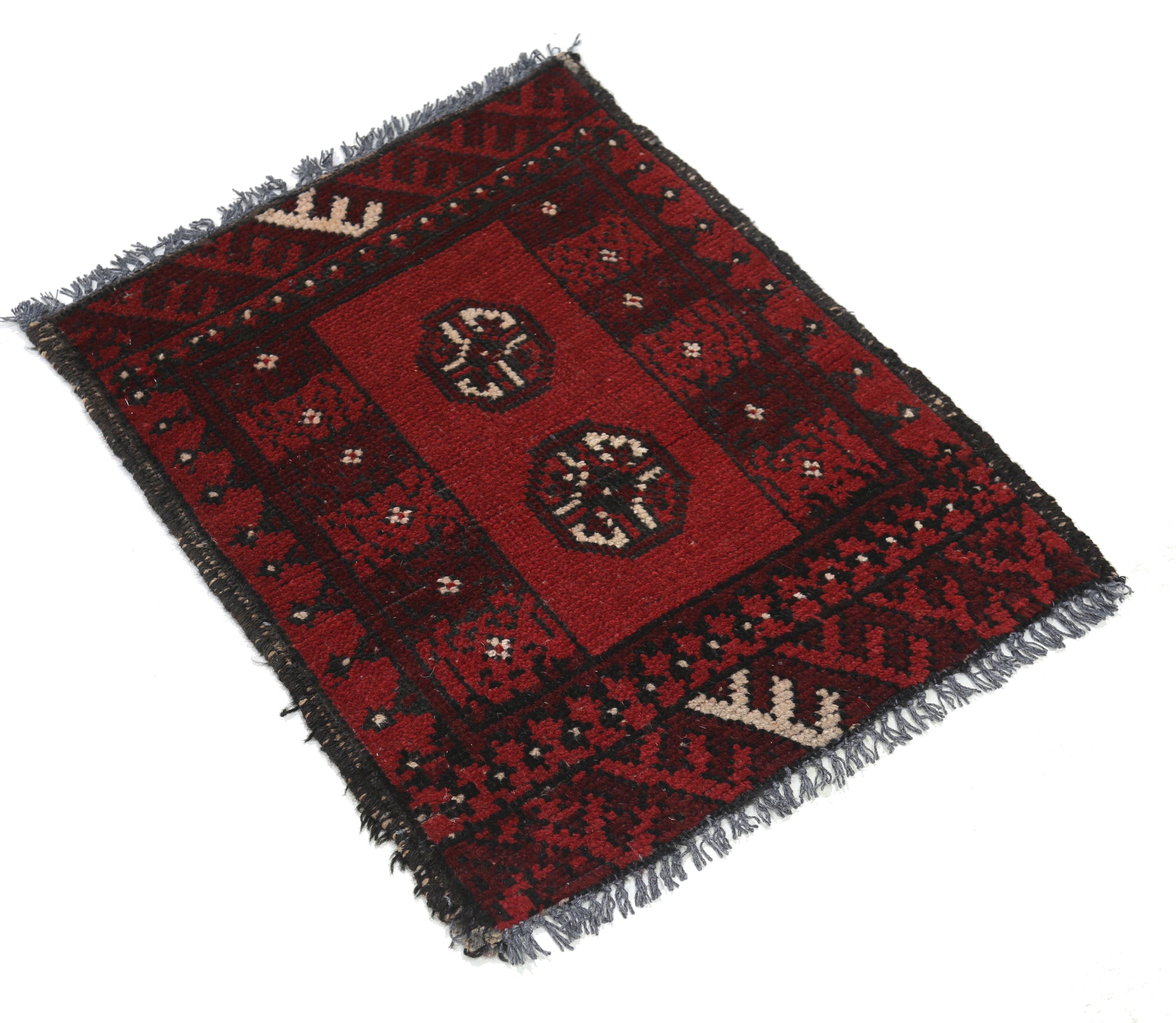 Hand-Knotted Afghan Tribal Geometric Wool Rug - 1'10" x 2'4"