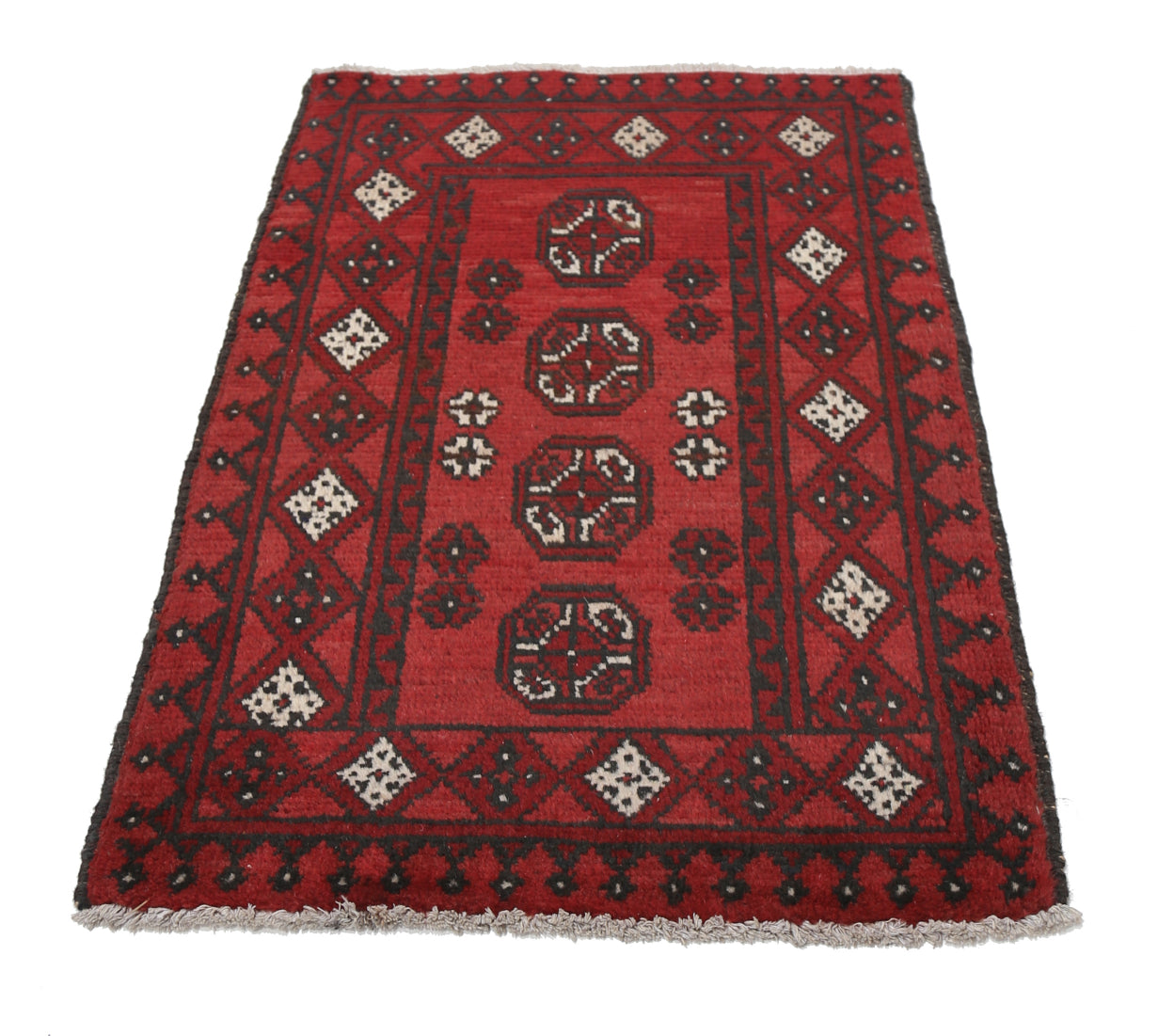 Hand-Knotted Afghan Tribal Geometric Wool Rug - 1'10" x 3'1"