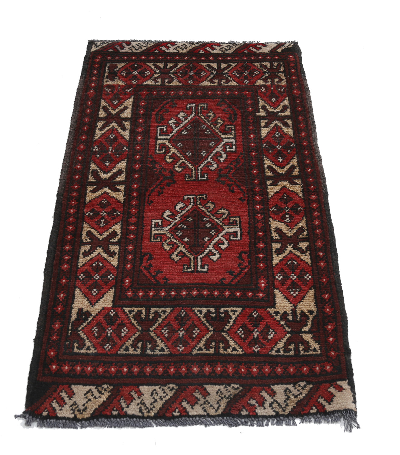Hand-Knotted Afghan Tribal Geometric Wool Rug - 1'10" x 3'5"