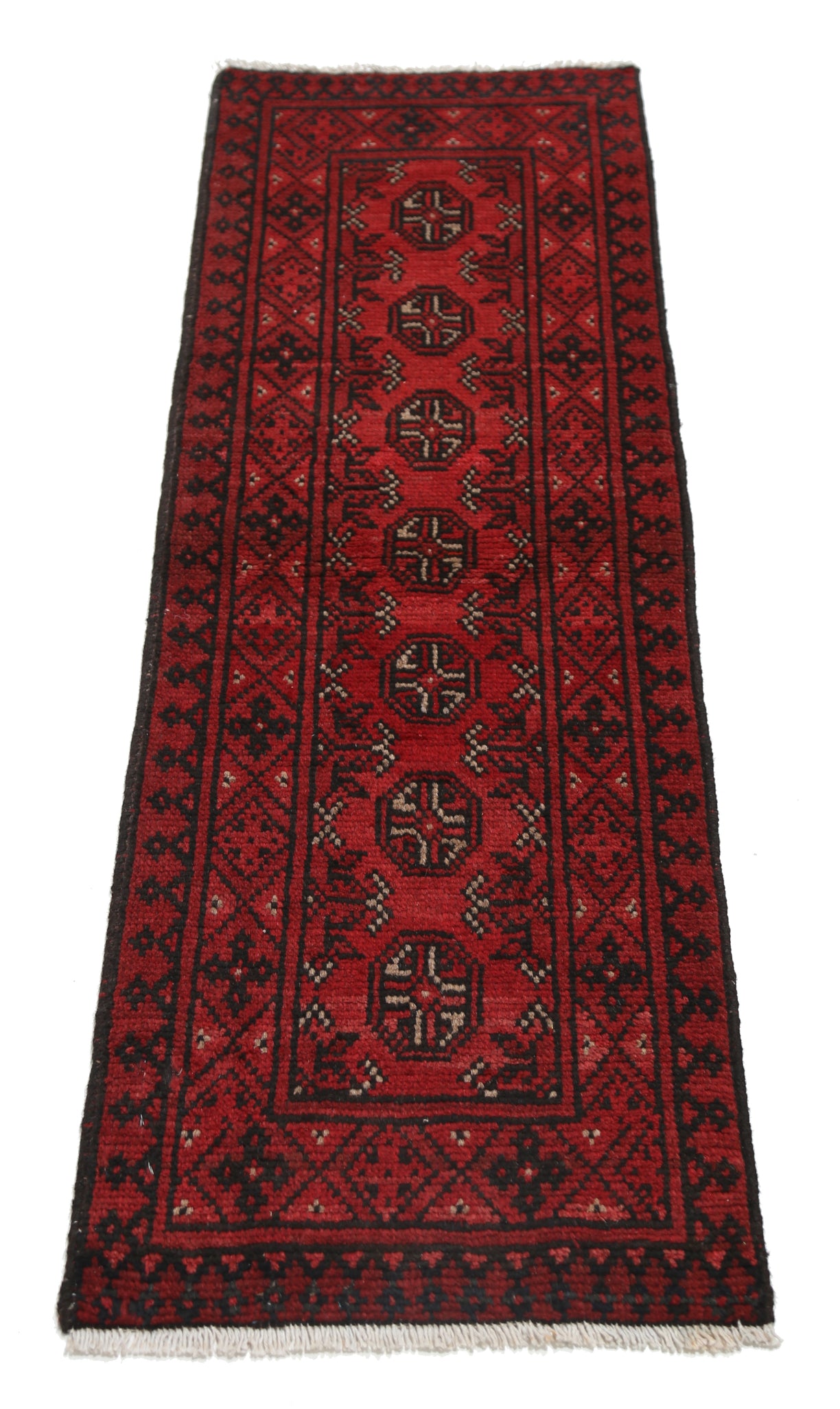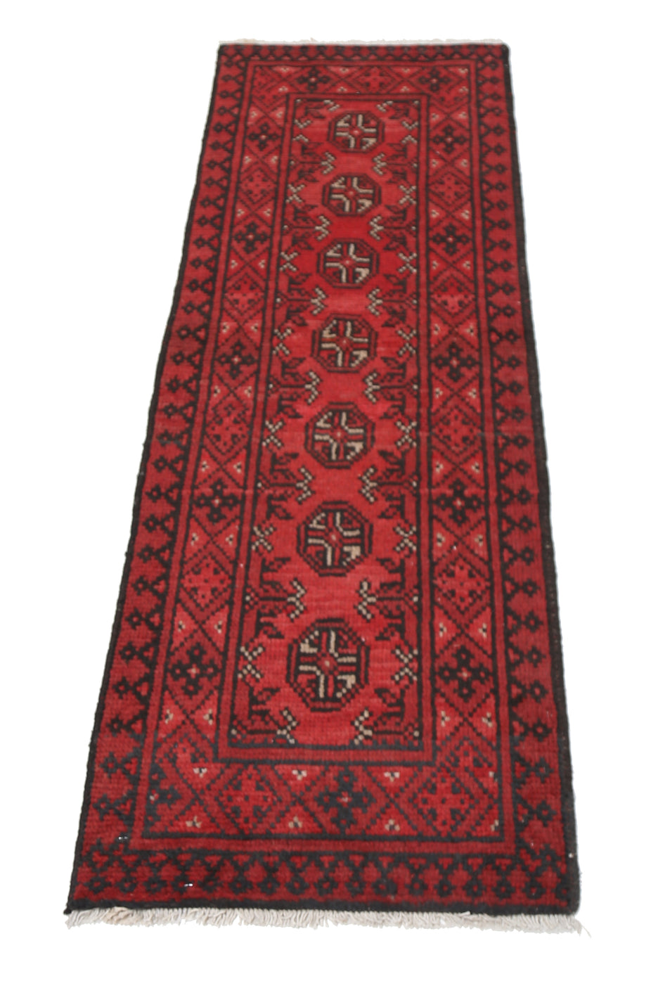 Hand-Knotted Afghan Tribal Geometric Wool Rug - 1'10" x 4'1"