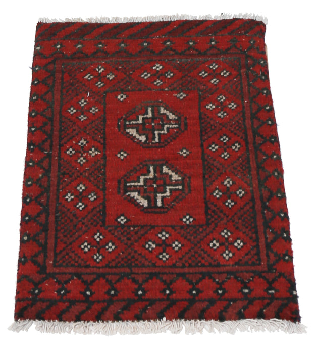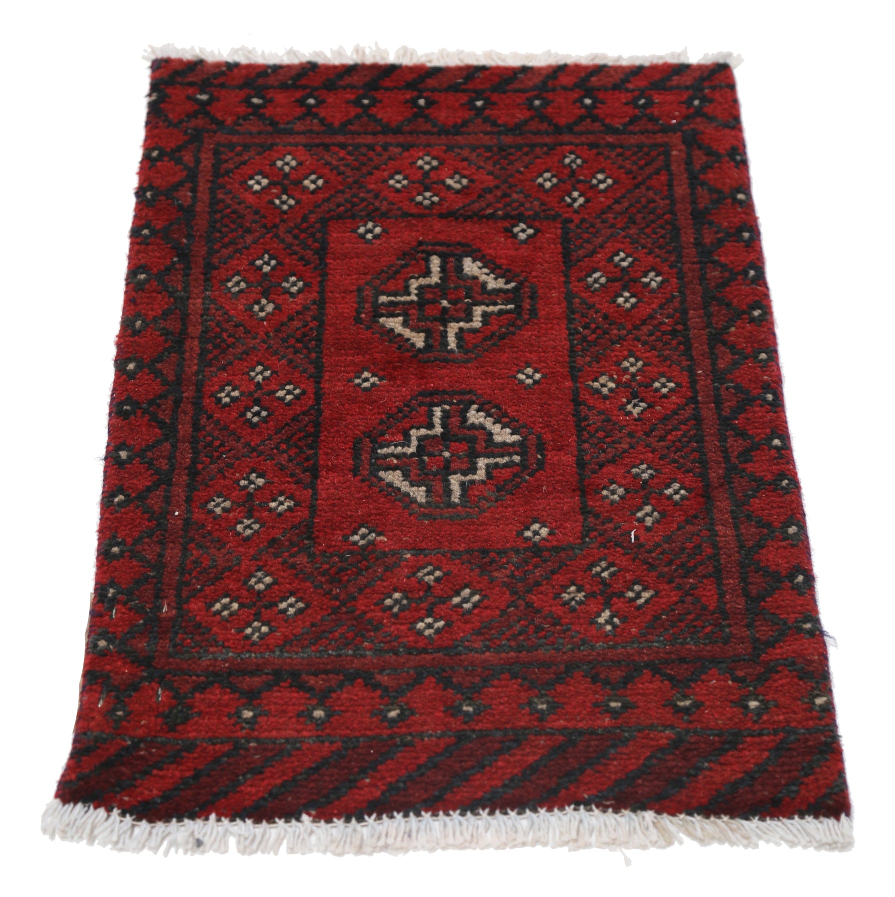 Hand-Knotted Afghan Tribal Geometric Wool Rug - 1'4" x 2'1"