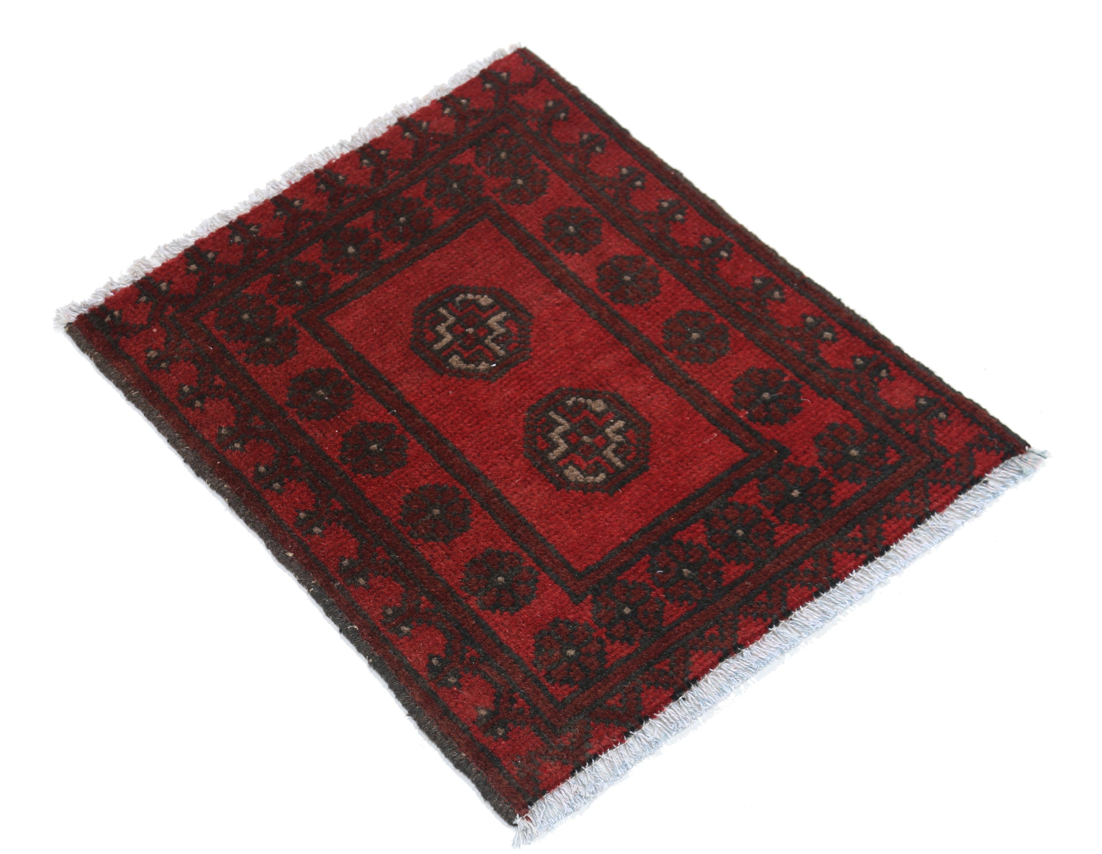 Hand-Knotted Afghan Tribal Geometric Wool Rug - 1'6" x 1'9"