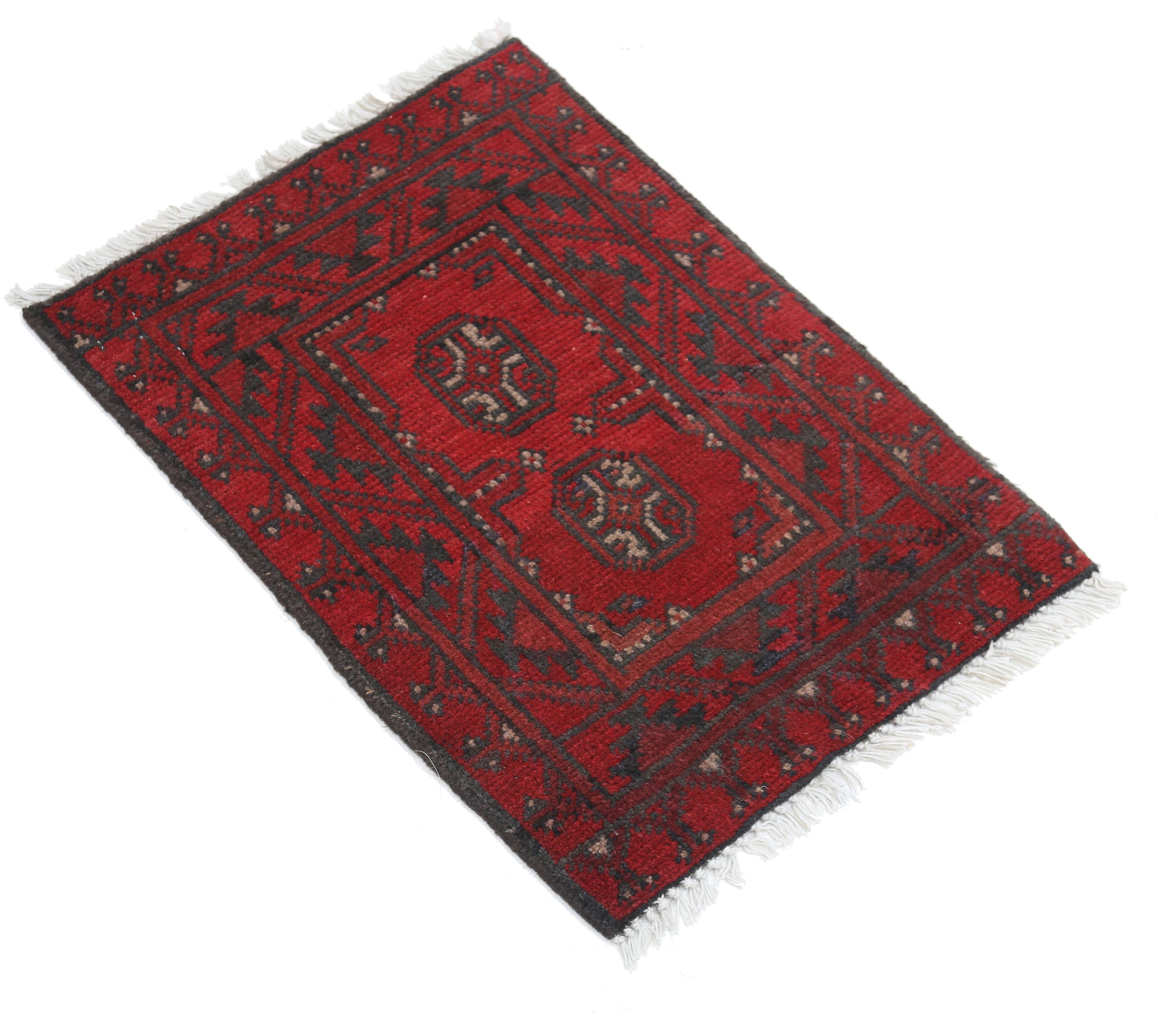 Hand-Knotted Afghan Tribal Geometric Wool Rug - 1'6" x 2'2"