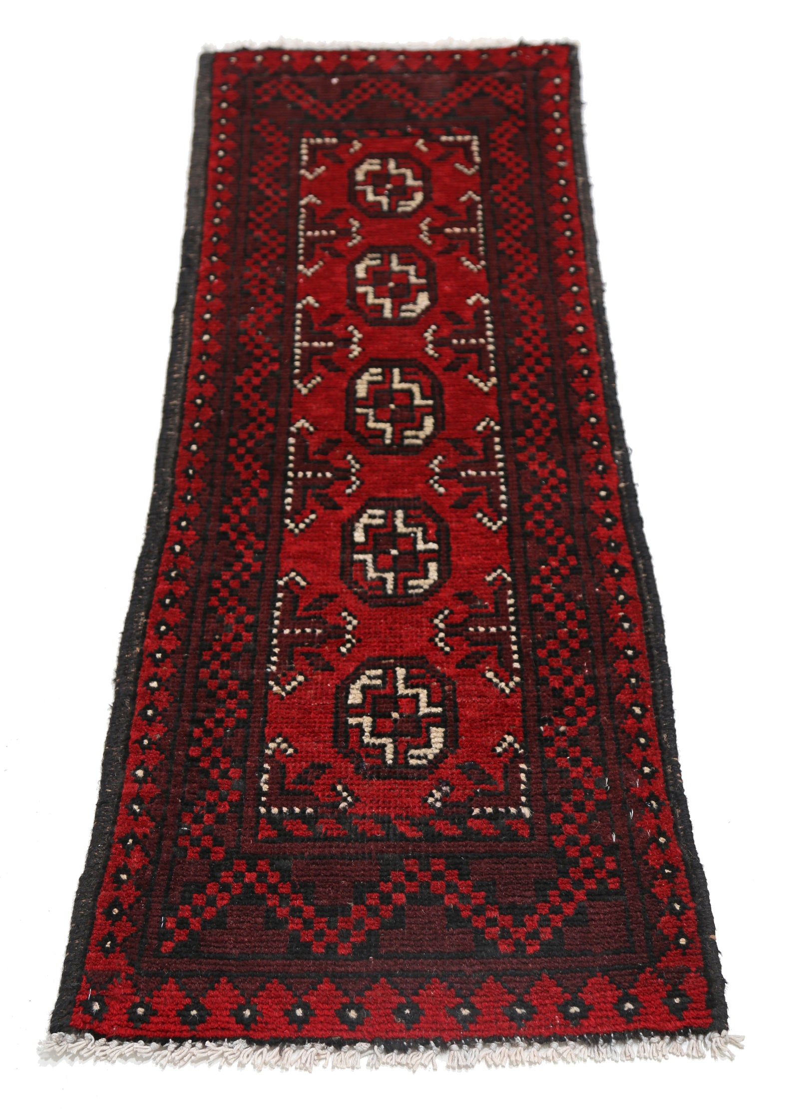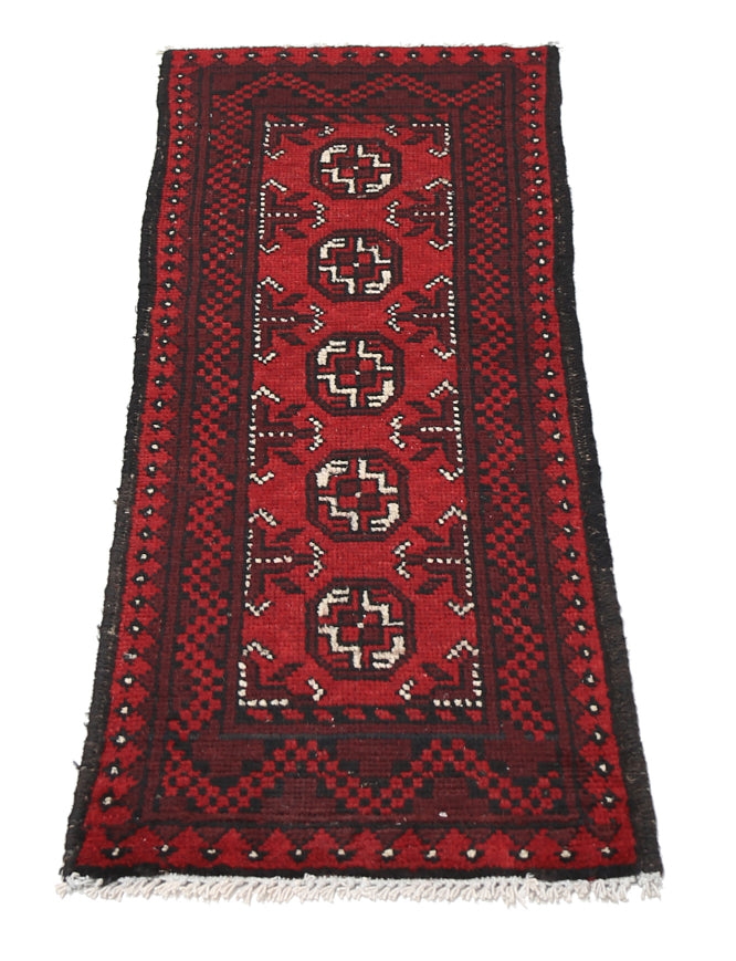 Hand-Knotted Afghan Tribal Geometric Wool Rug - 1'6" x 4'5"